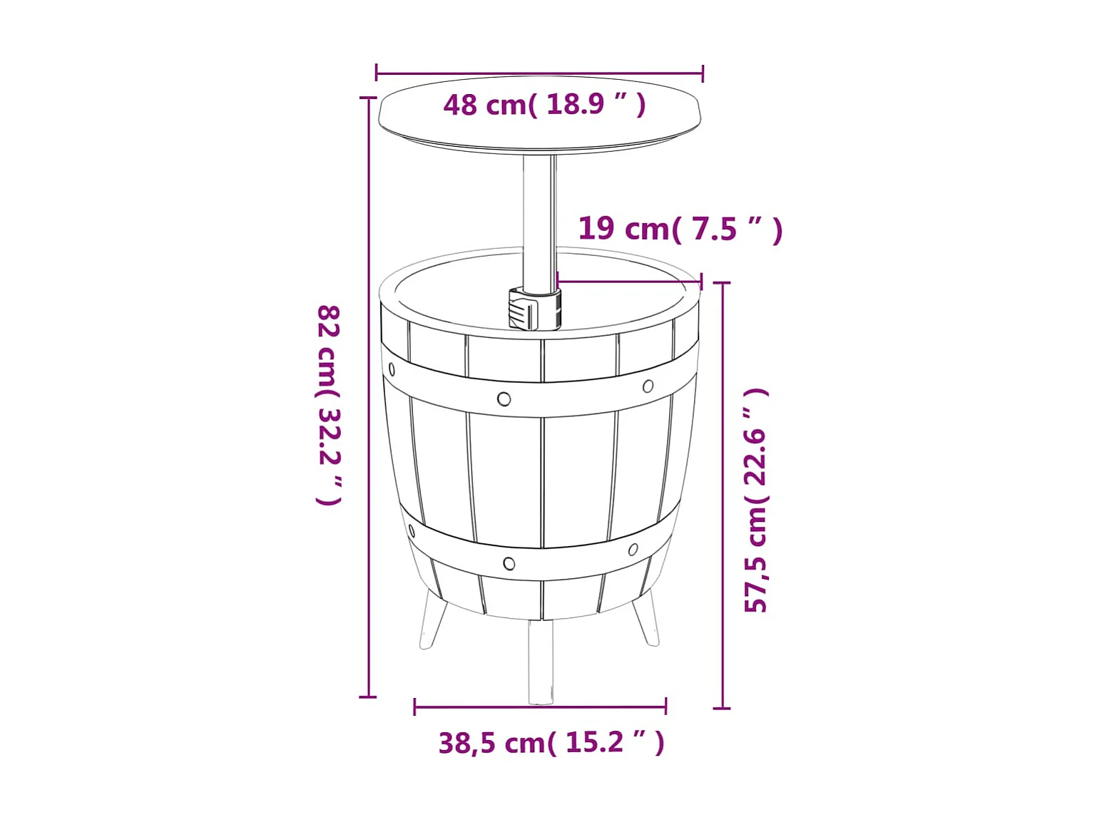 Table à glacière 3 en 1 marron clair polypropylène