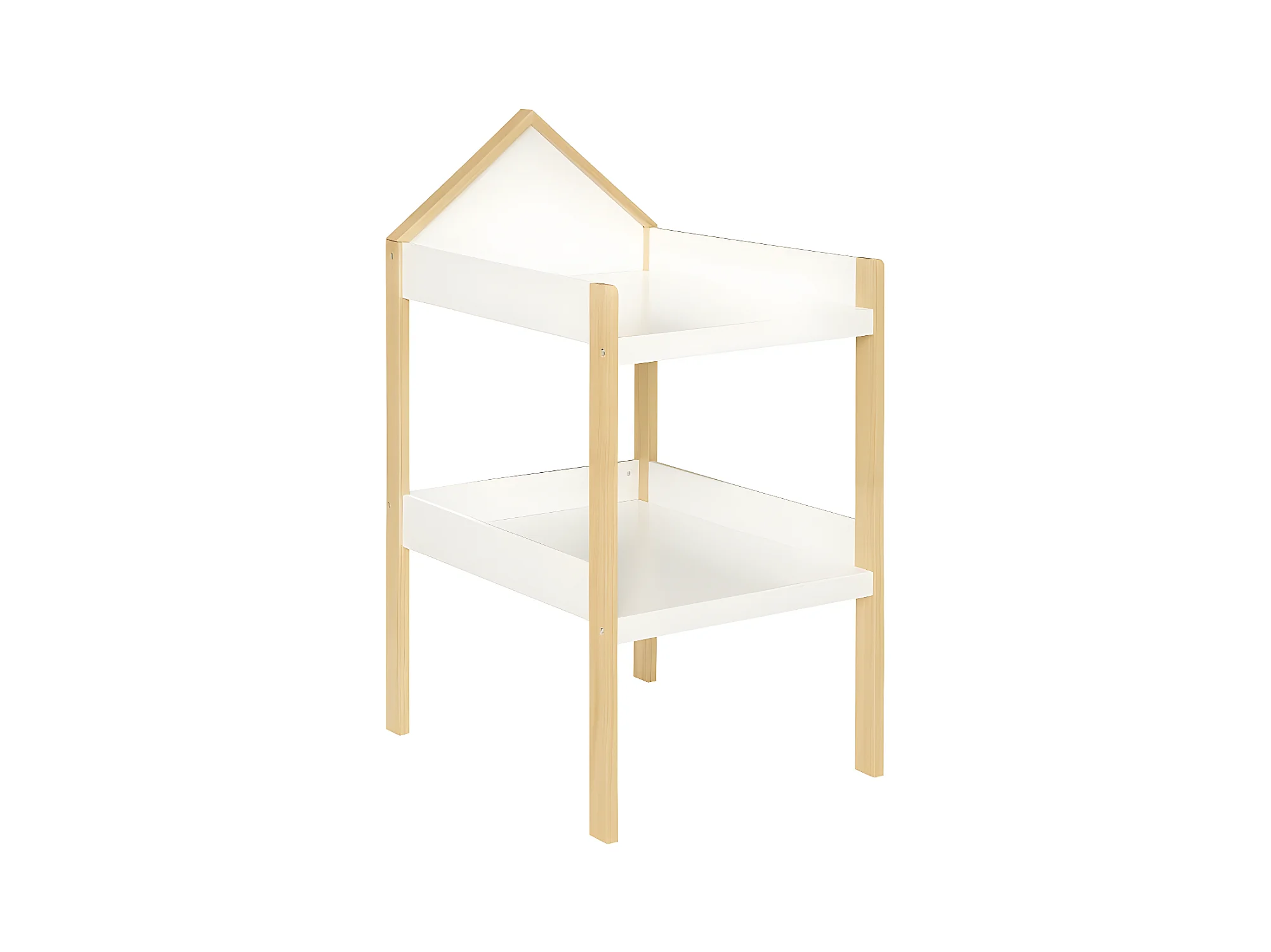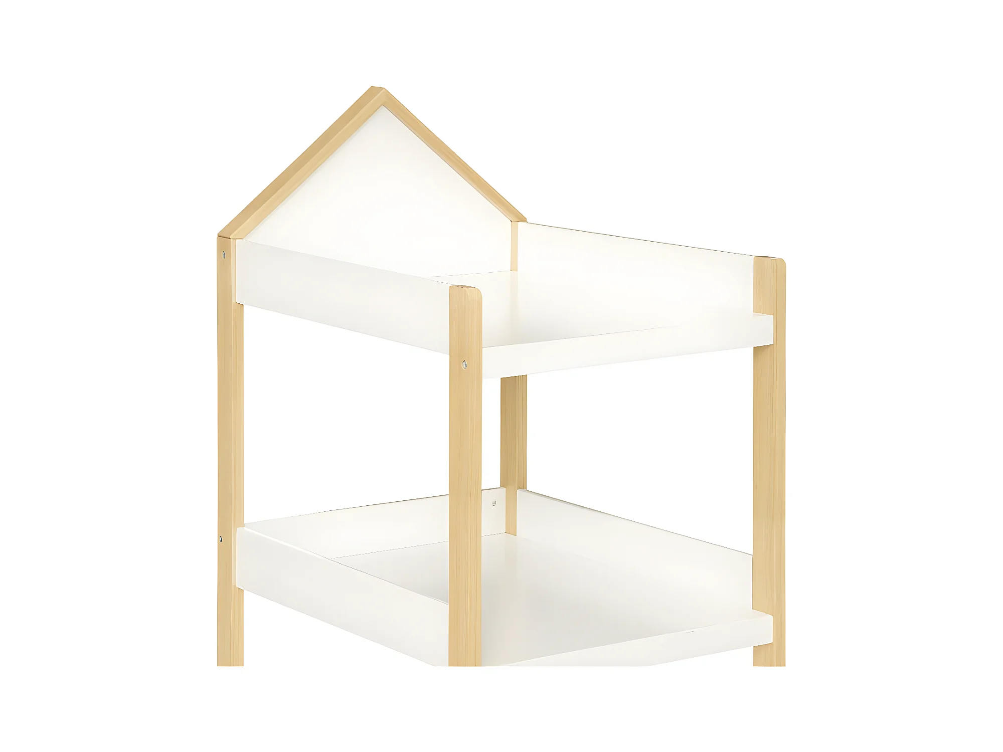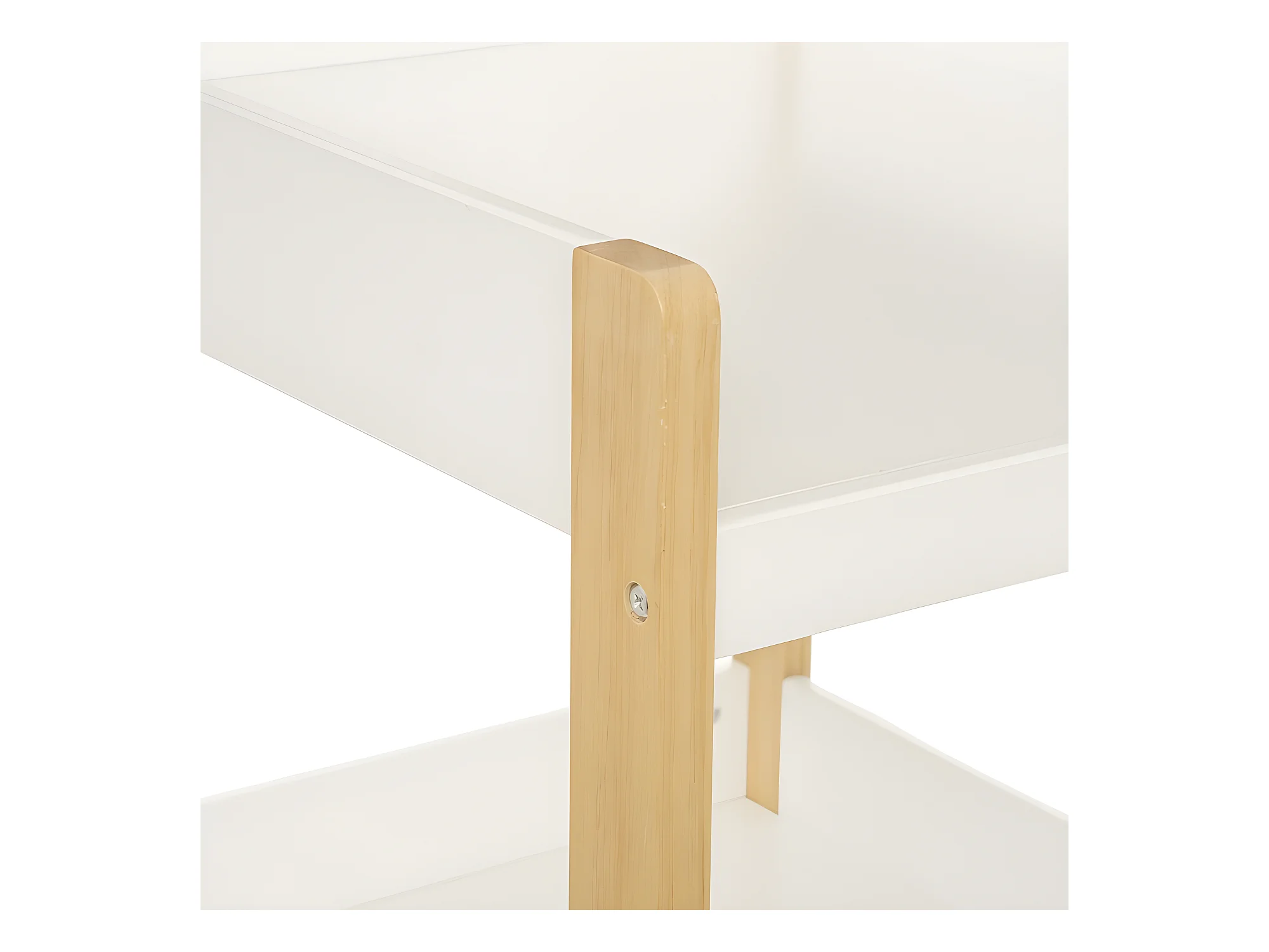 Table à langer en bois massif blanc avec 2 étagères de rangement LUDO