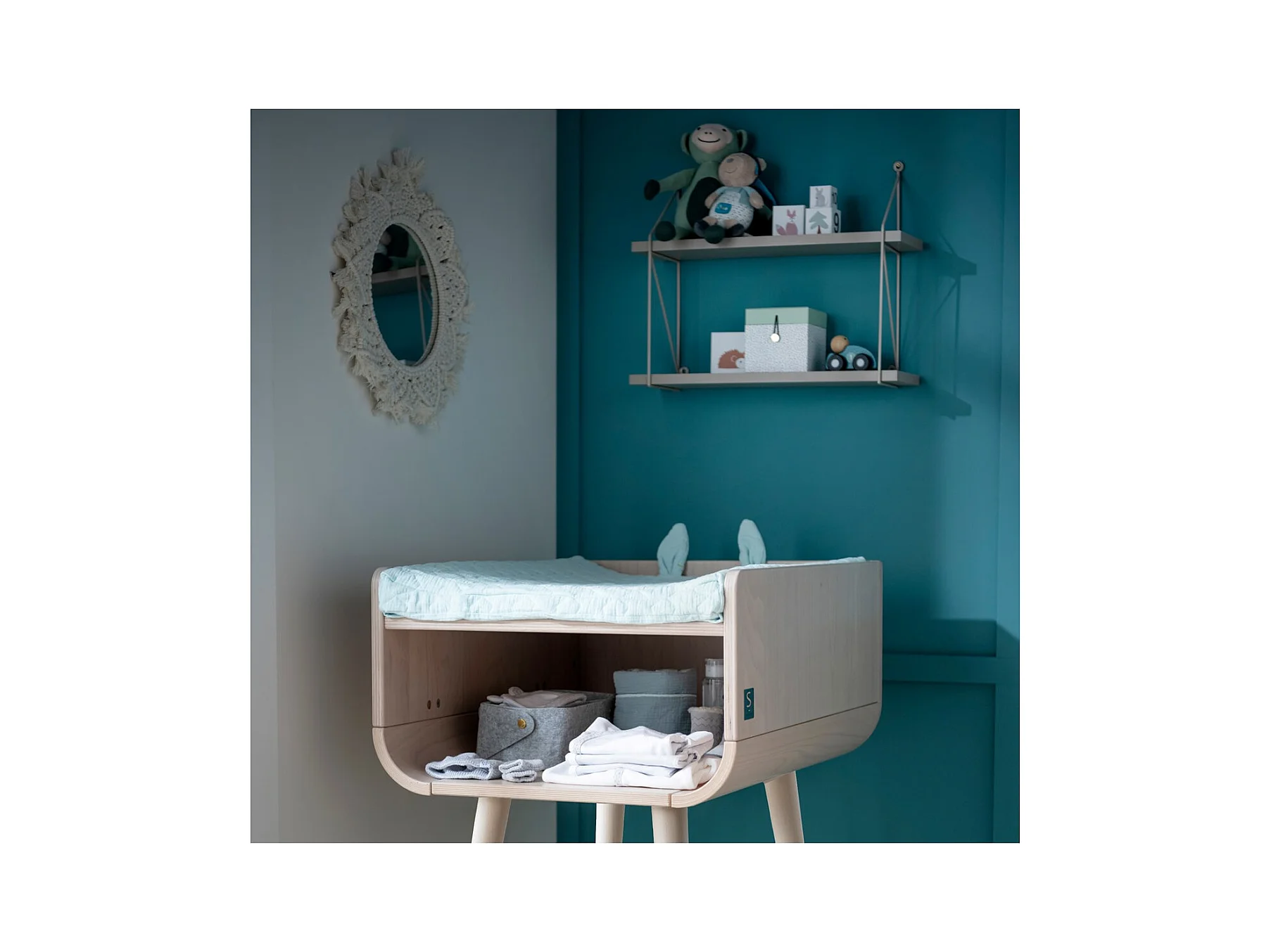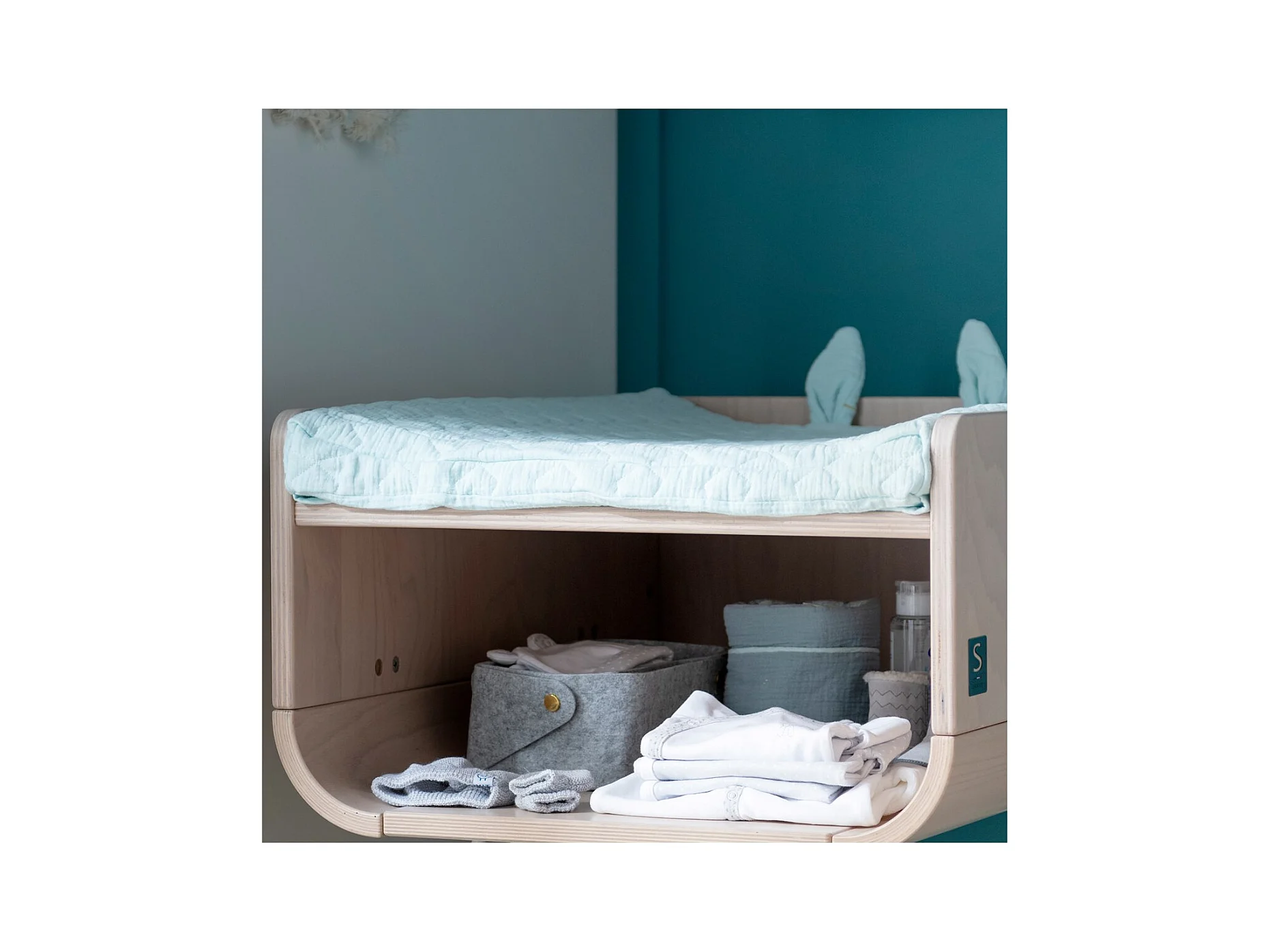 Table à langer pieds bois 95x60x78cm en bois beige BAMBIN - Sauthon Original