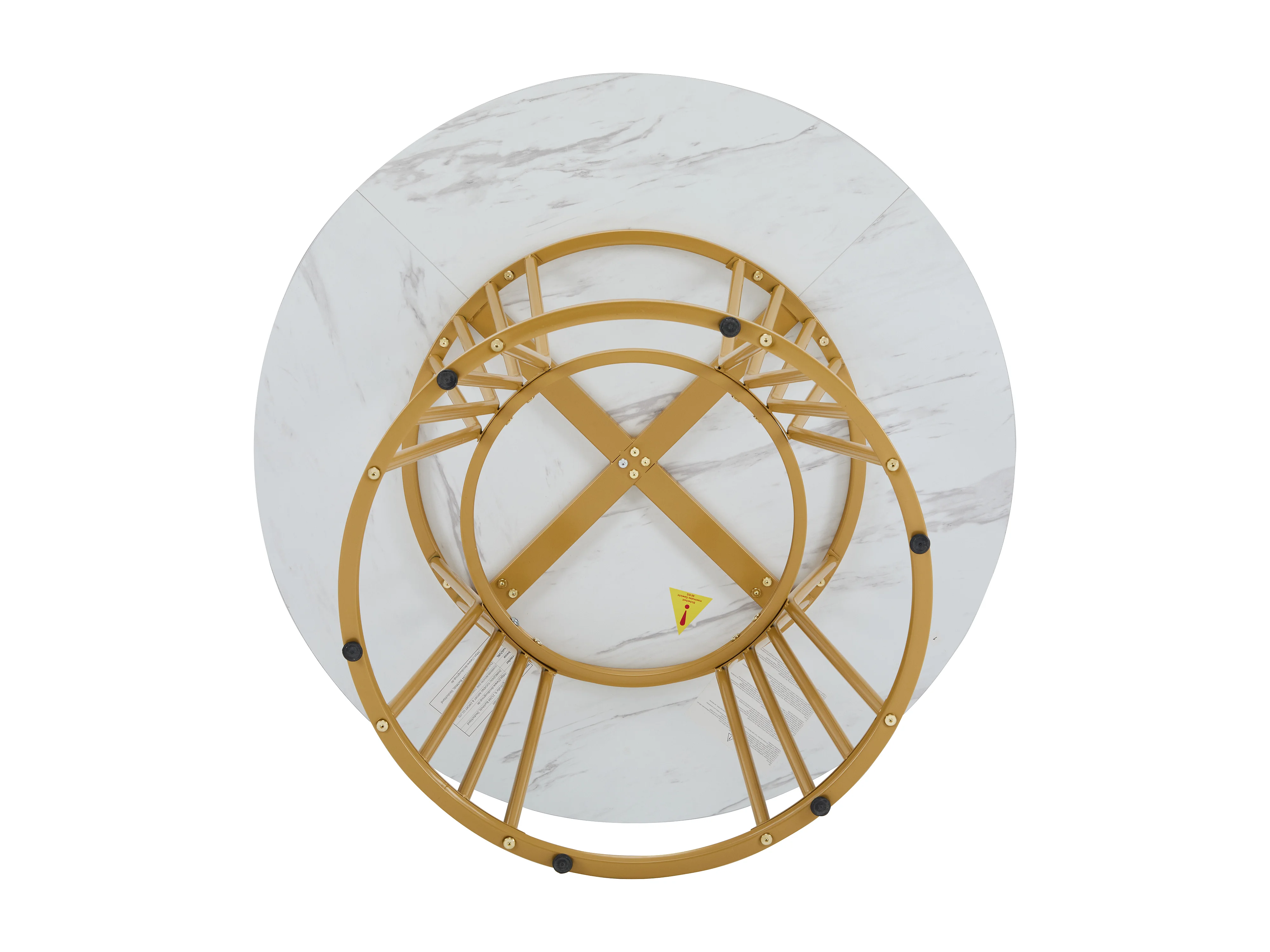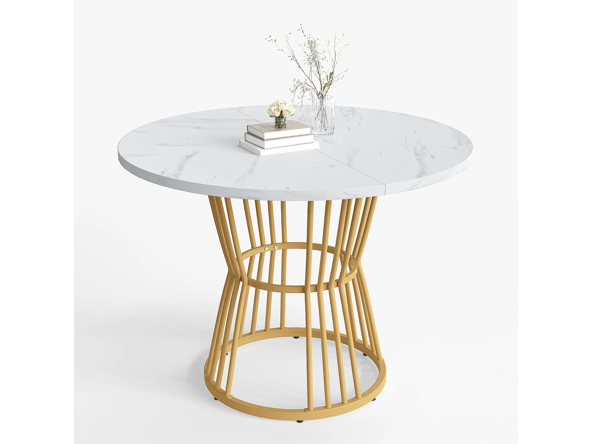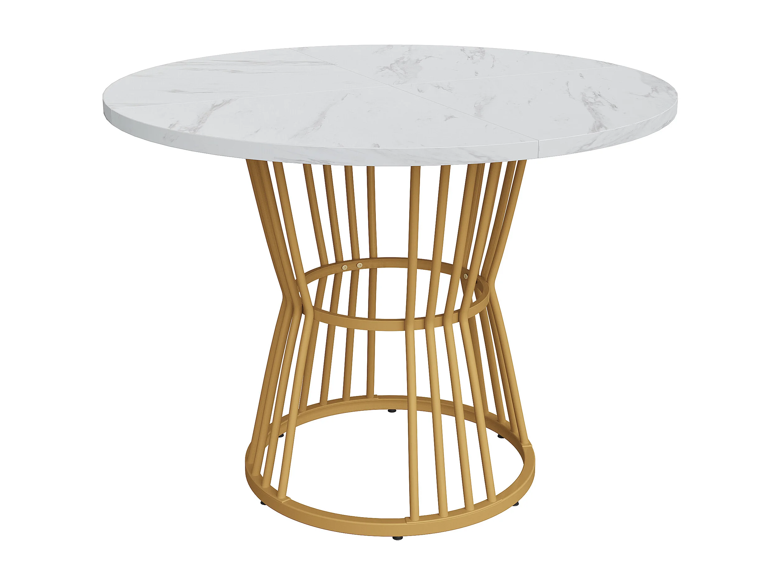 Table à manger 1 pièce, Piétement métal, Plateau effet marbre, Cuisine/Salon, Blanc/Doré