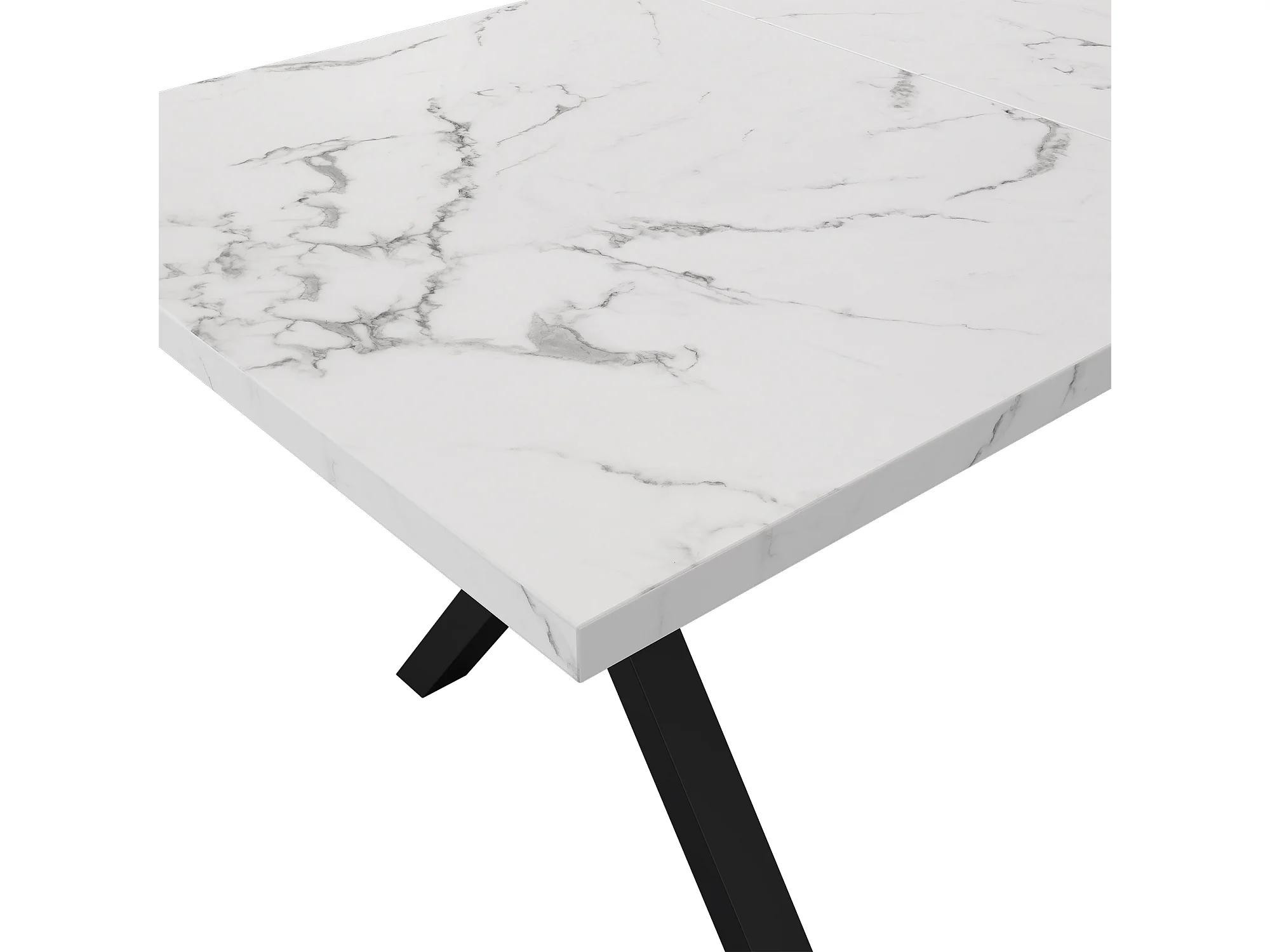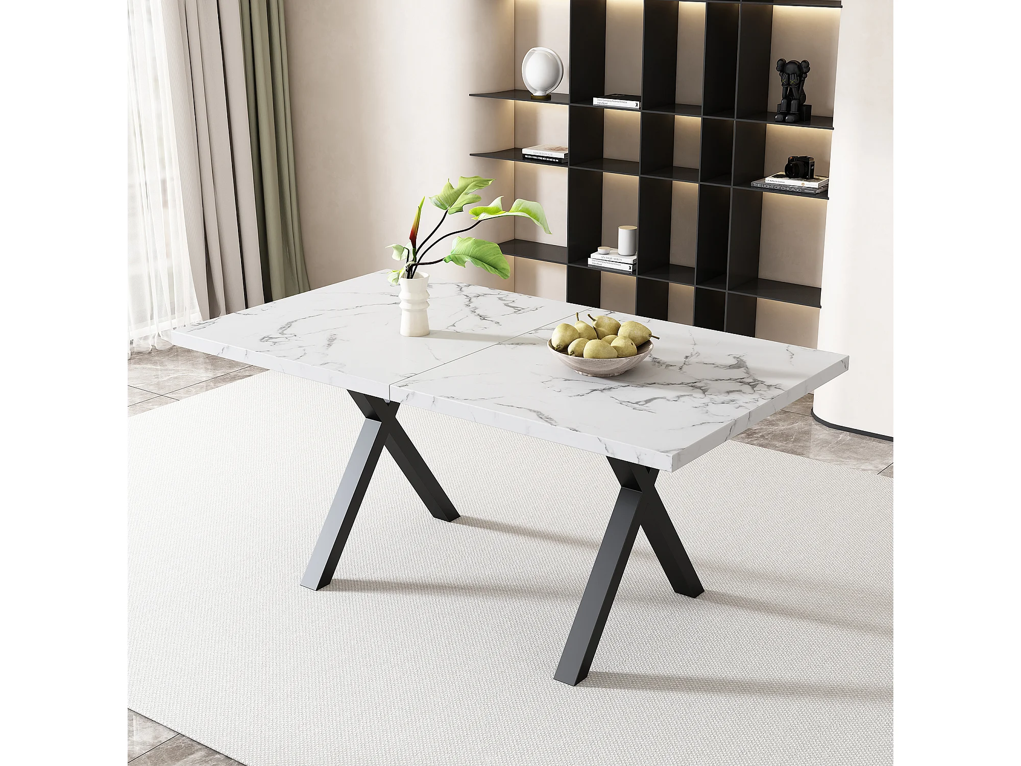 Table à manger 140x80cm avec pieds métal noir - Effet marbre blanche