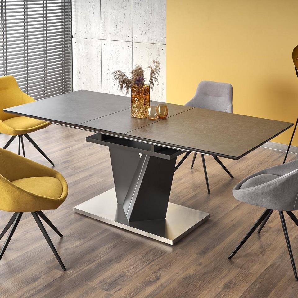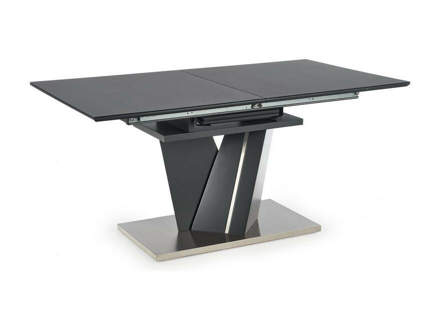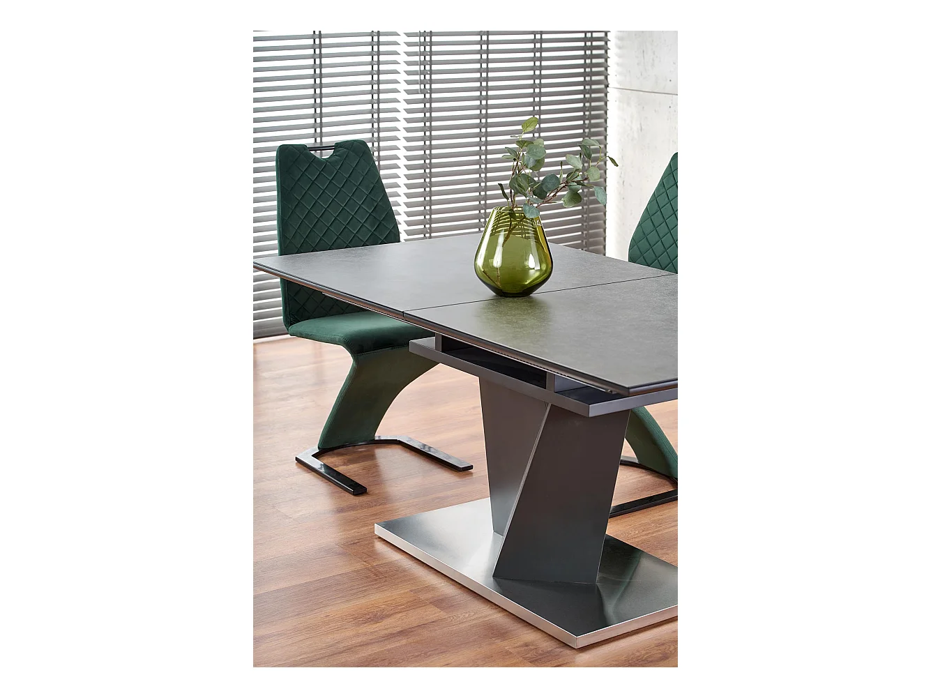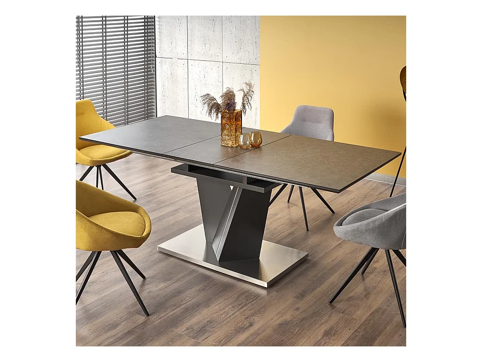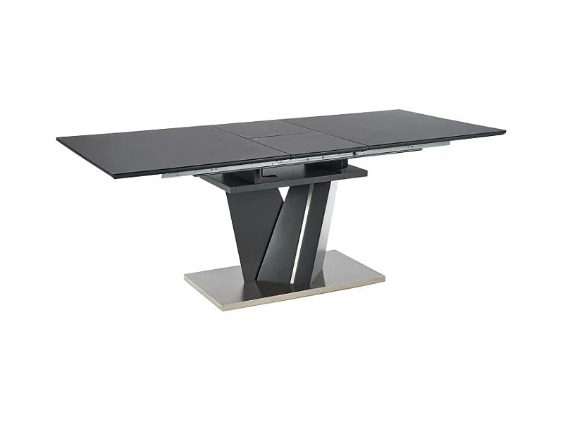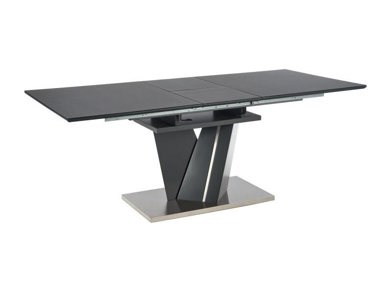 Table à manger 160-200cm avec plateau en verre et pied central en métal gris MARICA