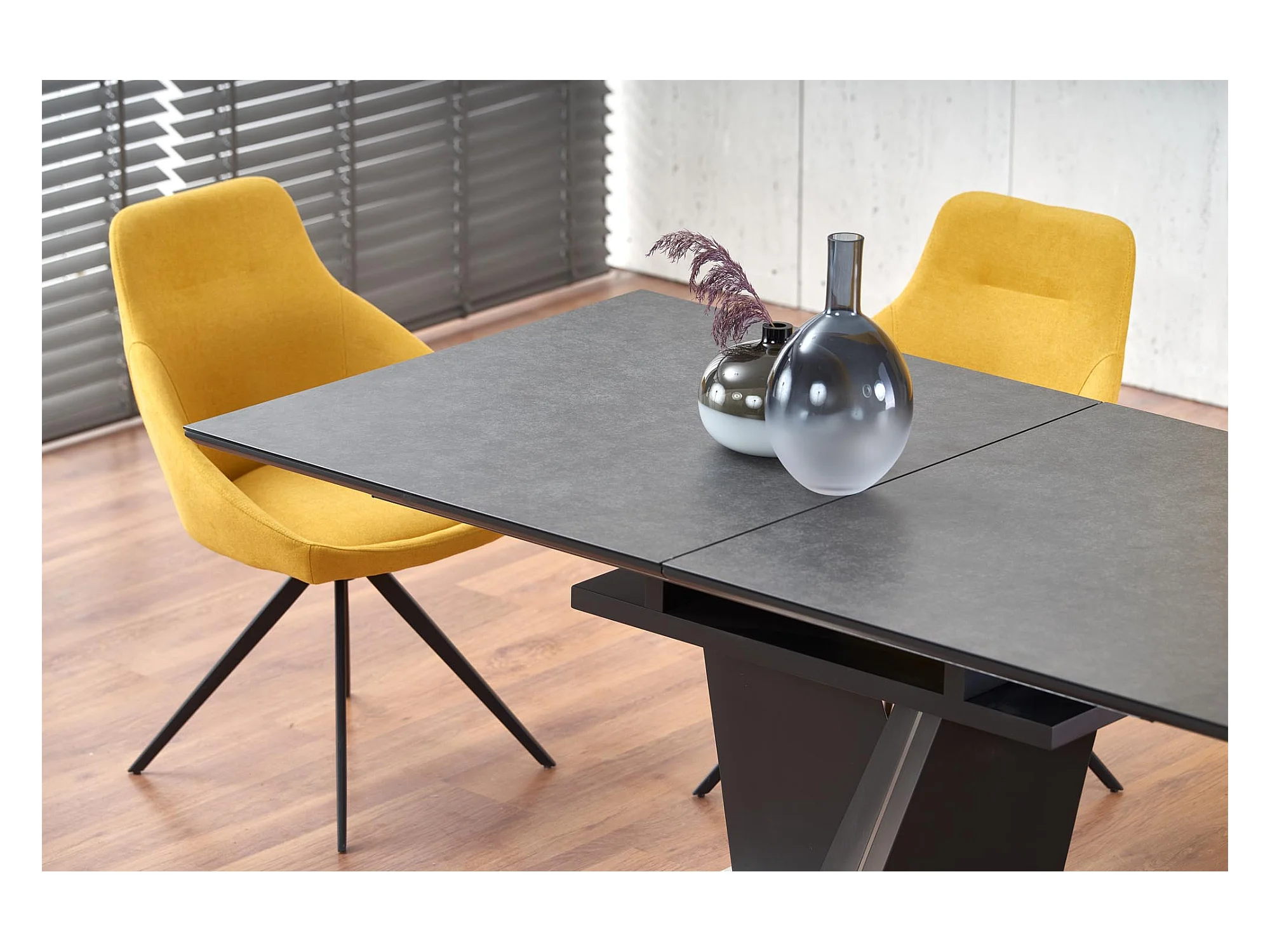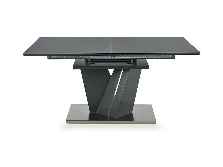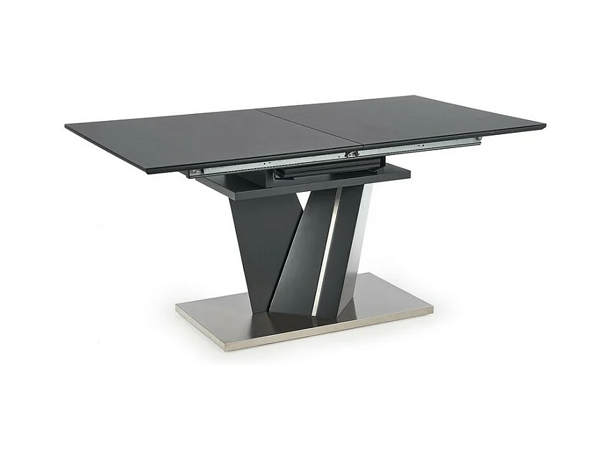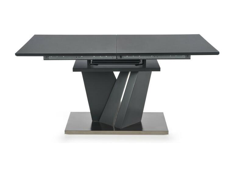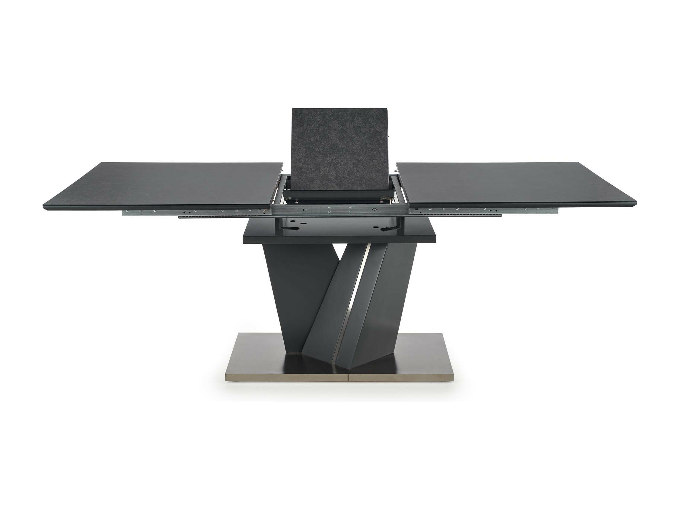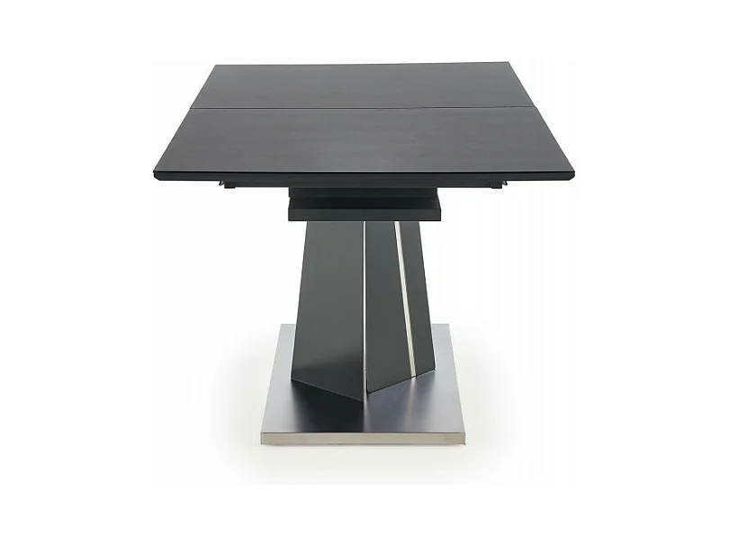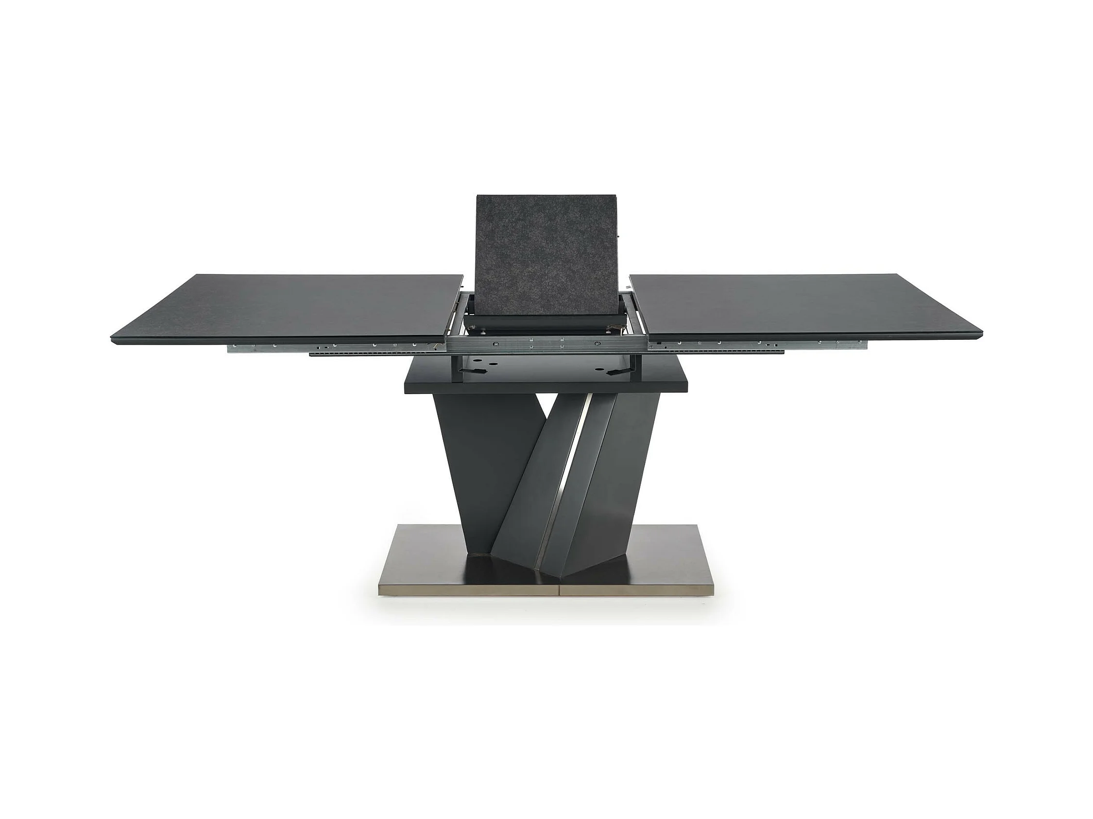 Table à manger 160-200cm avec plateau en verre et pied central en métal gris MARICA