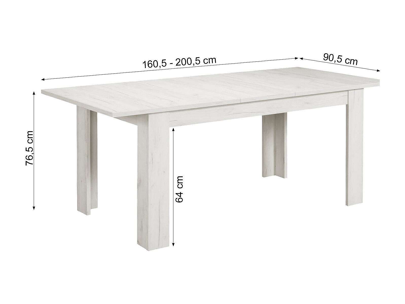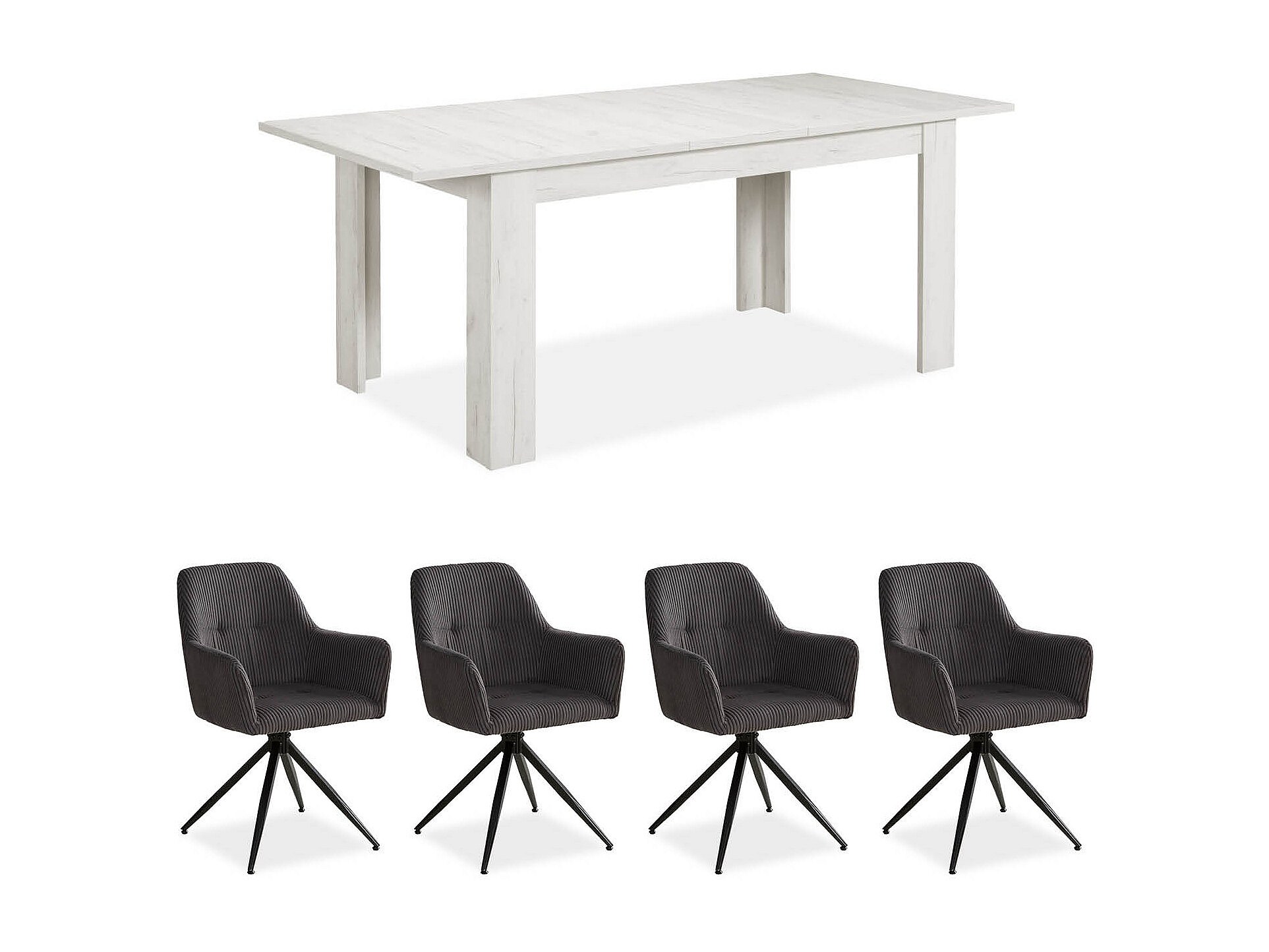 Table à manger 160x90x76 cm blanche avec 4 chaises grises