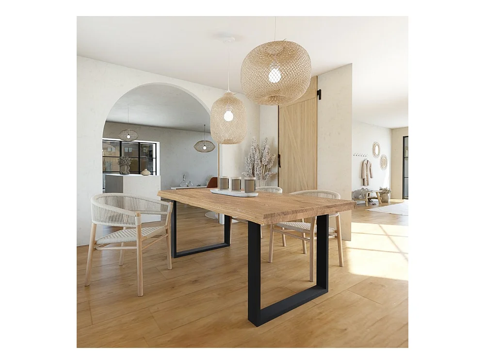 Table à manger 200x100cm chênemassif pied métal CATAU