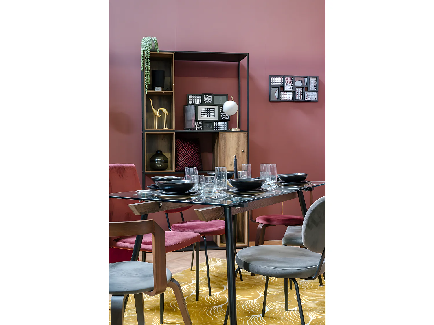 Table à Manger 6 Personnes Structure en métal et Bois avec Plateau en Verre 160x80x75CM