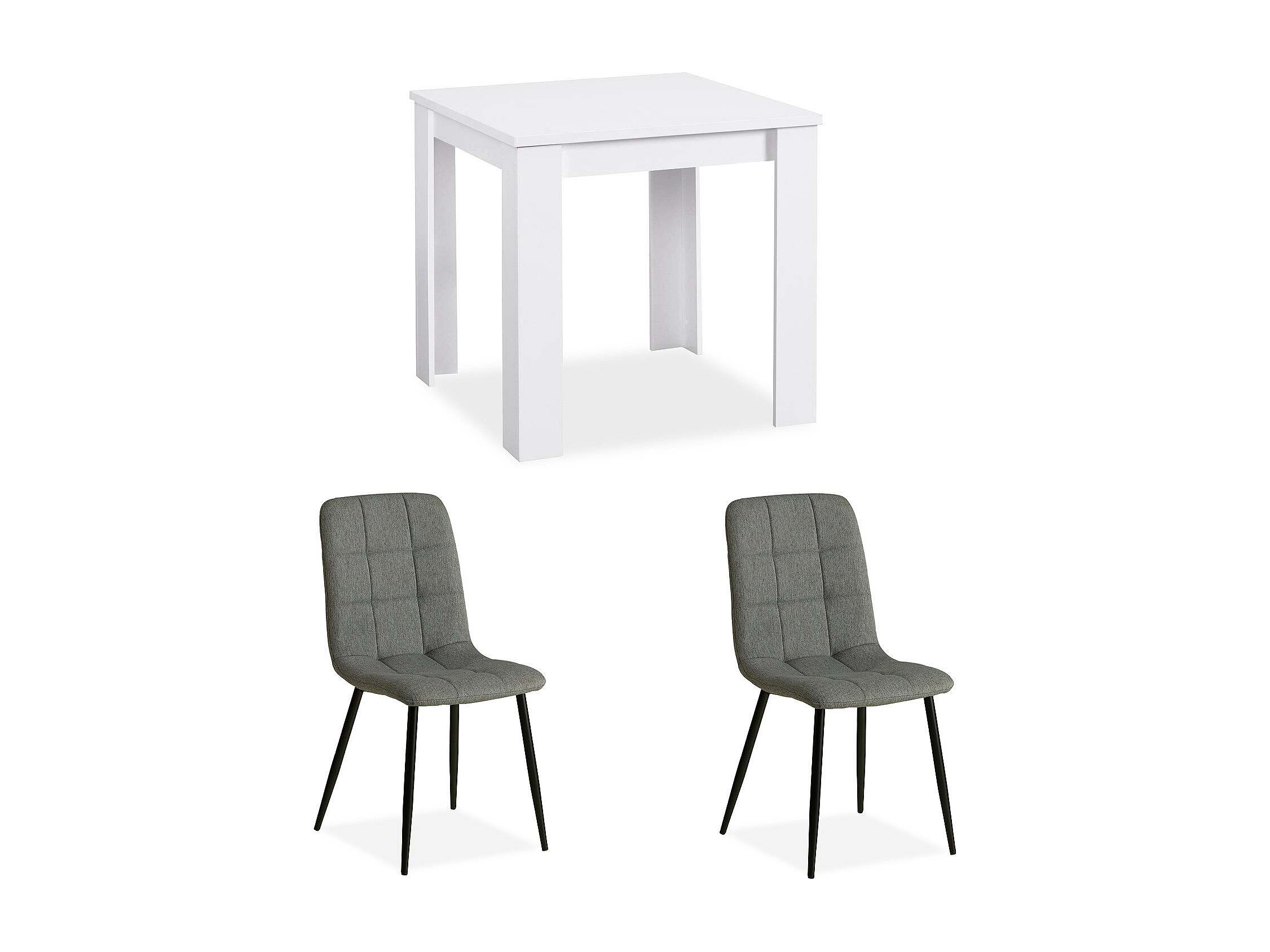 table à manger 80x80x75 cm blanche avec 2 chaises en lin gris