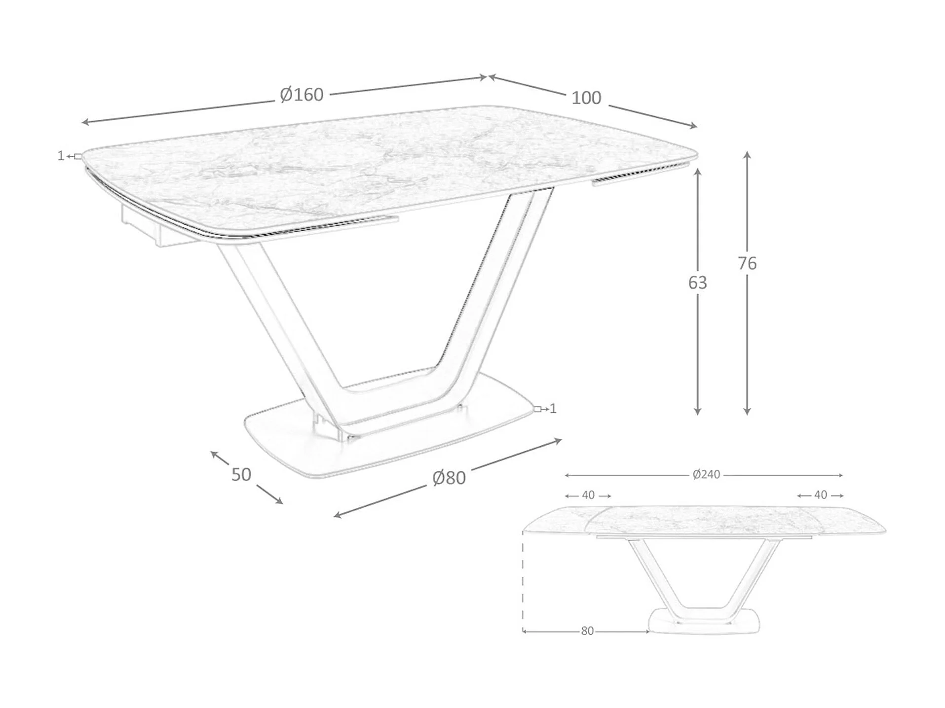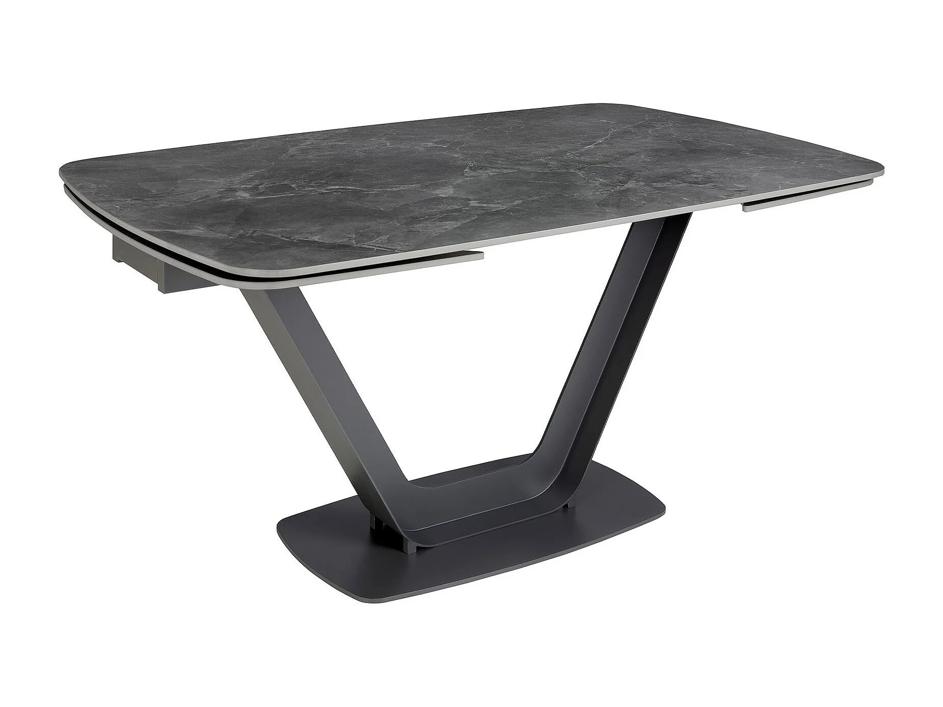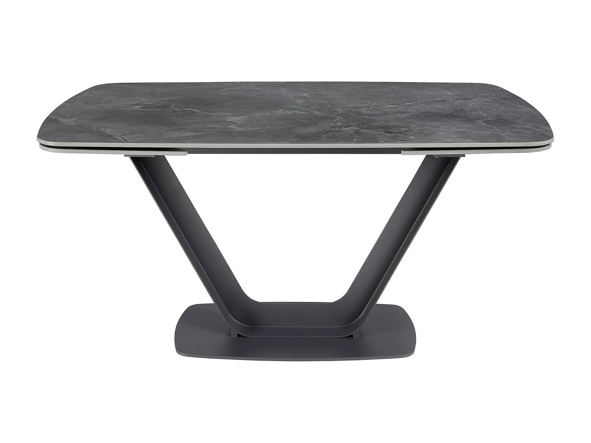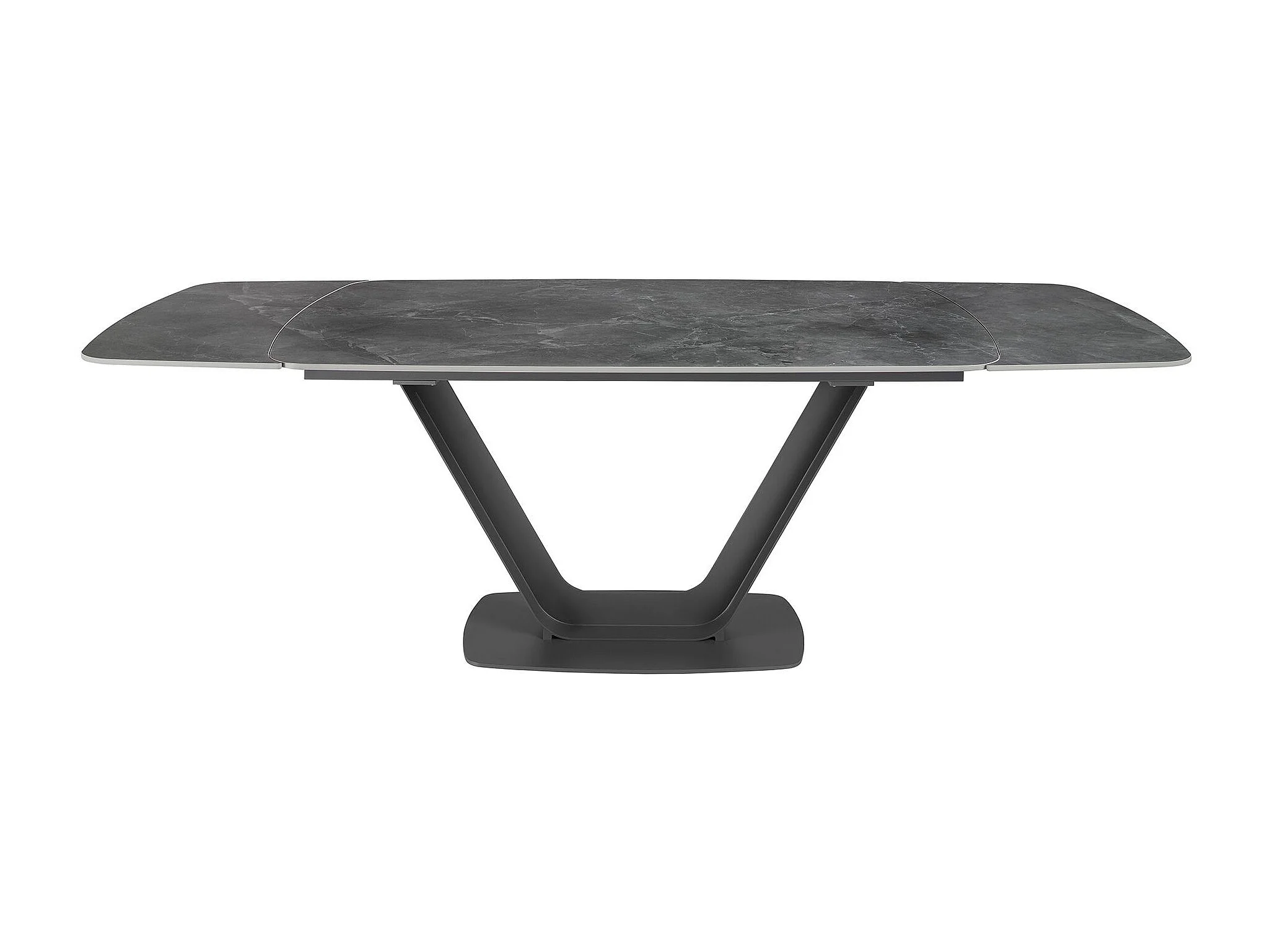 Table à manger à rallonge baril ovale marbre porcelaine et acier noir 1132 ANGEL CERDA