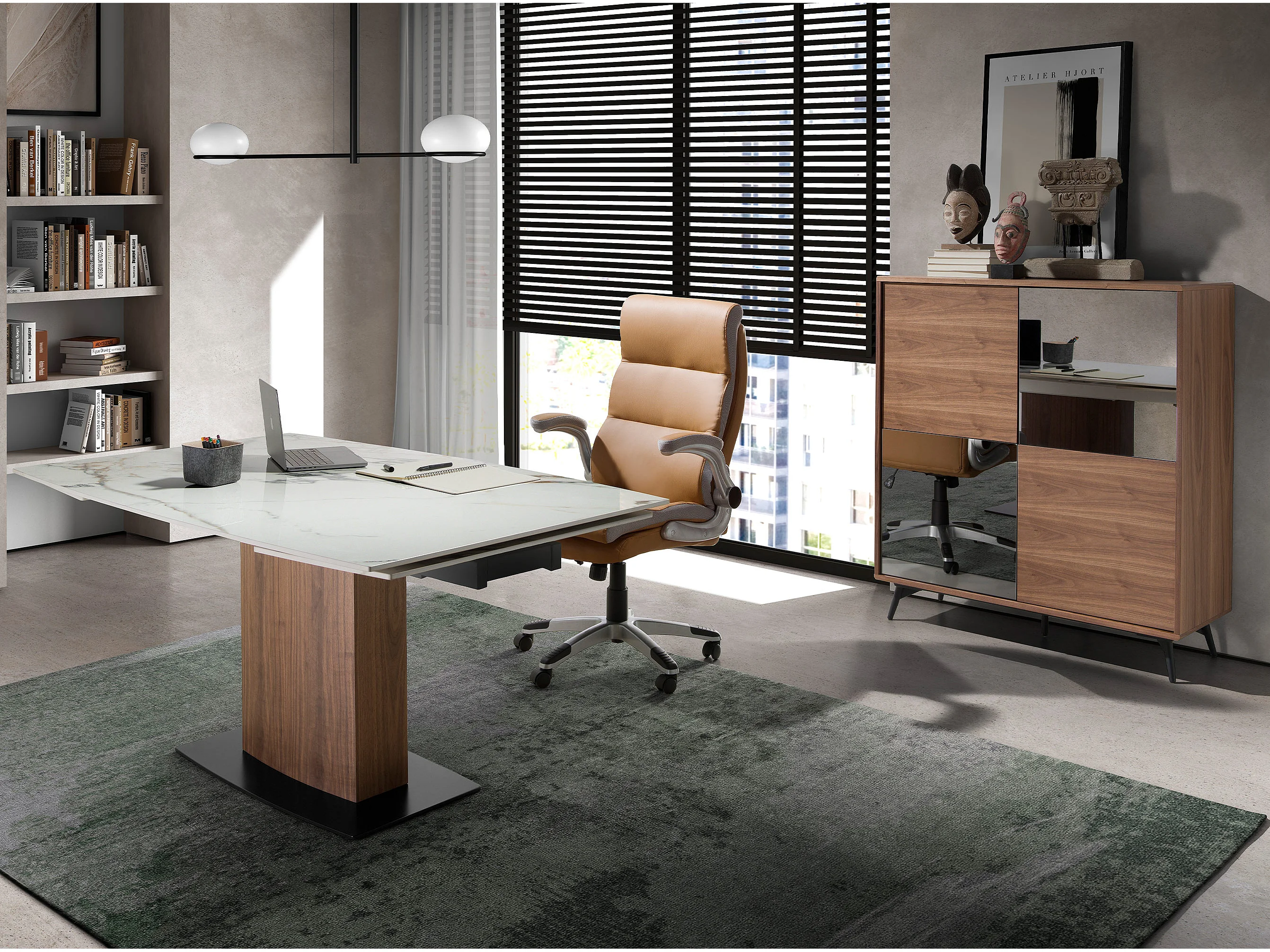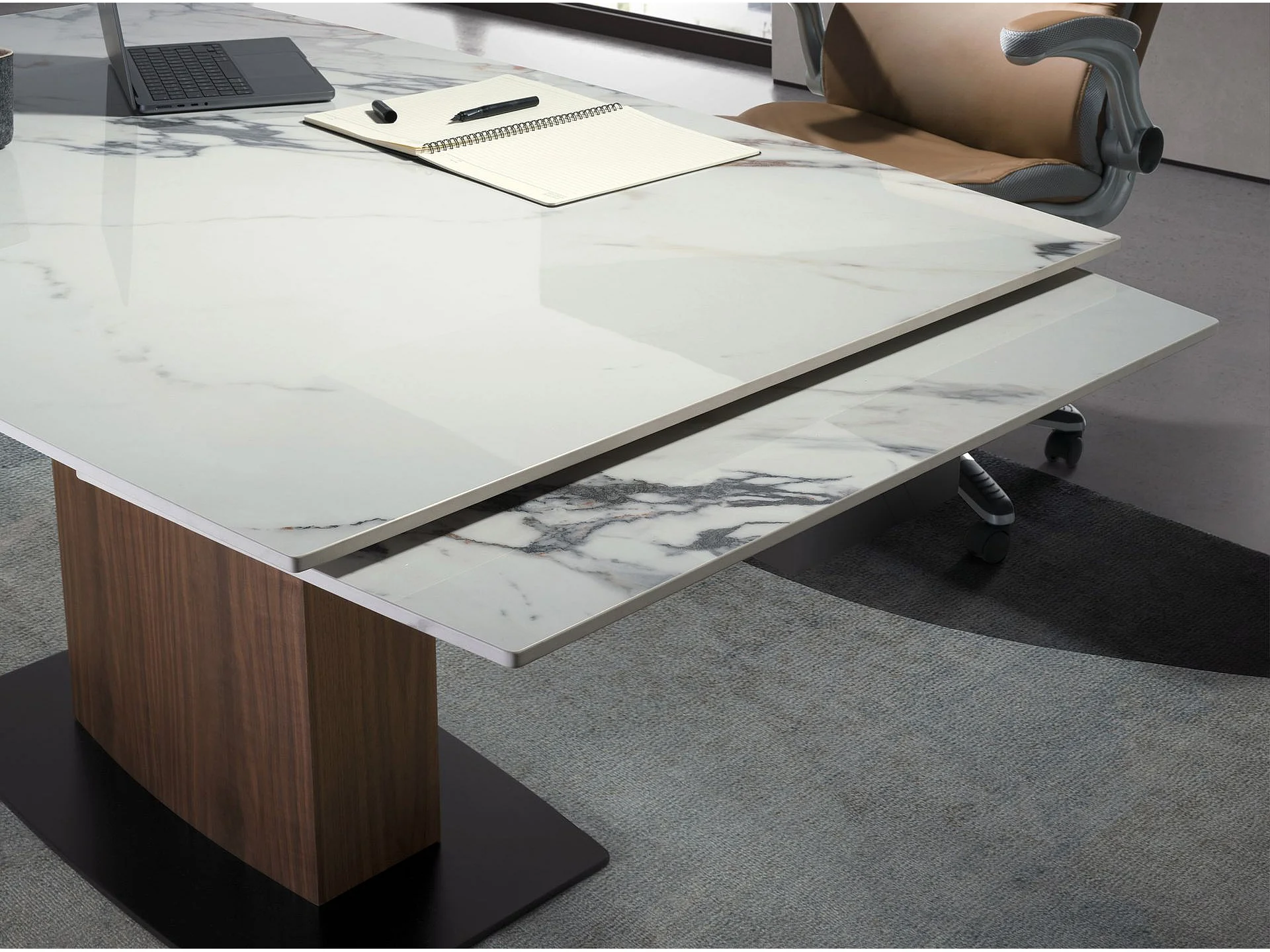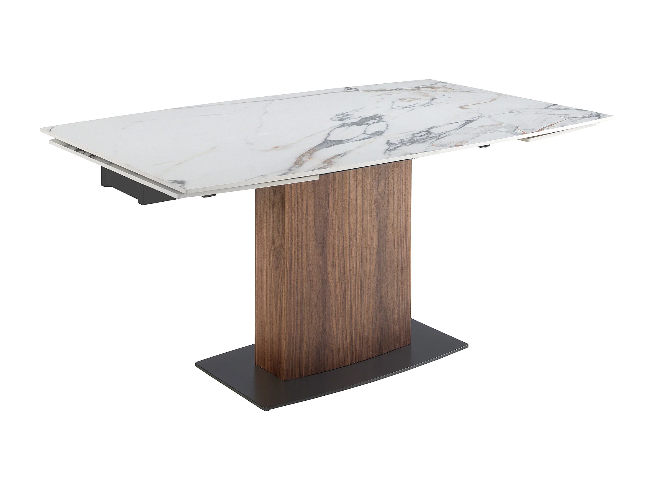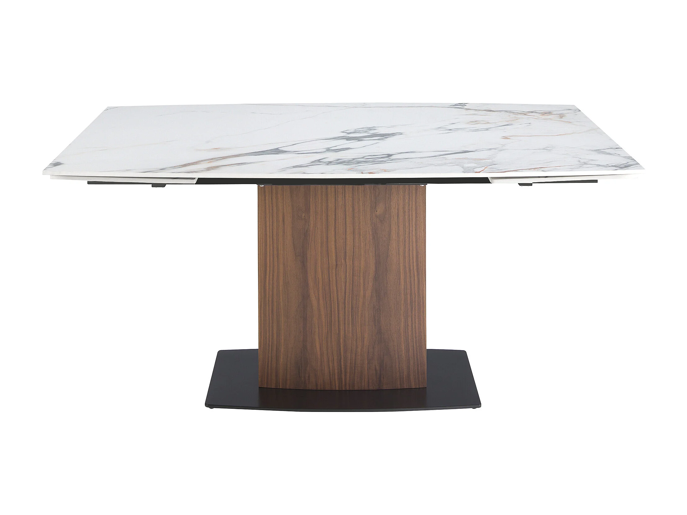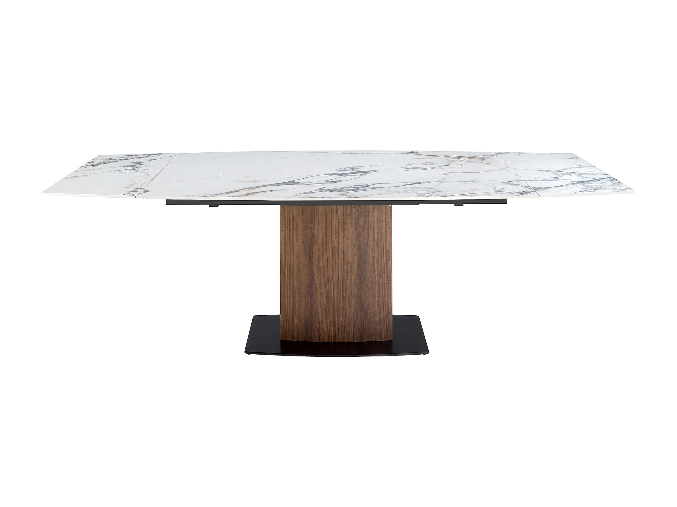 Table à manger à rallonge baril ovale marbre porcelaine et noyer 1133 ANGEL CERDA