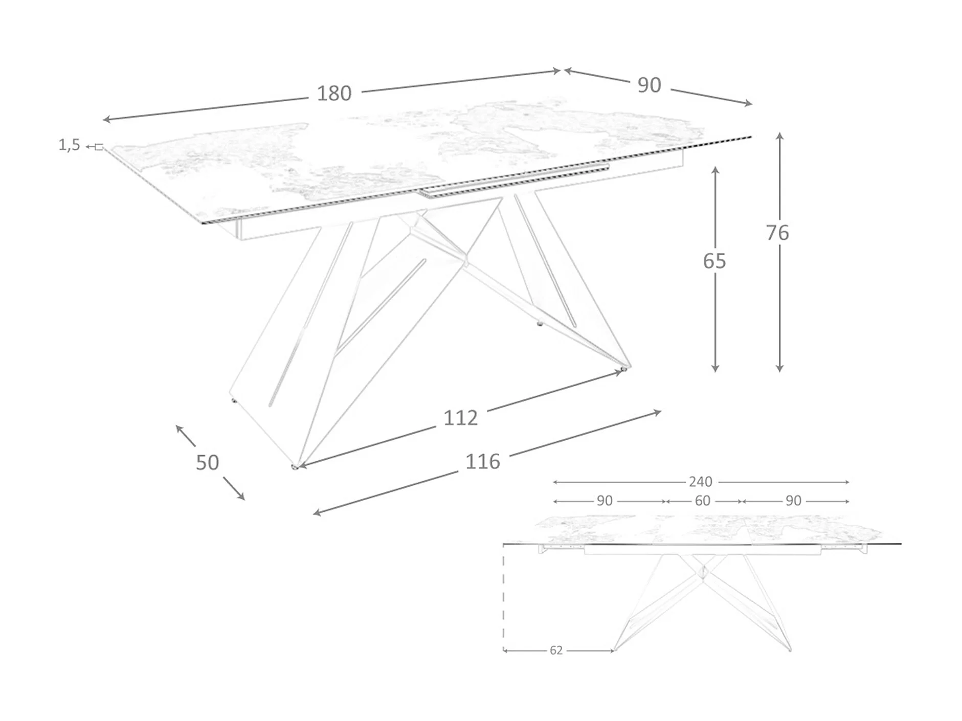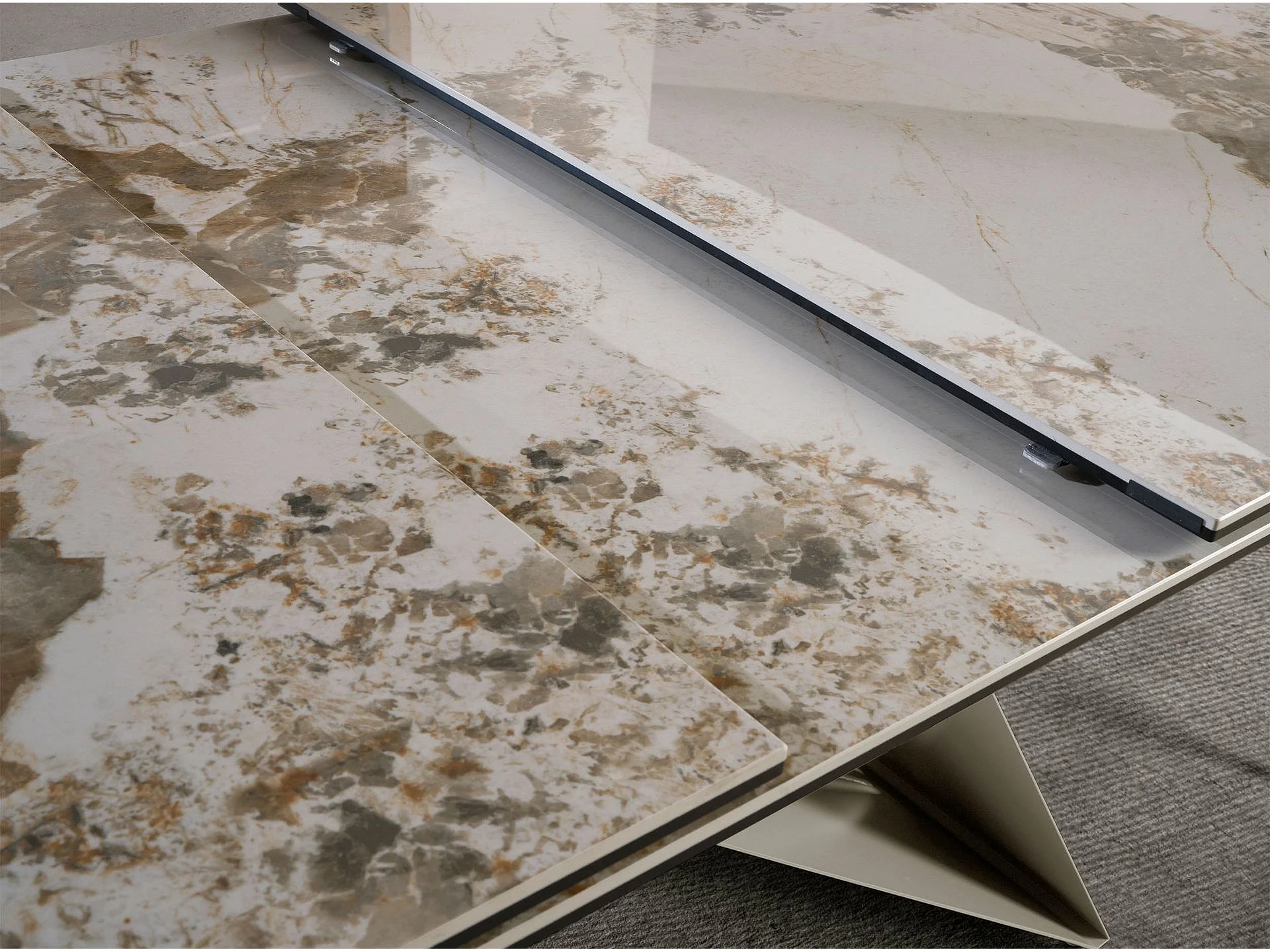 Table de salle à manger rectangulaire à rallonge en marbre porcelaine et acier gris taupe 1114 ANGEL CERDA