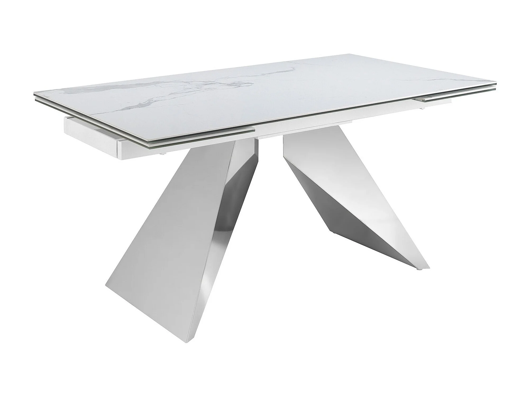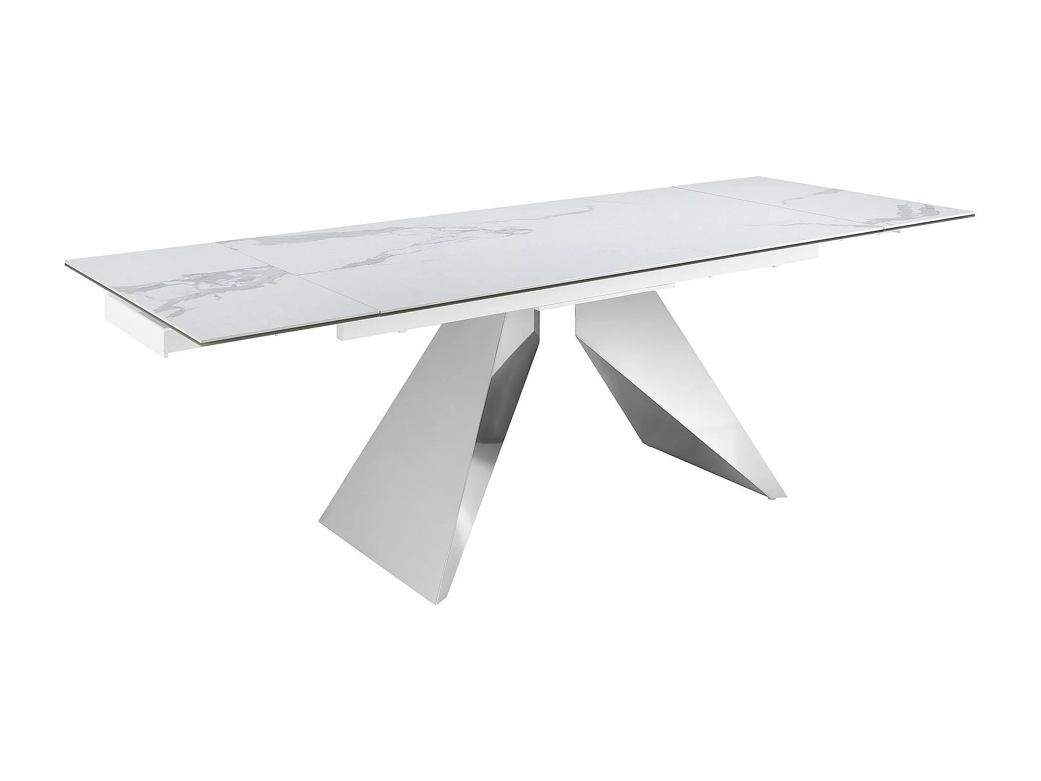 Table à manger à rallonge rectangulaire marbre porcelaine et acier chromé 1116 ANGEL CERDA