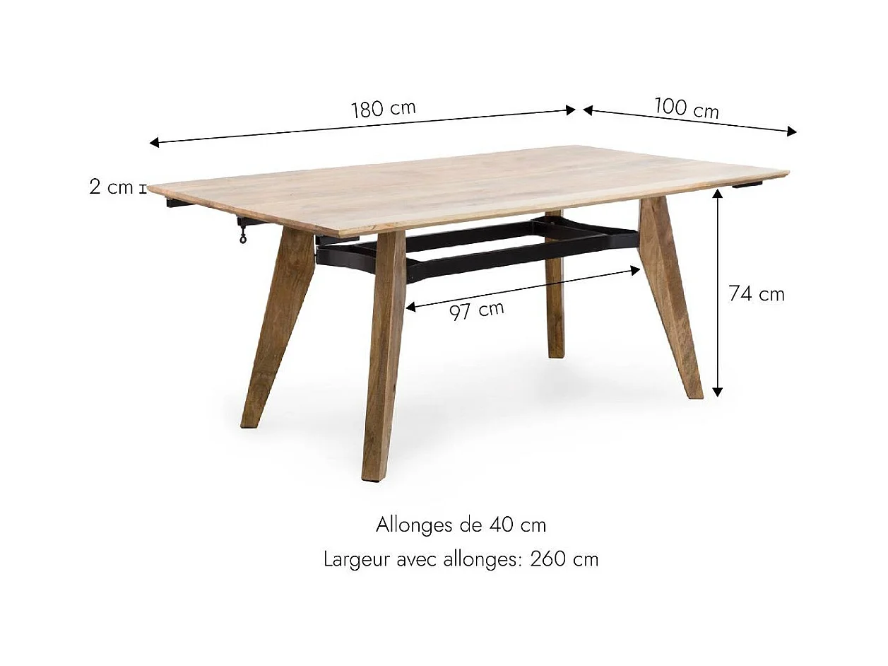 Table à manger avec allonges en bois de manguier Wood
