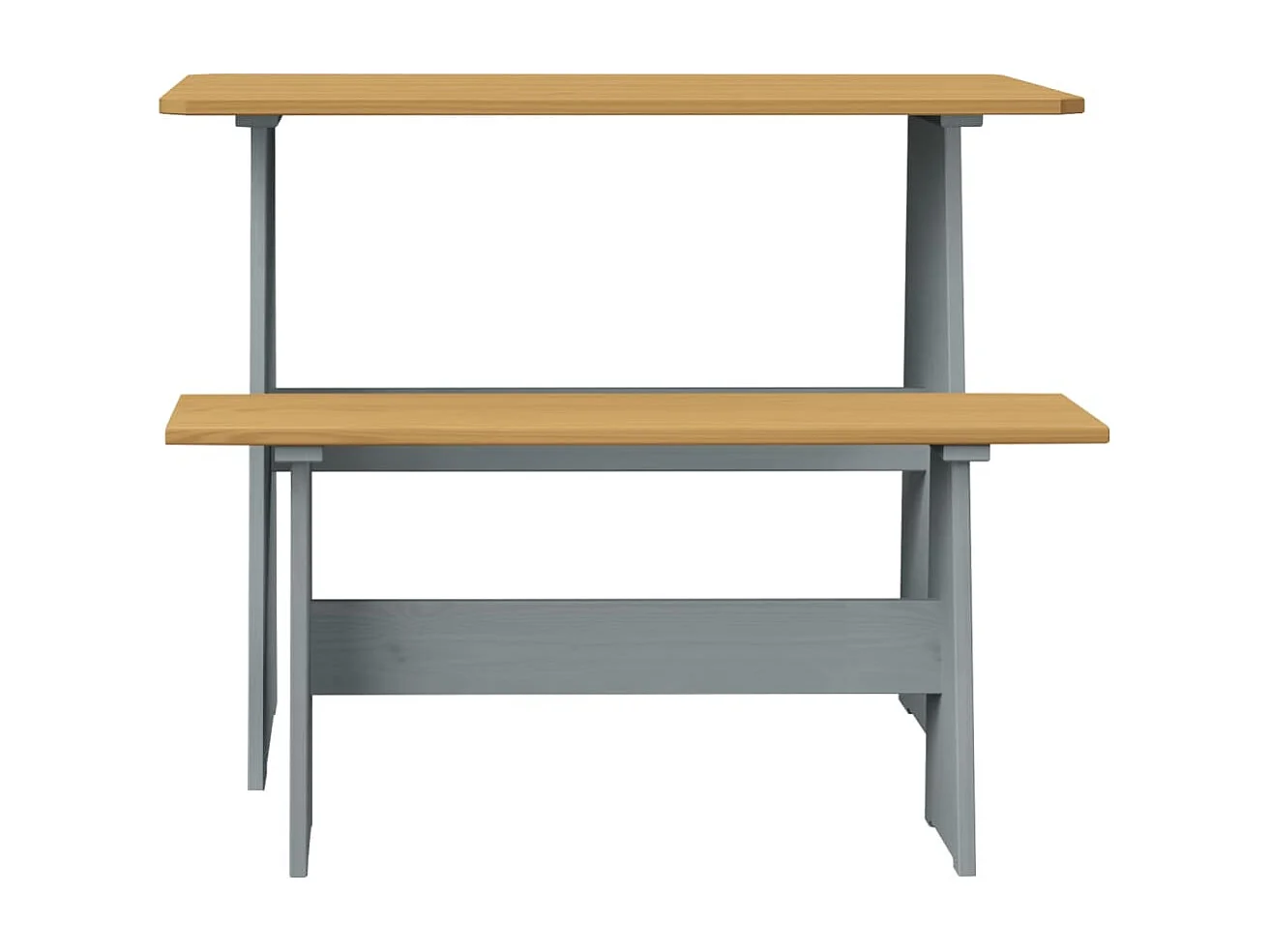 Table à manger avec banc Marron miel et gris Bois de pin solide
