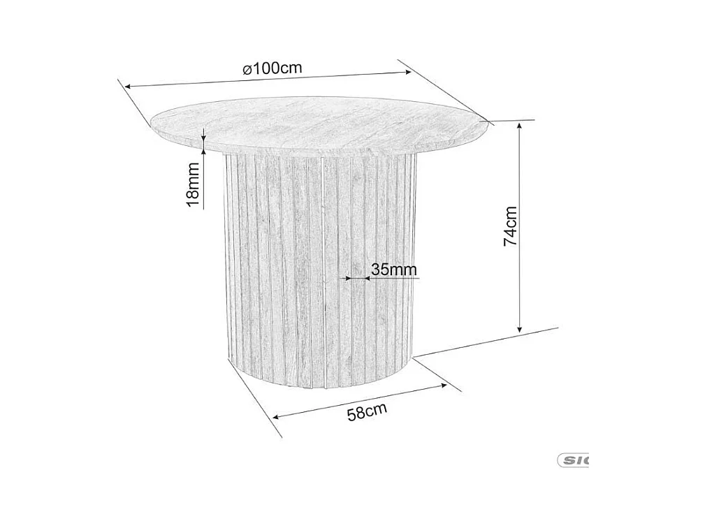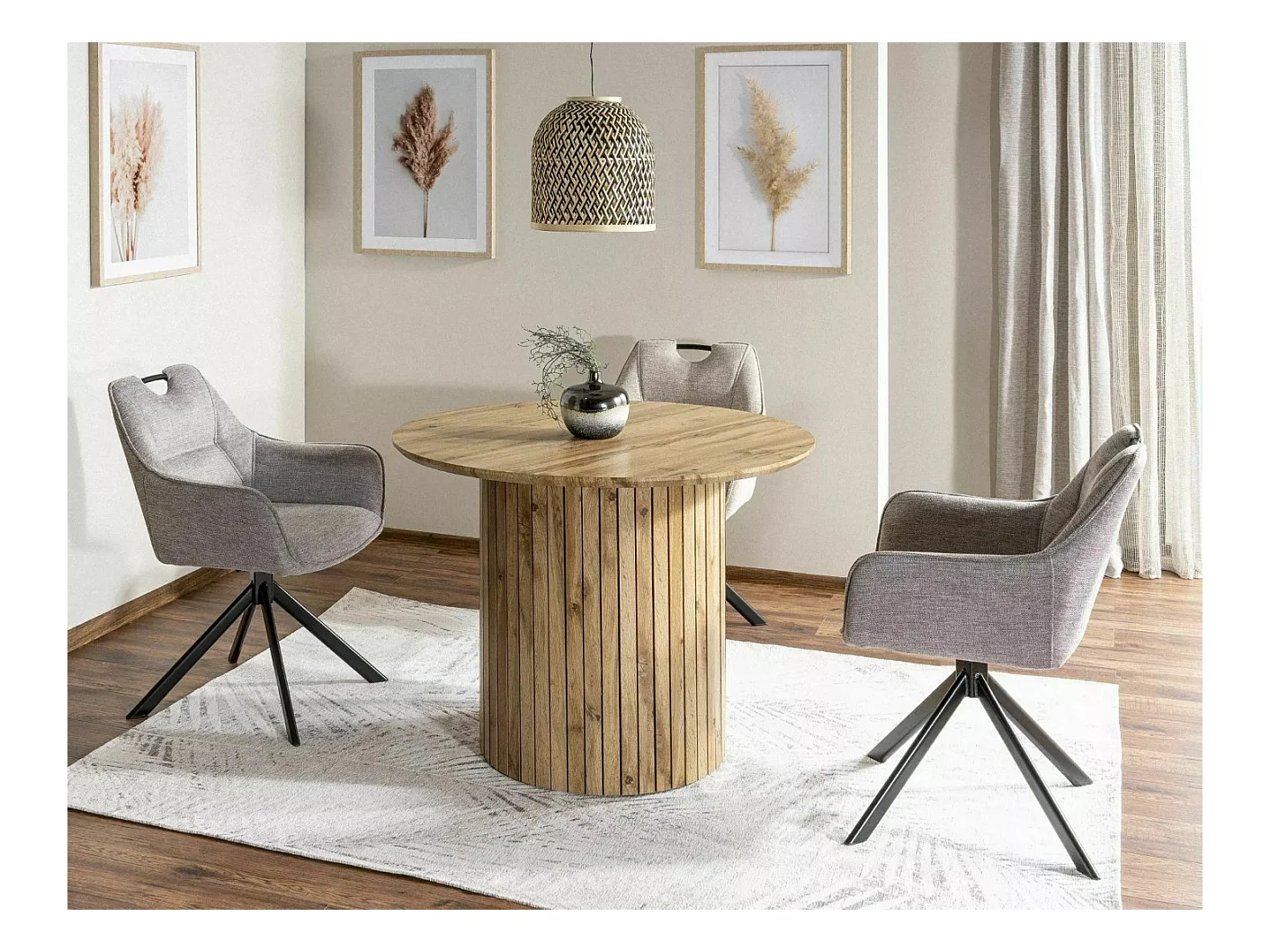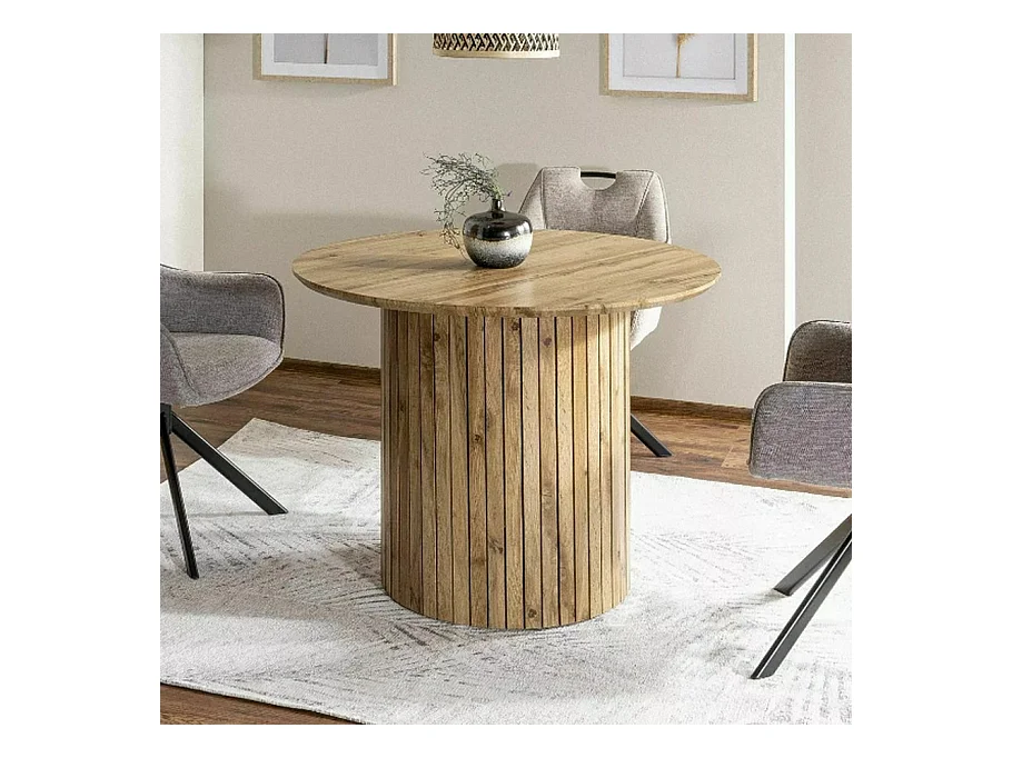 Table à manger avec pied central et plateau plaqué chêne Pictoris