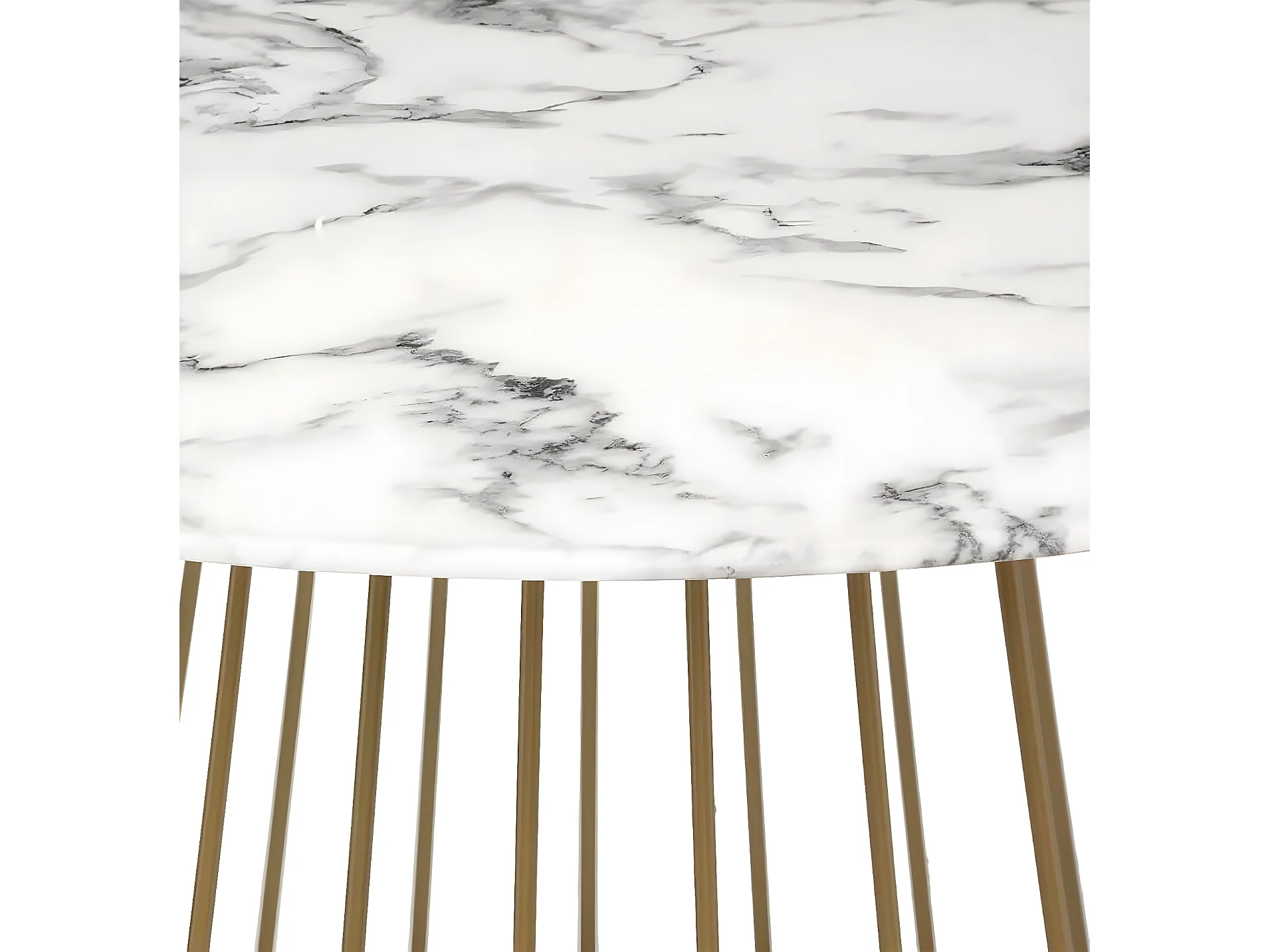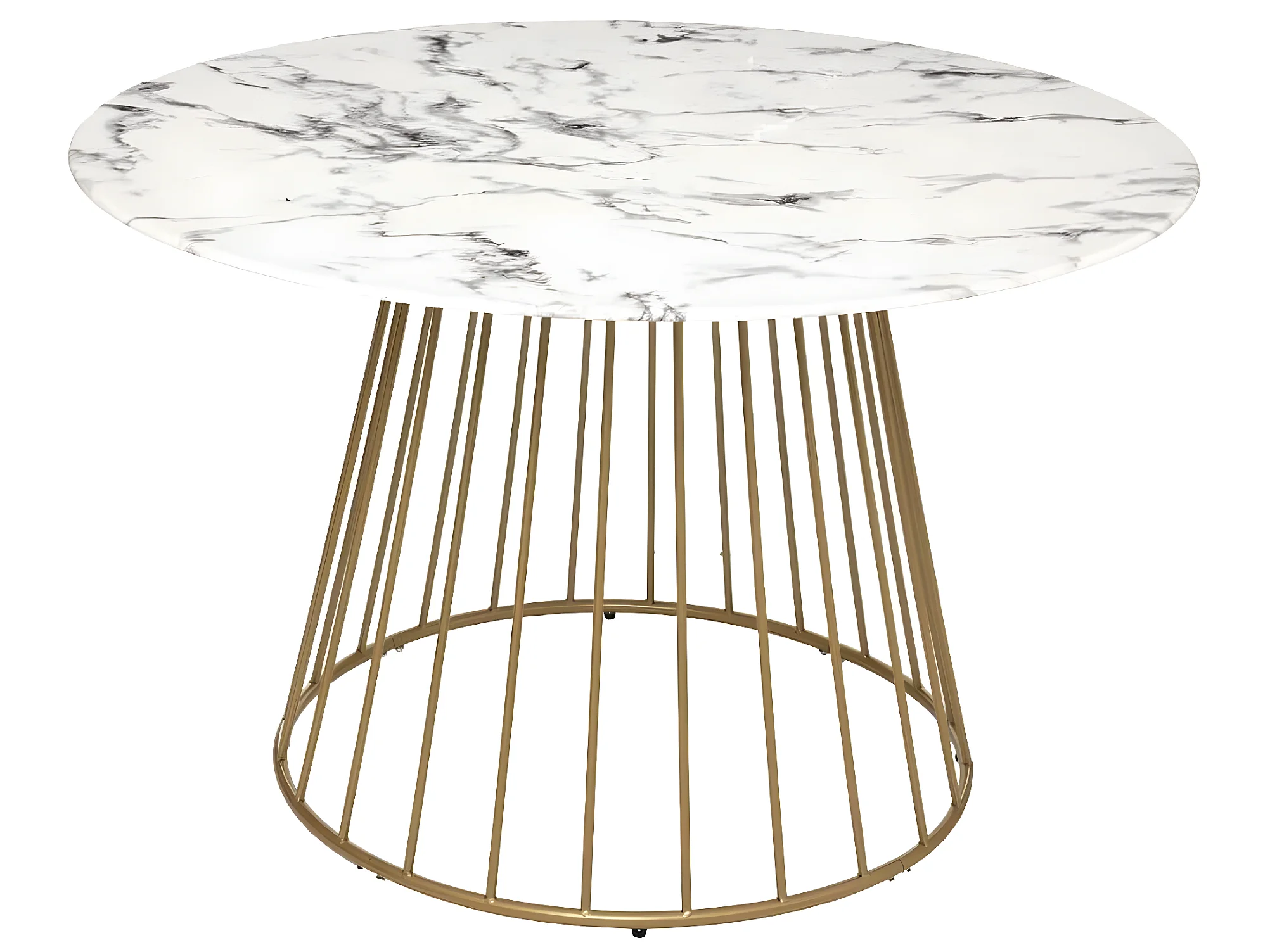Table à manger avec plateau verre trempé effet marbre/blanc - Diamètre 120 x Hauteur 75 cm