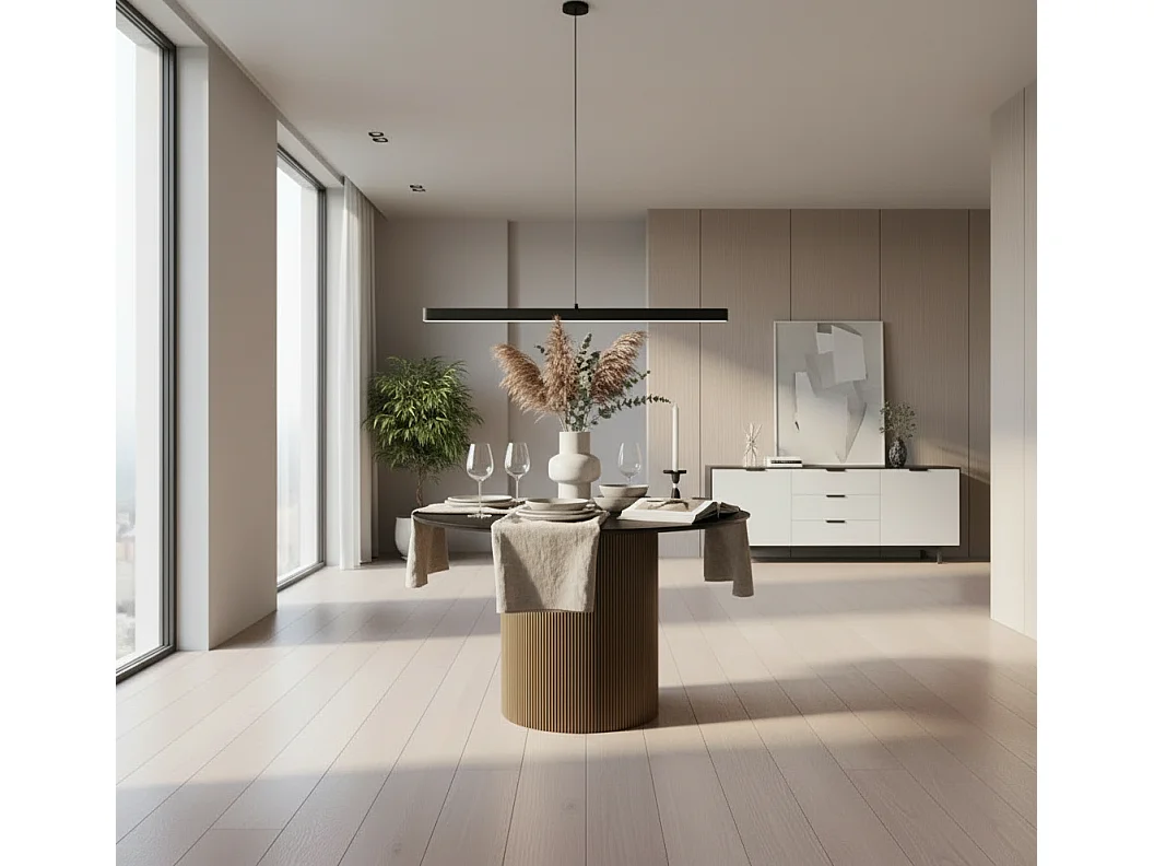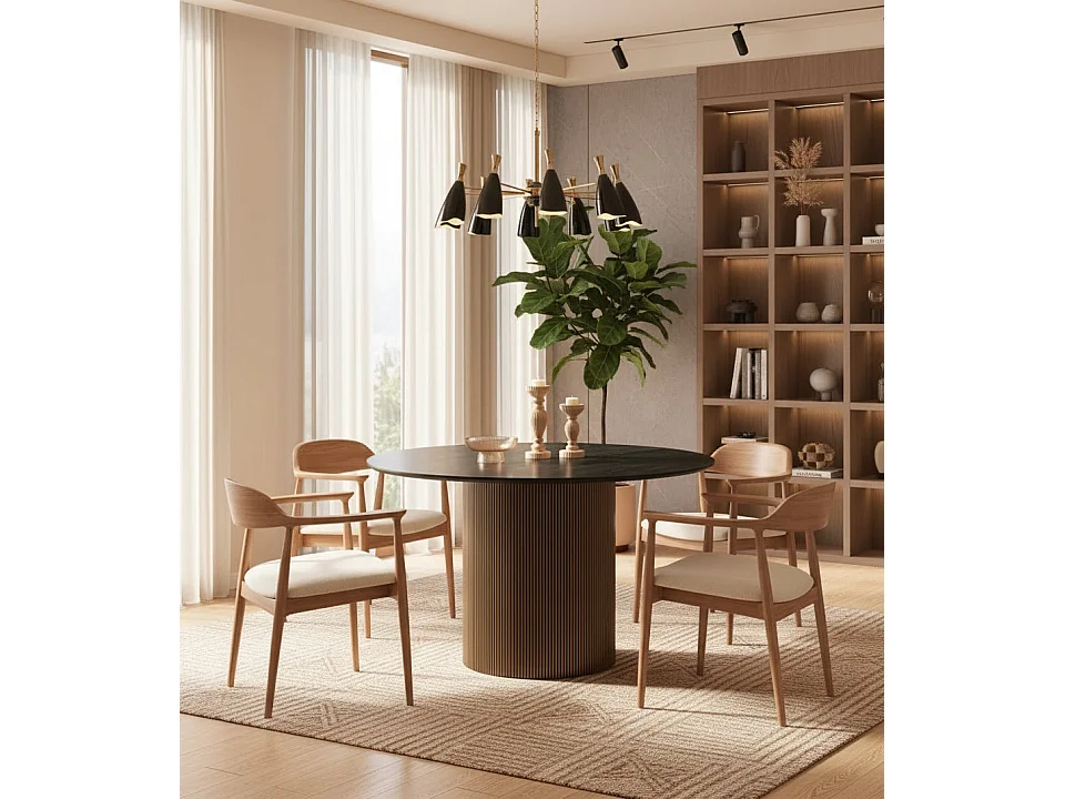 Table à Manger Ronde Bois MDF Noir & Gold – 120x75 cm – BAIETA