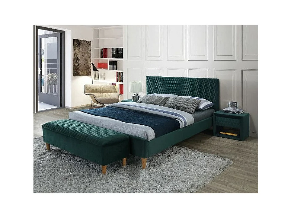 Lit en velours - Azurro - L 206 x l 165 cm - Vert