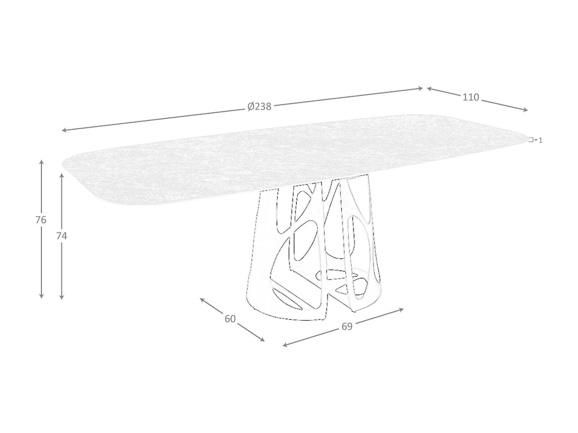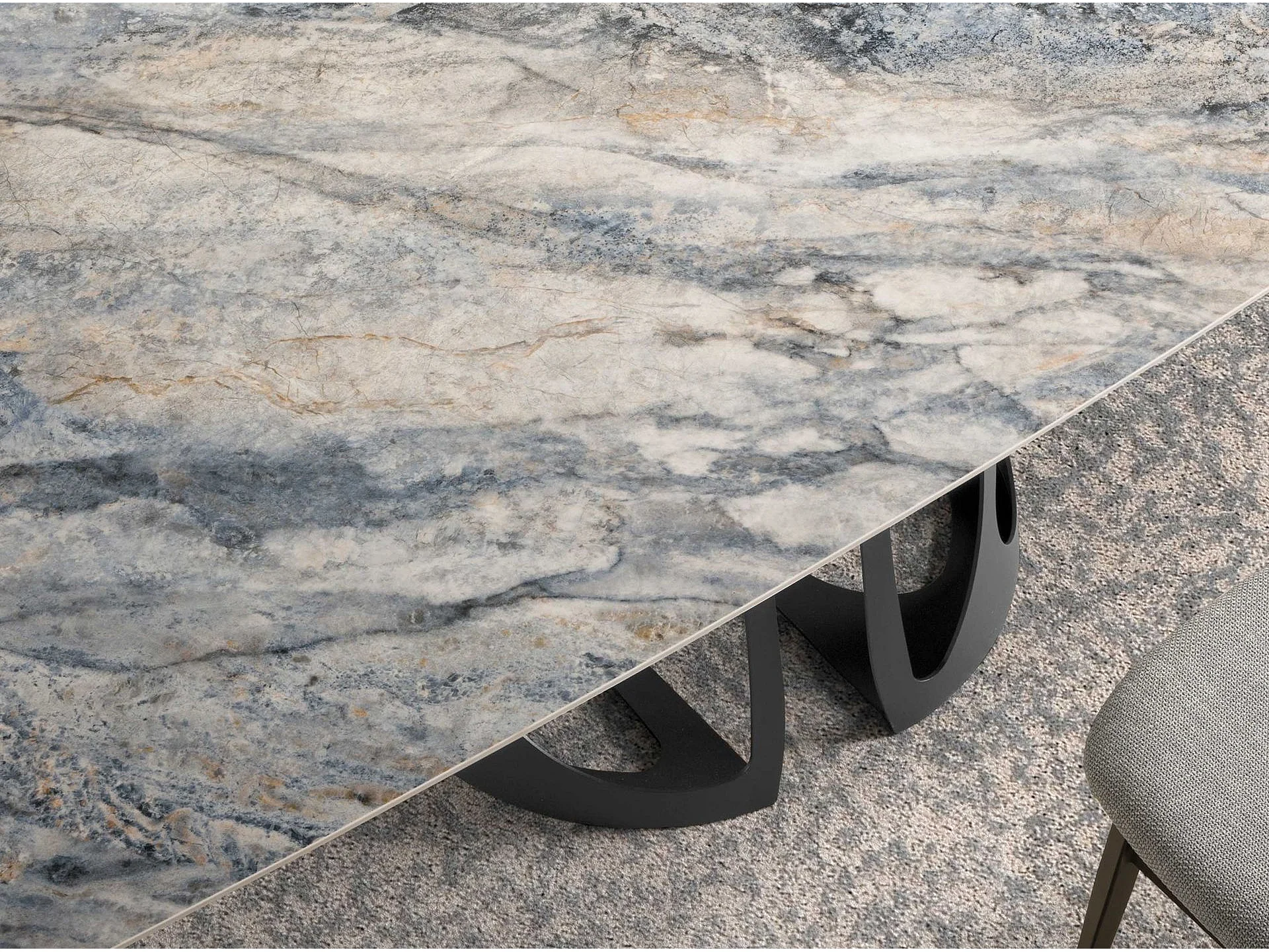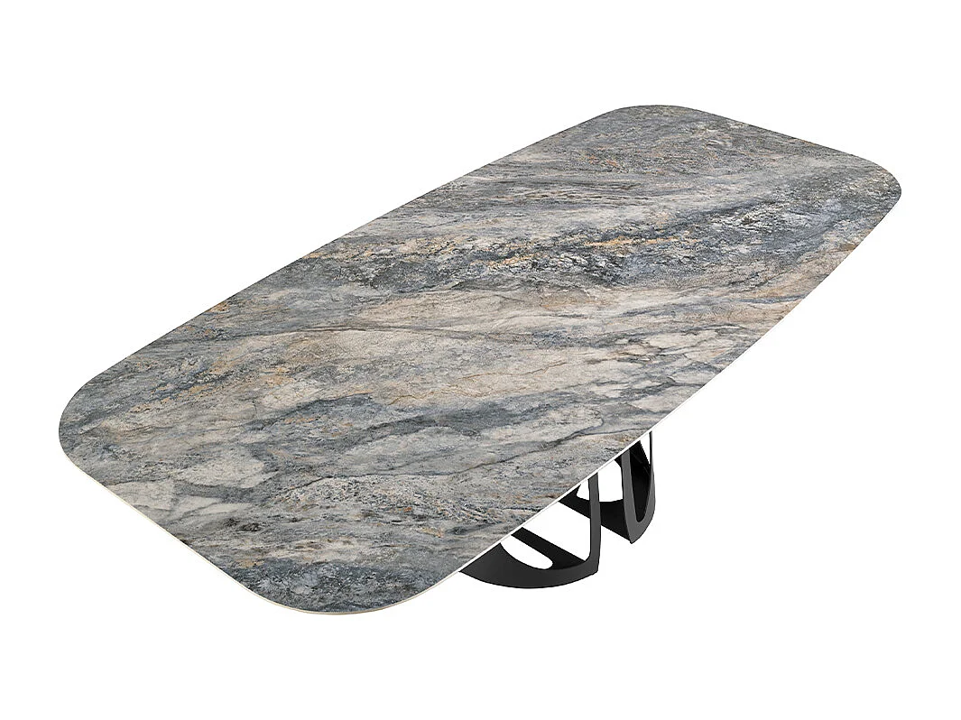 Table à manger baril ovale marbre porcelaine et acier noir 1136 ANGEL CERDA