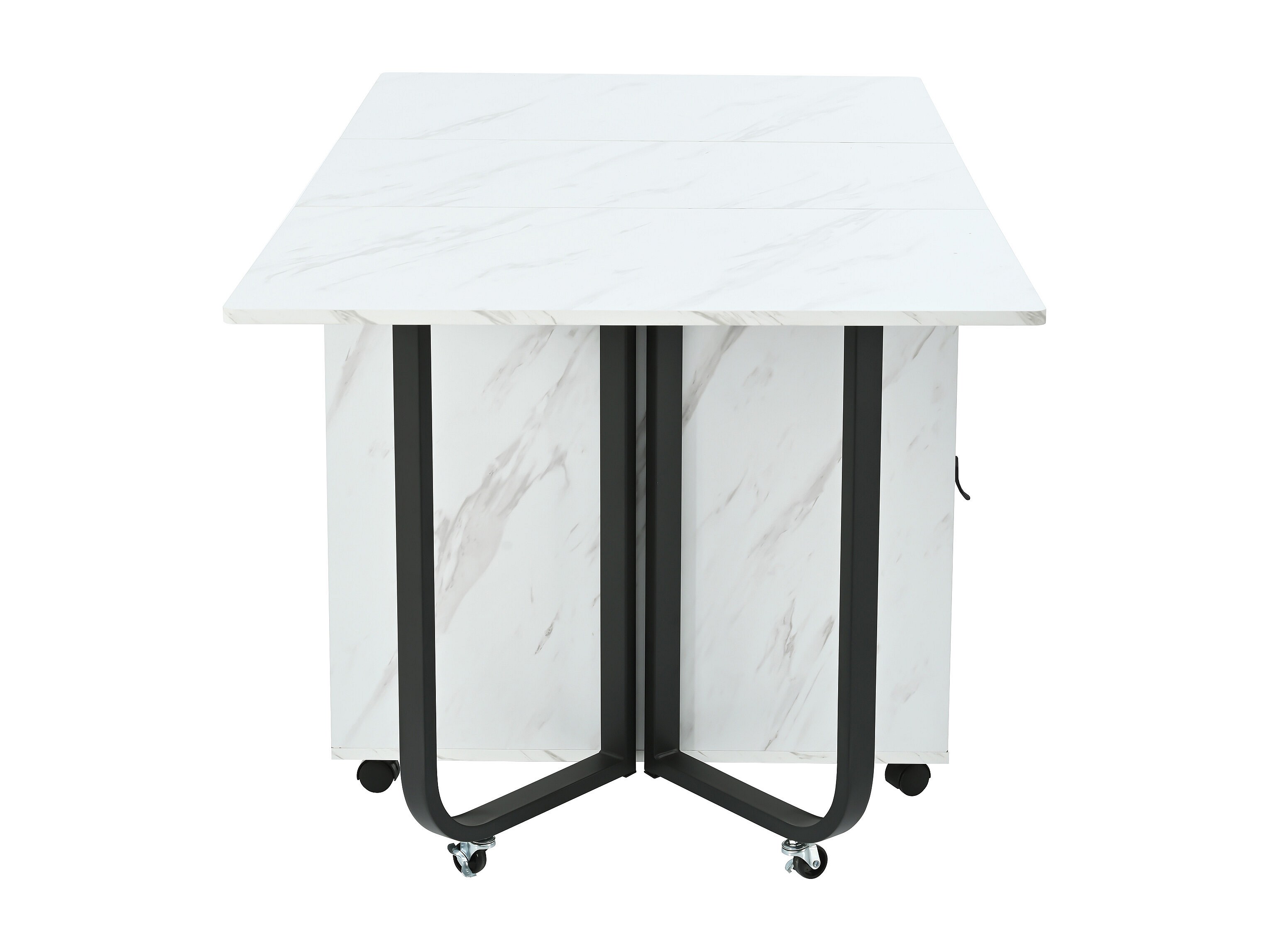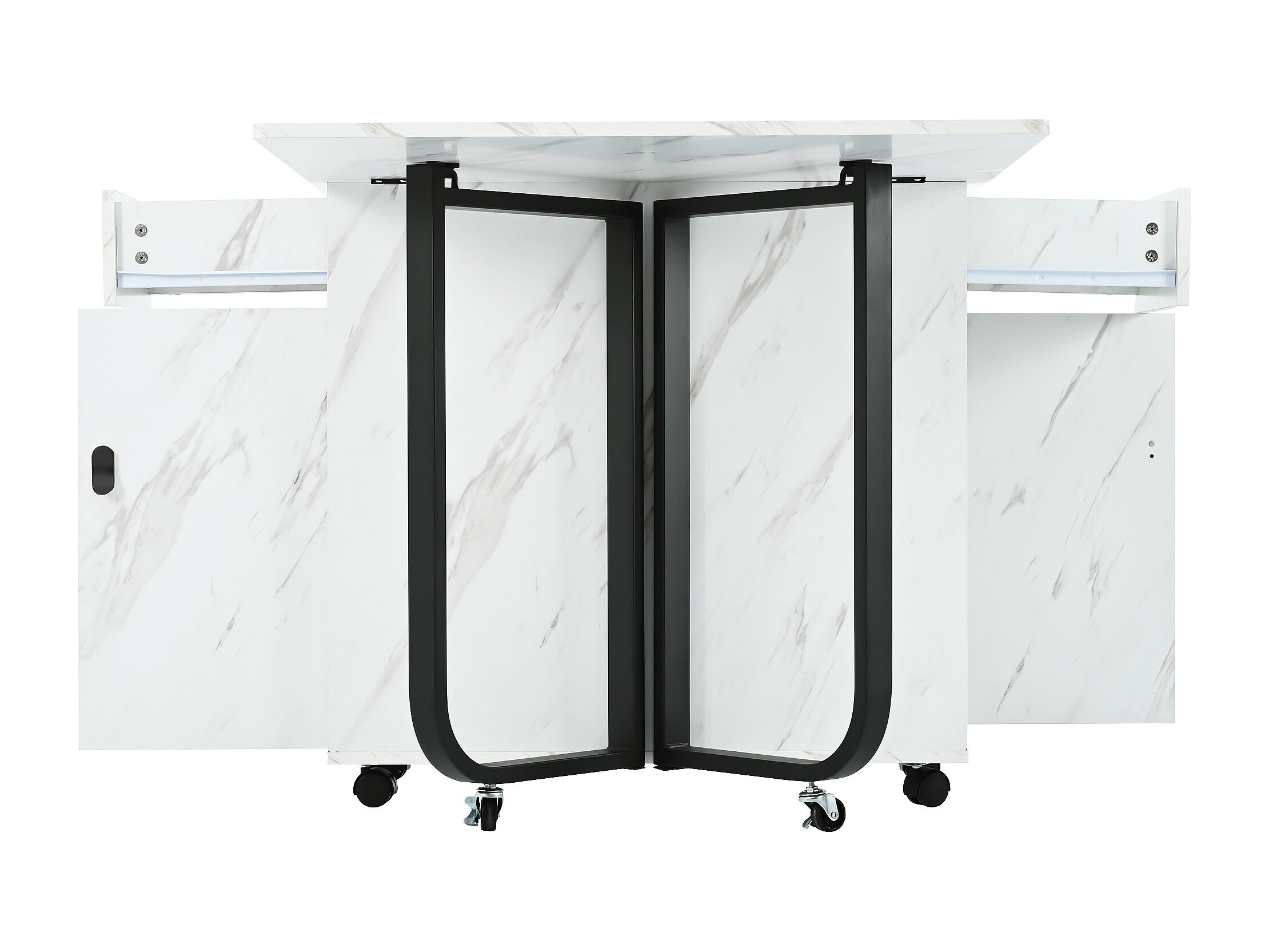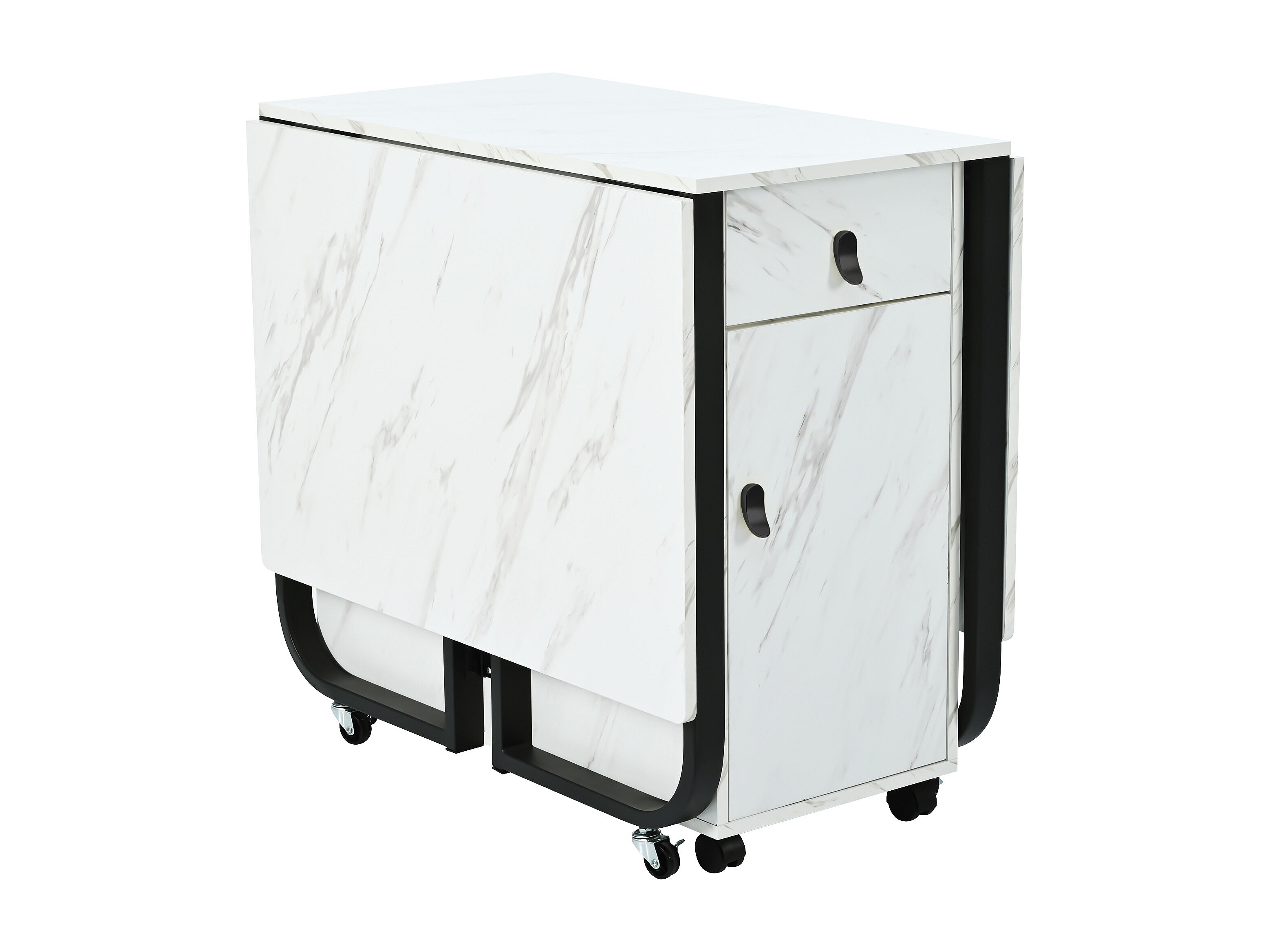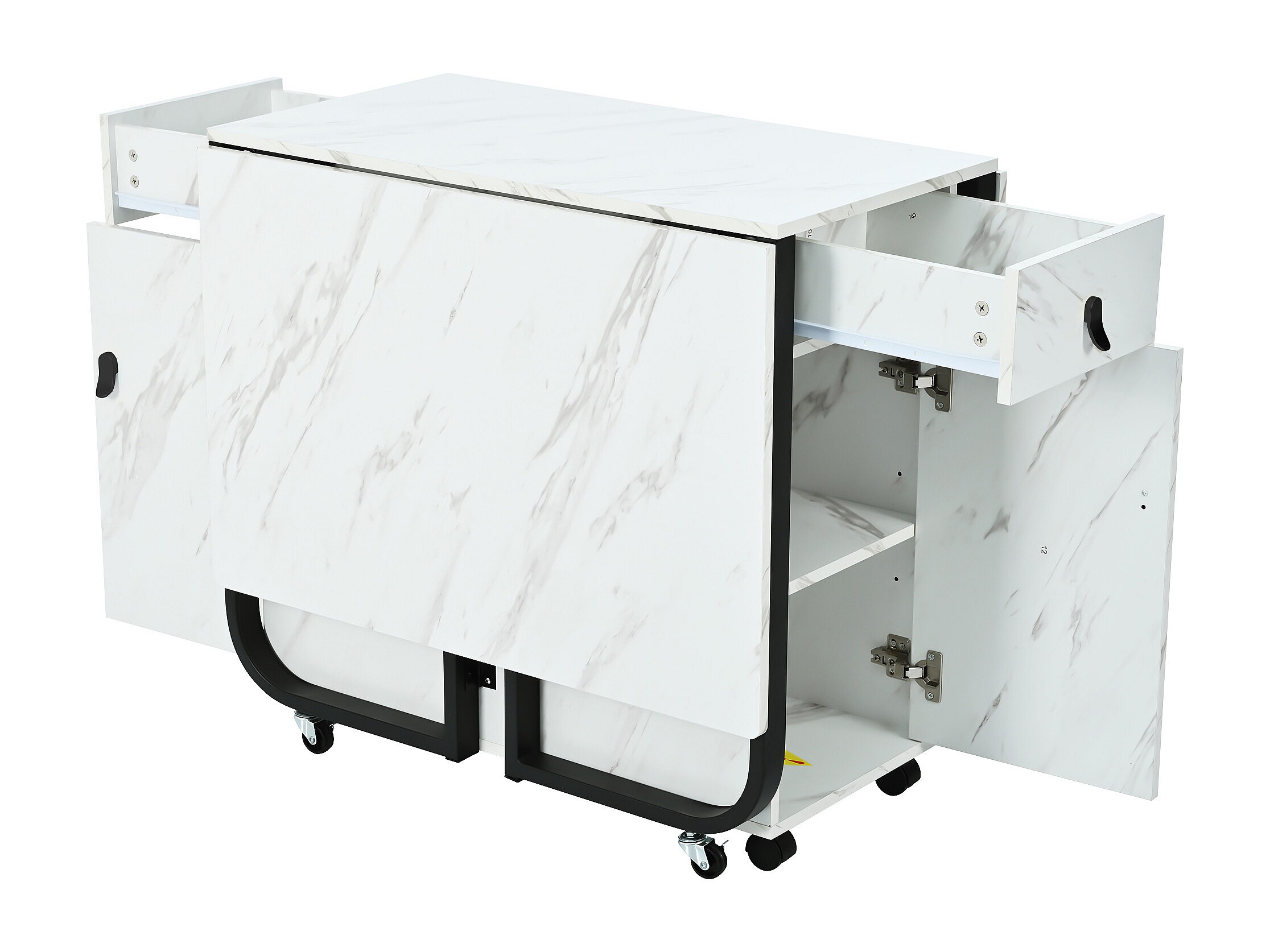 Table à manger blanc à roulettes - Table à manger pliante avec 2 tiroirs et 2 portes - 4 pieds noir