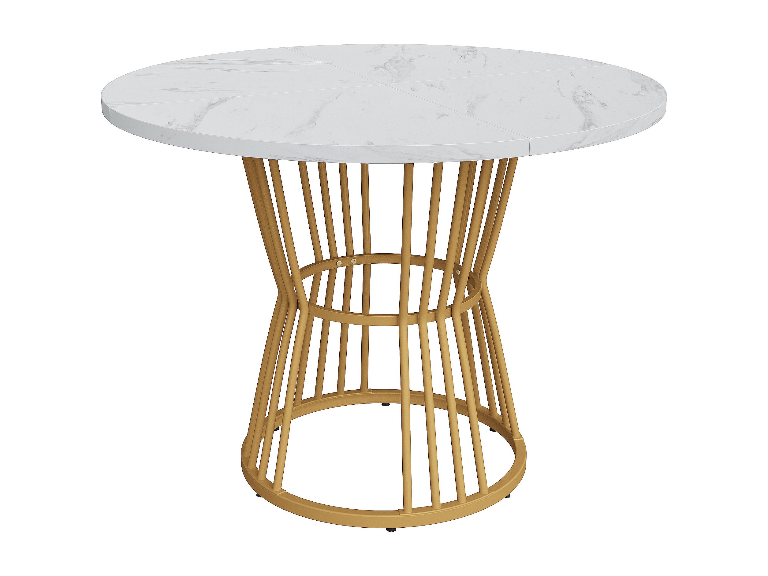 Table à manger blanc - Table à manger avec plateau en MDF et pieds en métal doré - décoration à motifs