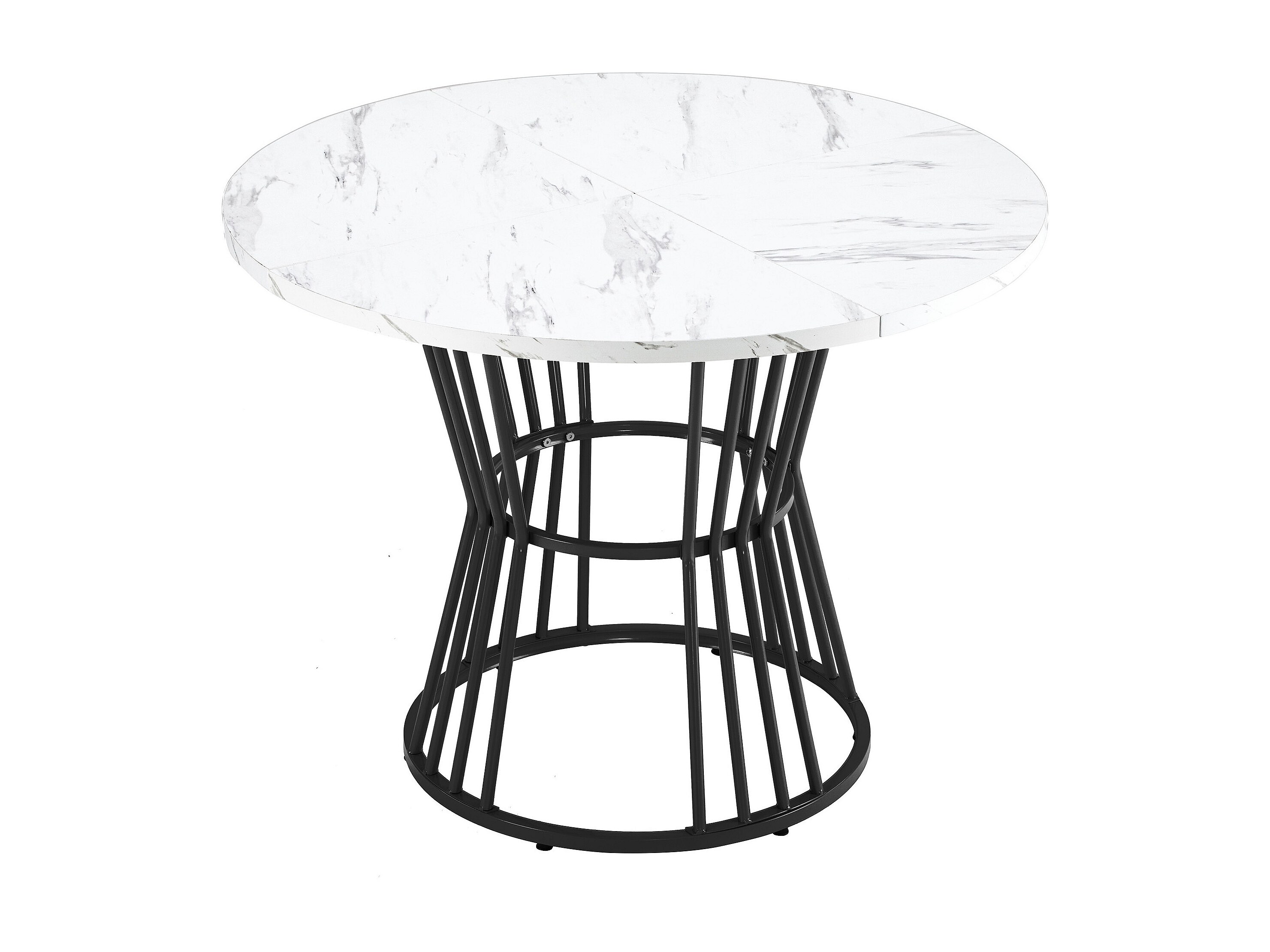 Table à manger blanc - Table à manger avec plateau en MDF et pieds en métal noir - décoration à motifs