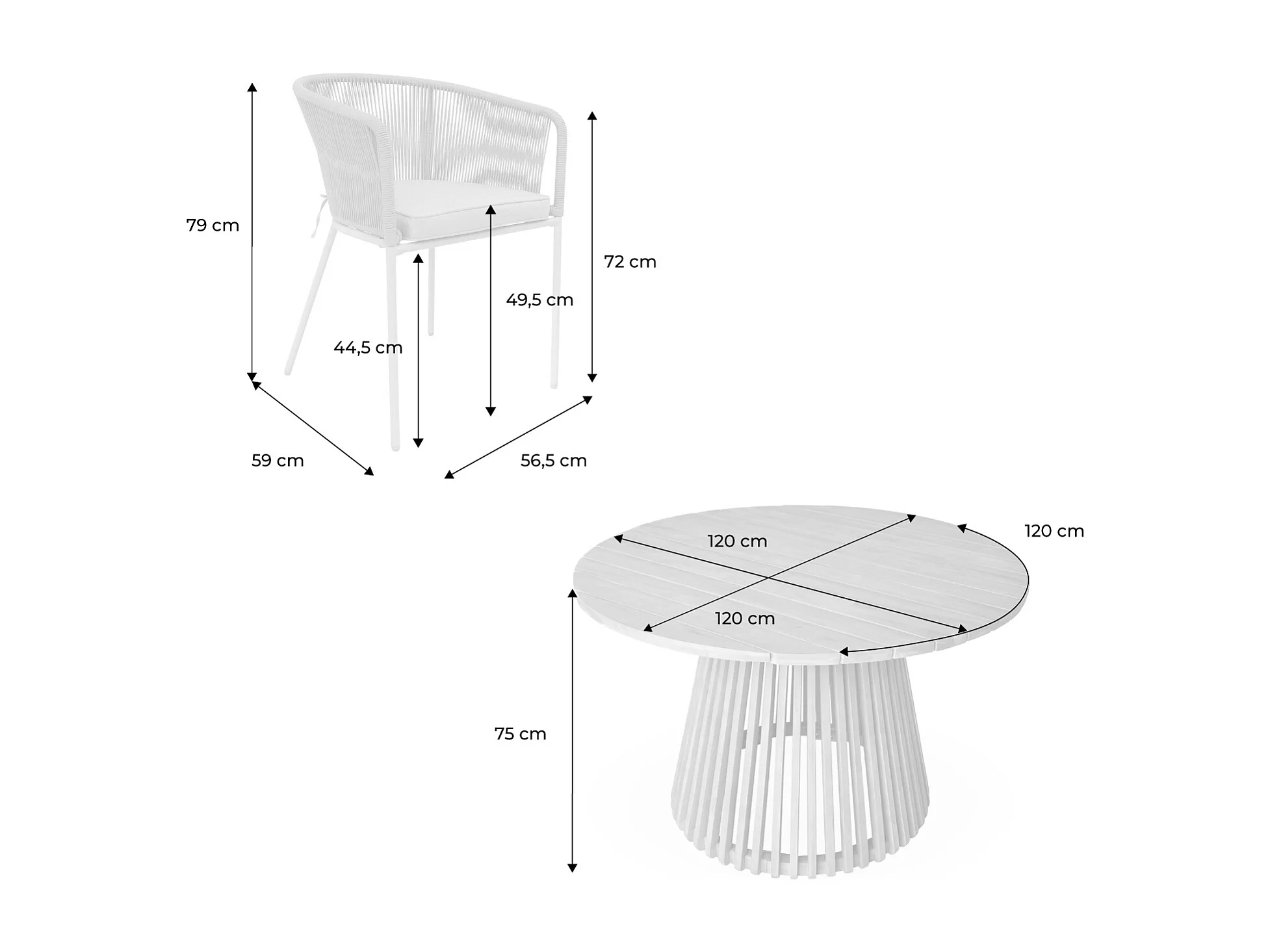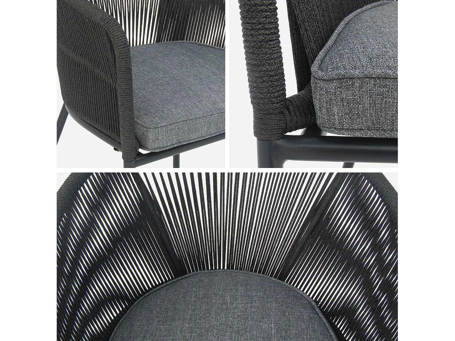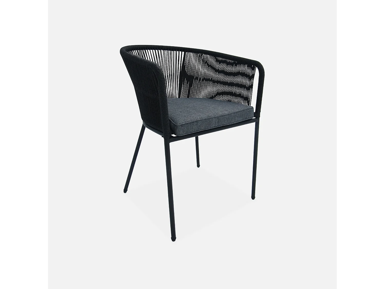 Table intérieur/extérieur bois d'acacia + 4 assises en corde noir et acier