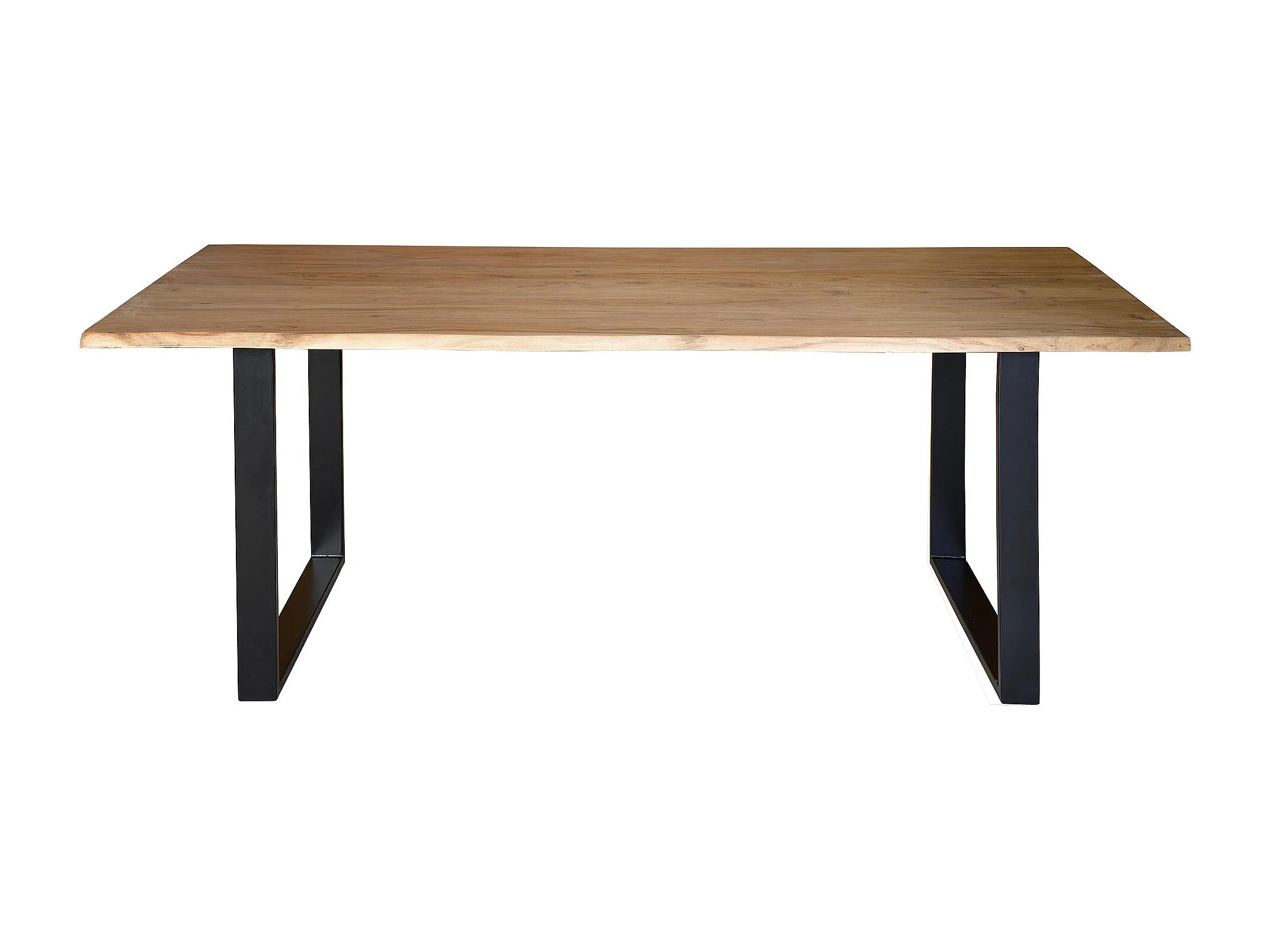 Table à manger en bois d'acacia naturel et pieds en métal noir