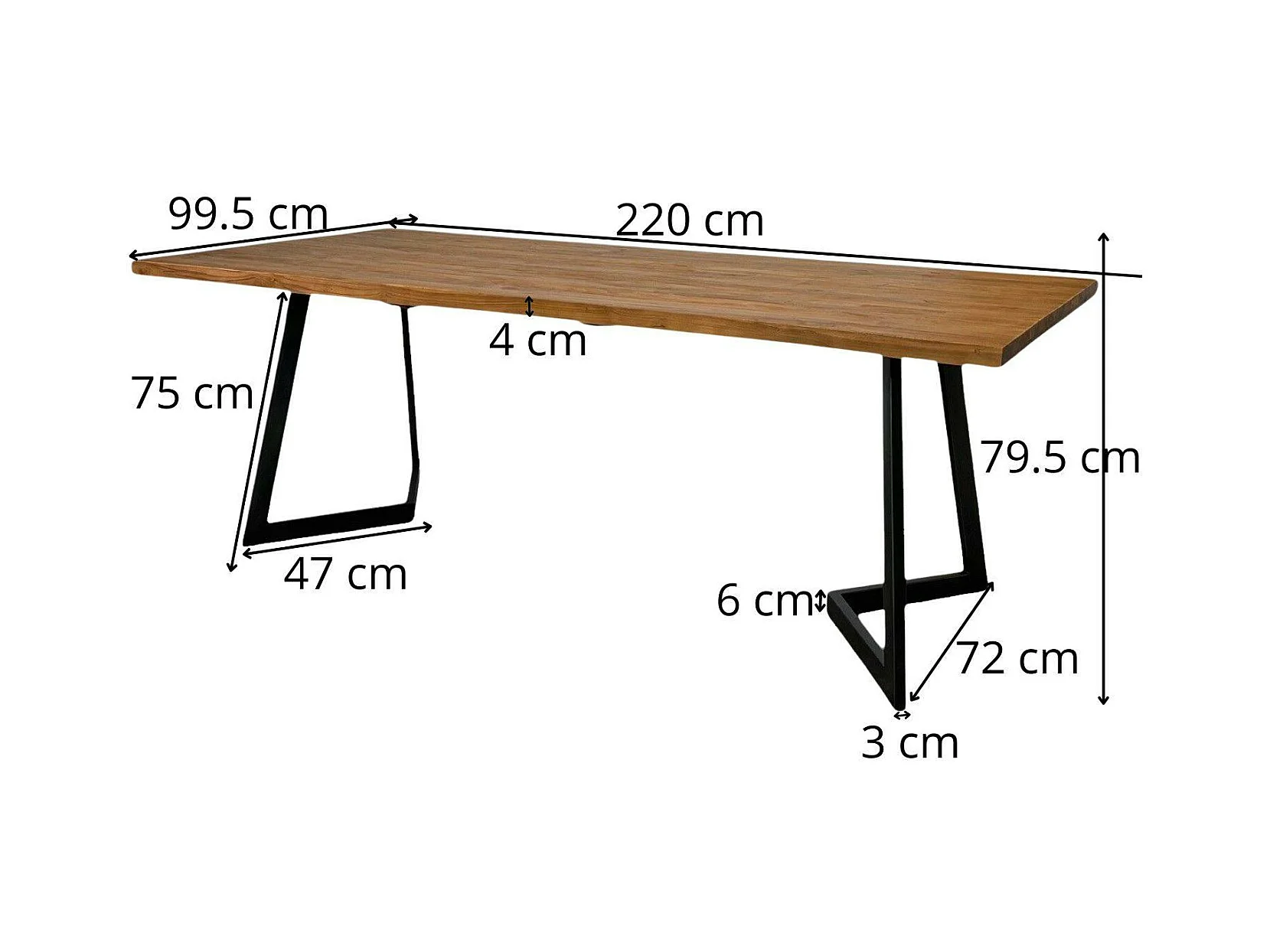Table à manger bois recyclé teck pied accent 220 cm CLEVELAND