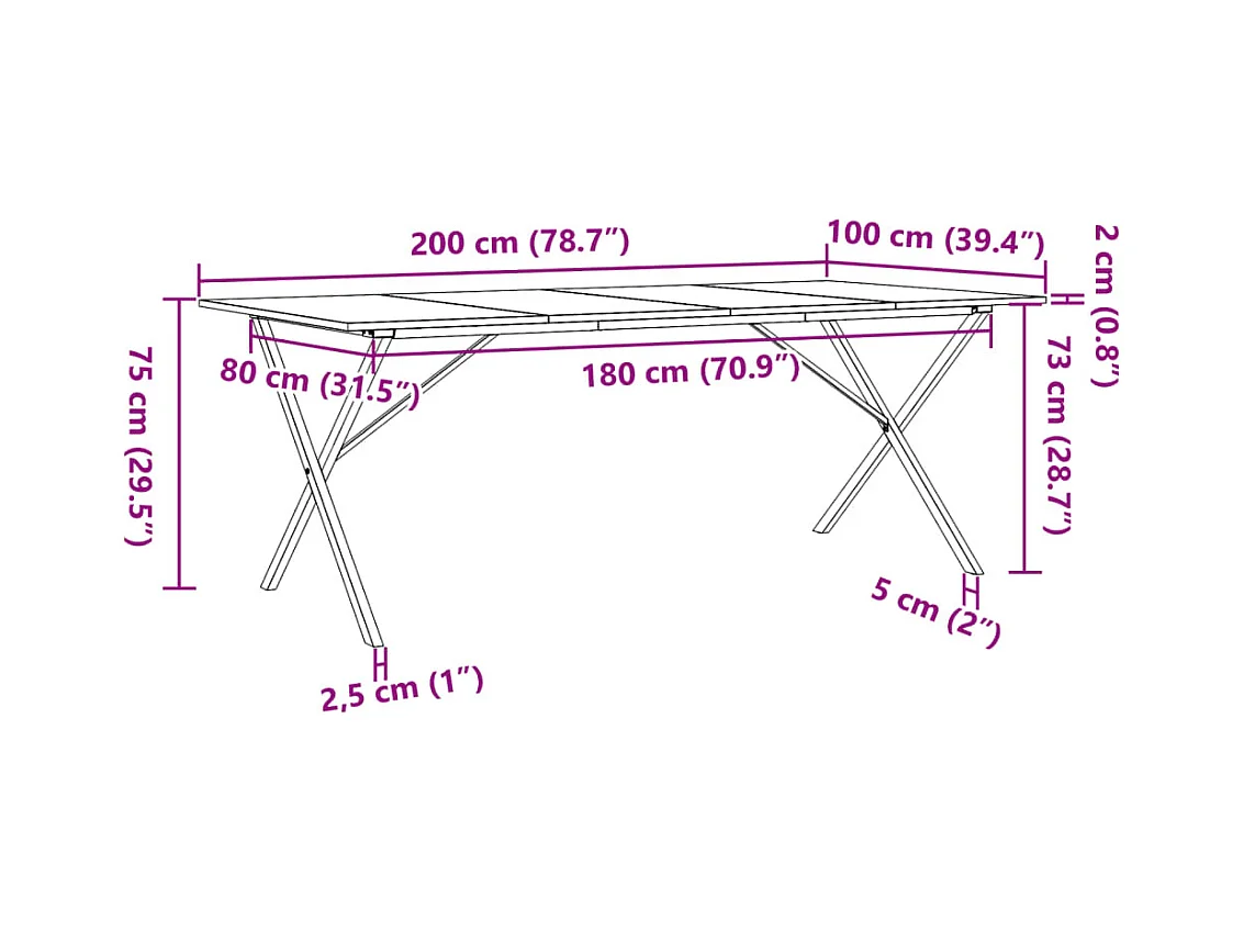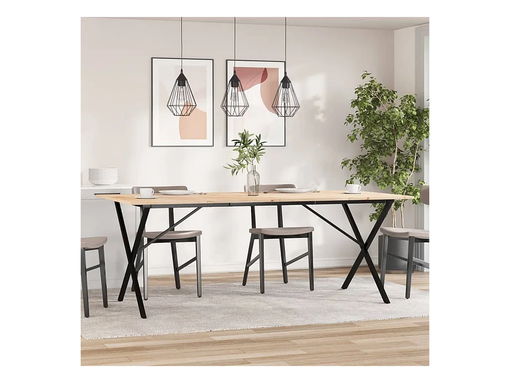 Table à manger cadre en X 200x100x75cm bois de pin massif fonte