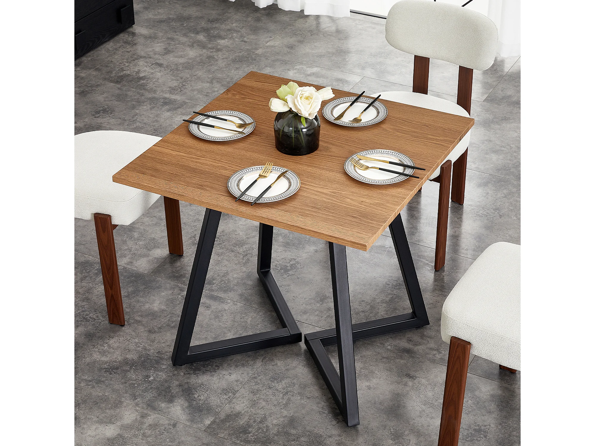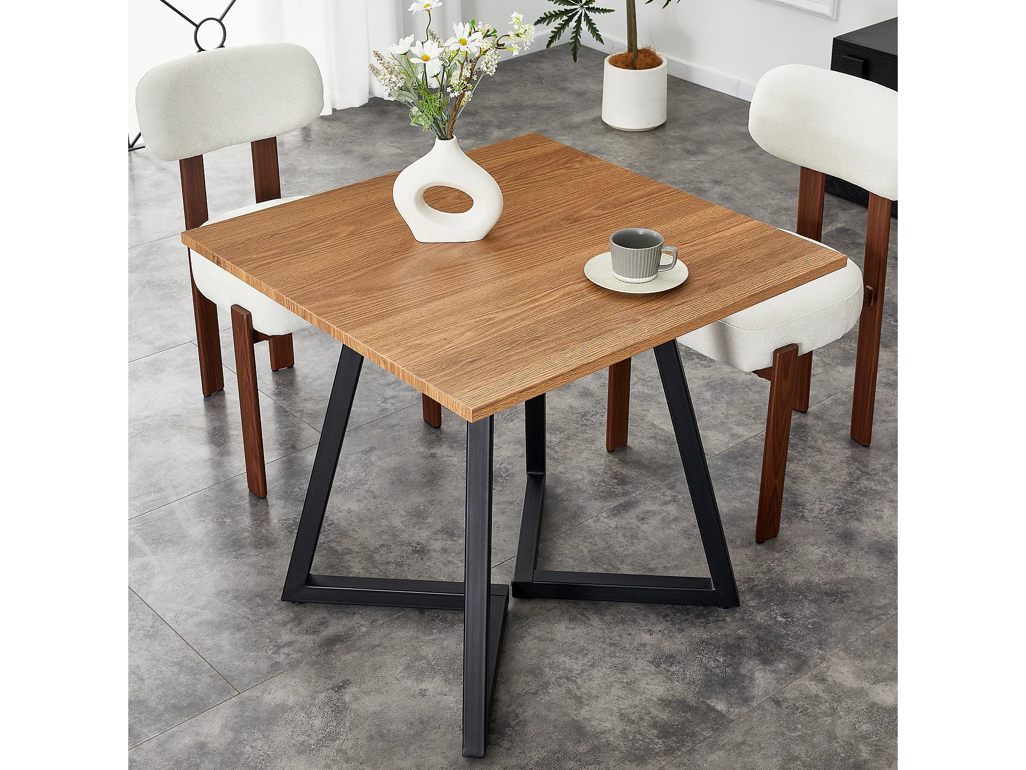 Table à manger carrée 80 cm pour 4 personnes avec pieds en métal -Couleur bois et noir