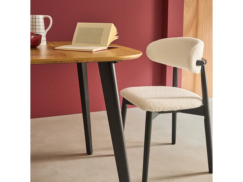 Table à manger carrée effet chêne pieds métal noir 4 places