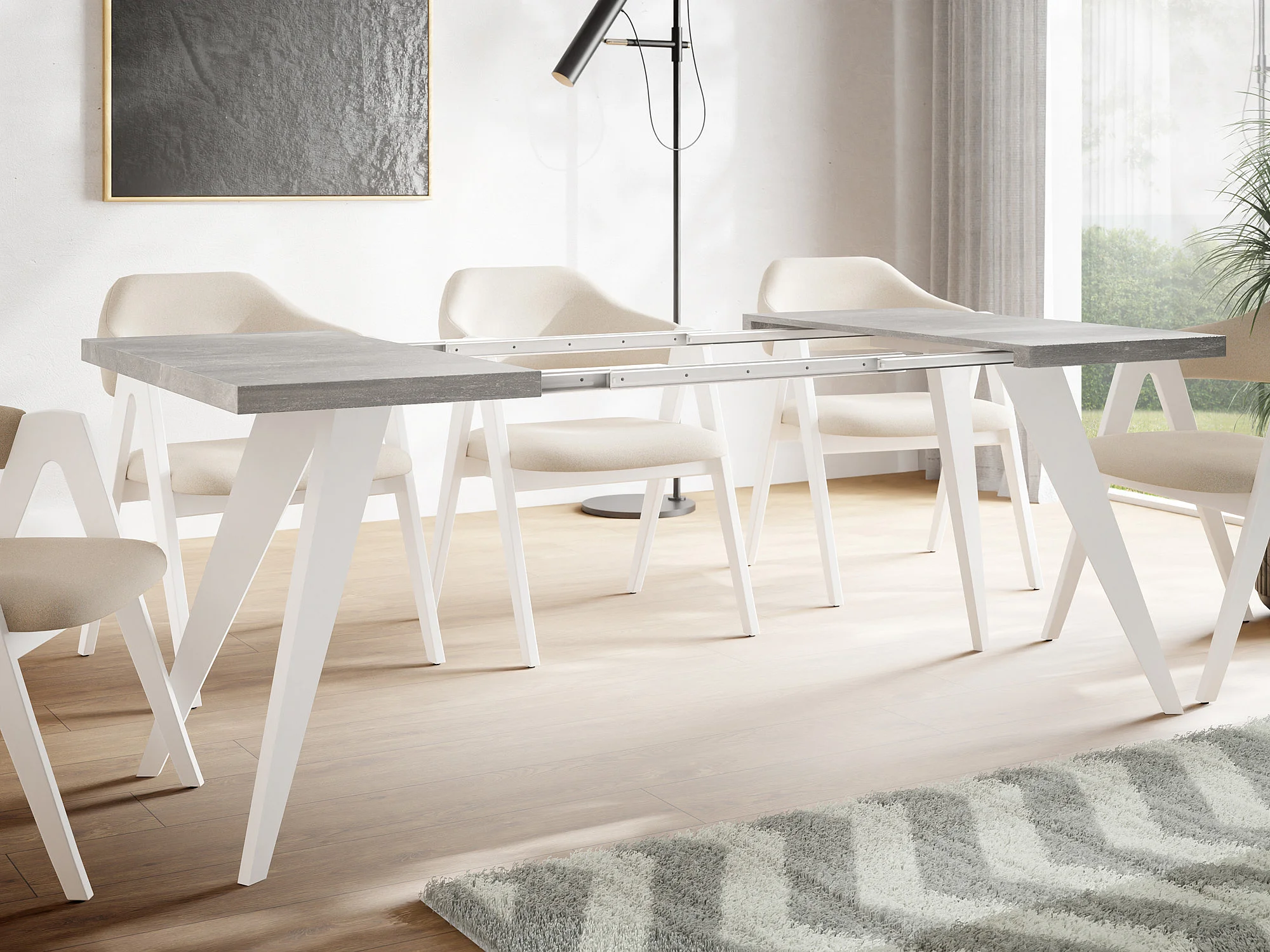 Table à Manger Carrée Extensible Quadro 100-150 cm - Table de Salle à Manger Industrielle avec Pieds Blancs pour 4-6 Personnes - Style Loft - Beton Gris