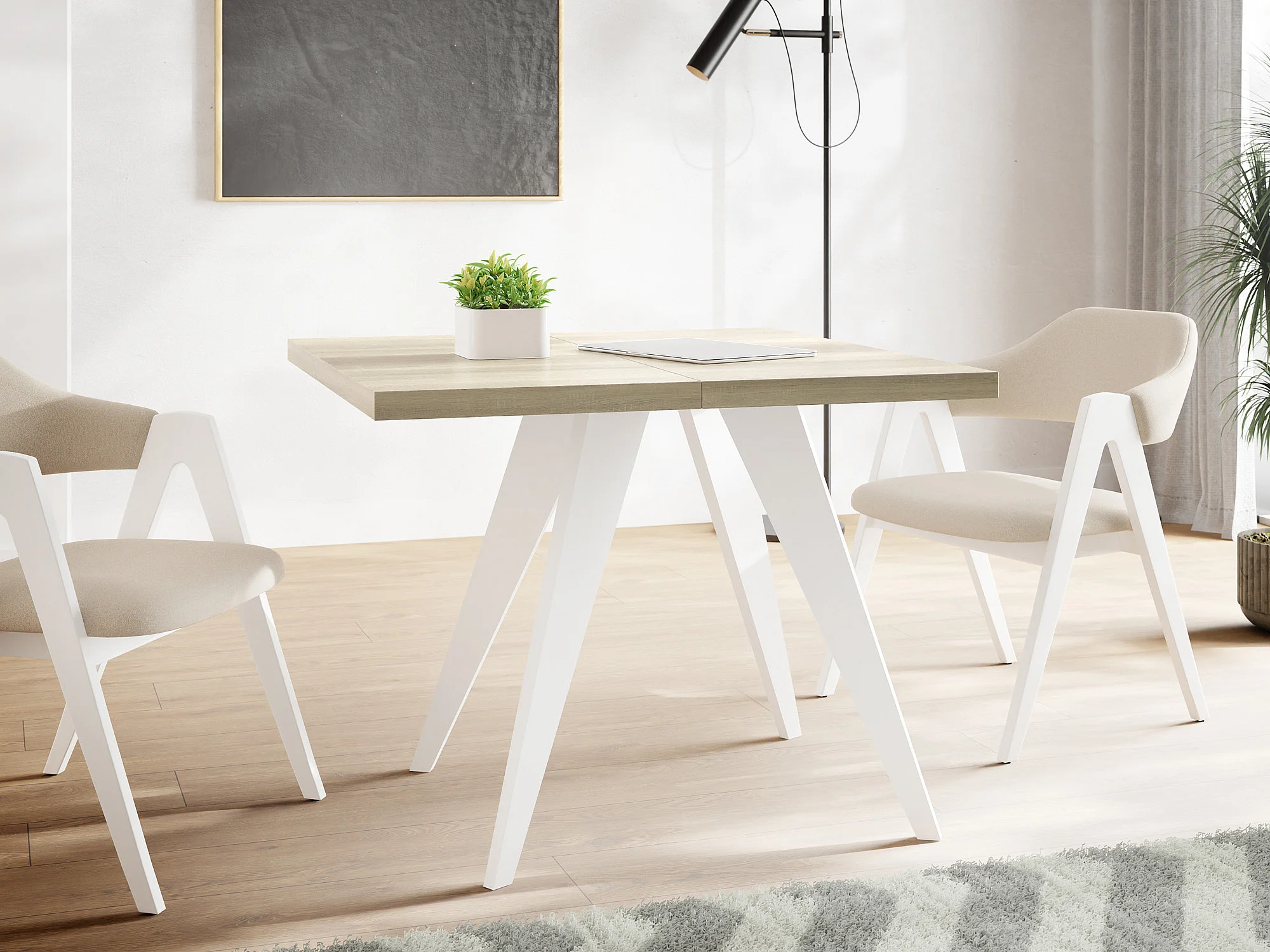 Table à Manger Carrée Extensible Quadro 100-200 cm - Table de Salle à Manger Industrielle avec Pieds Blancs pour 4-8 Personnes - Style Loft - Chêne Sonoma