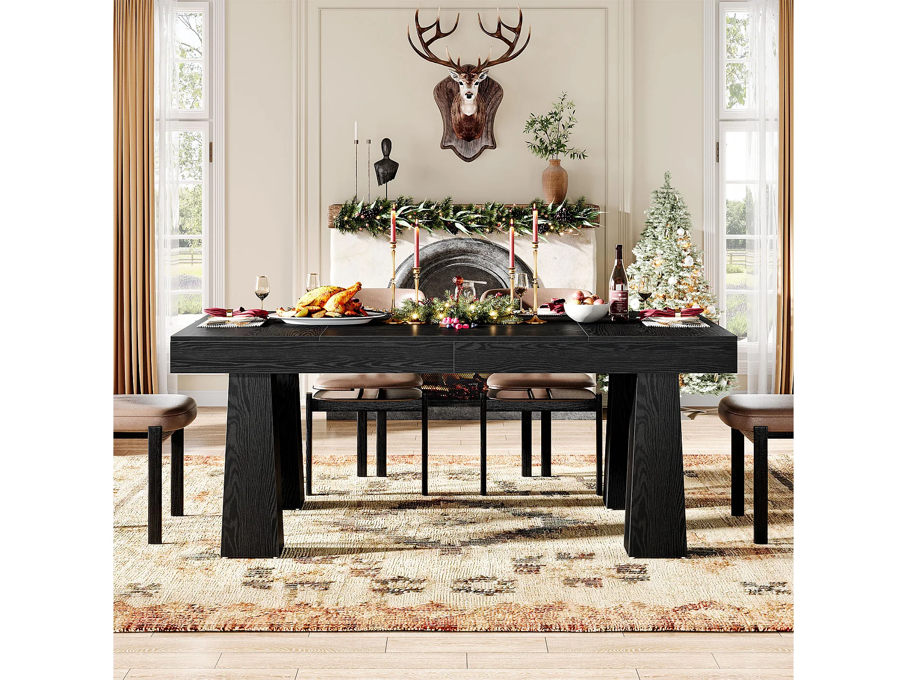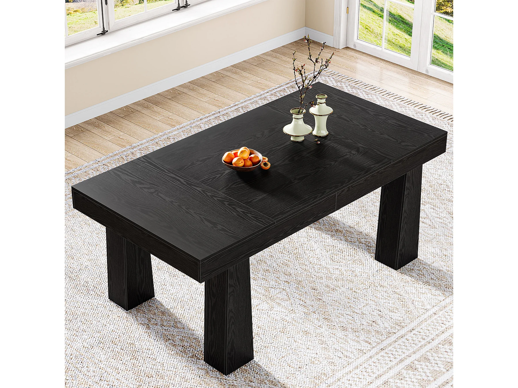 Table à manger de 160 cm, table de cuisine rectangulaire moderne avec pieds fuselés robustes, table de salle à manger professionnelle noire