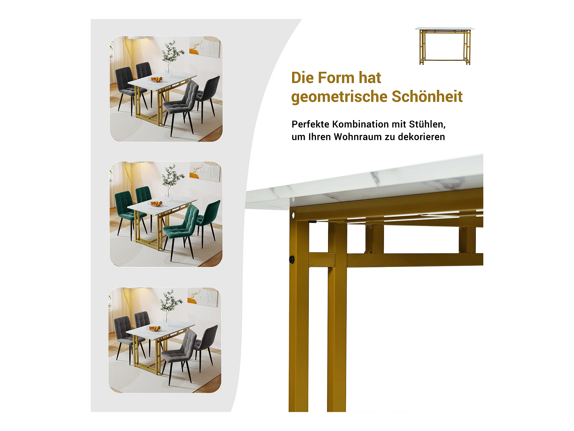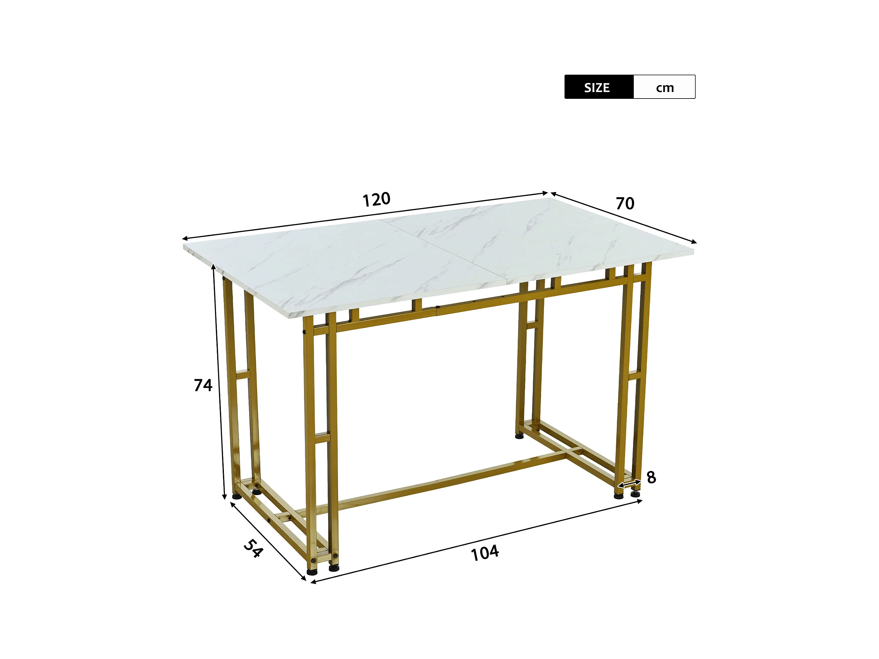 Table à manger de luxe légère 120x70x74 cm rectangulaire avec pieds métalliques - Blanc et Or