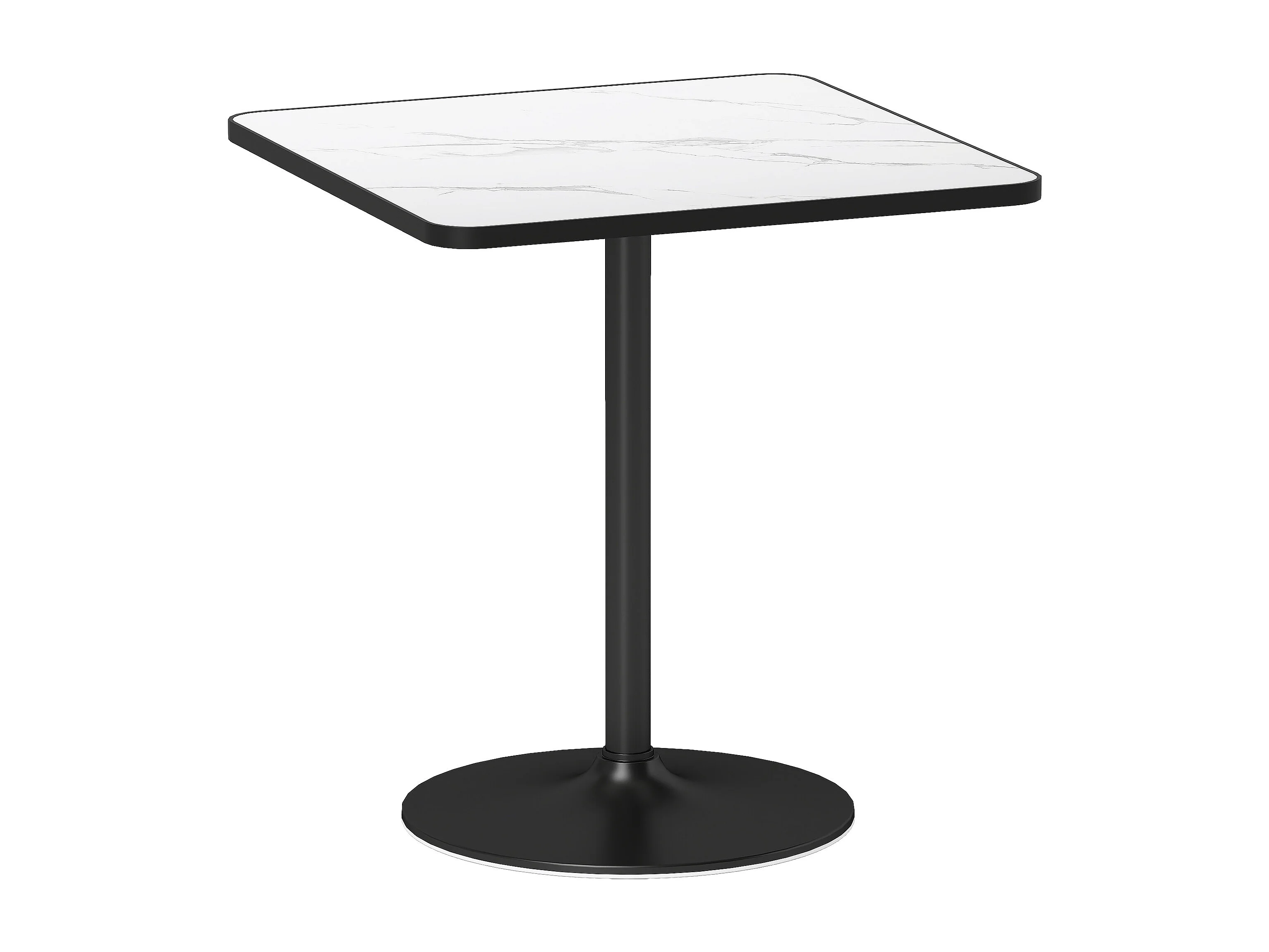 Table à manger design bistrot 4 personnes - table bistrot - piètement rond métal noir plateau effet marbre blanc