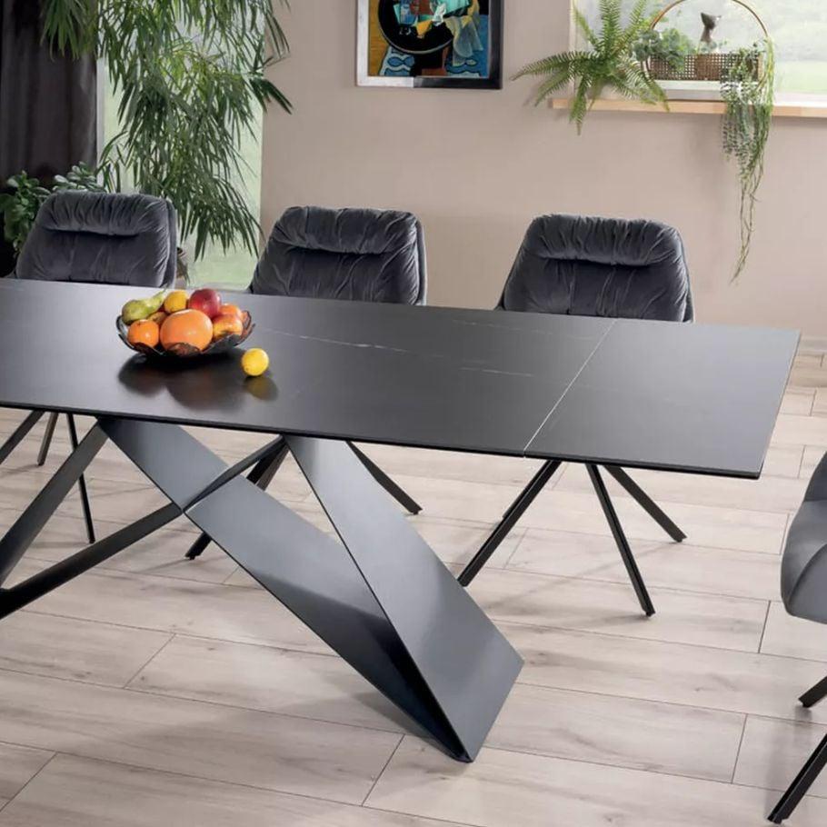 Table à manger design extensible céramique et métal 160cm Sahara noir Holly