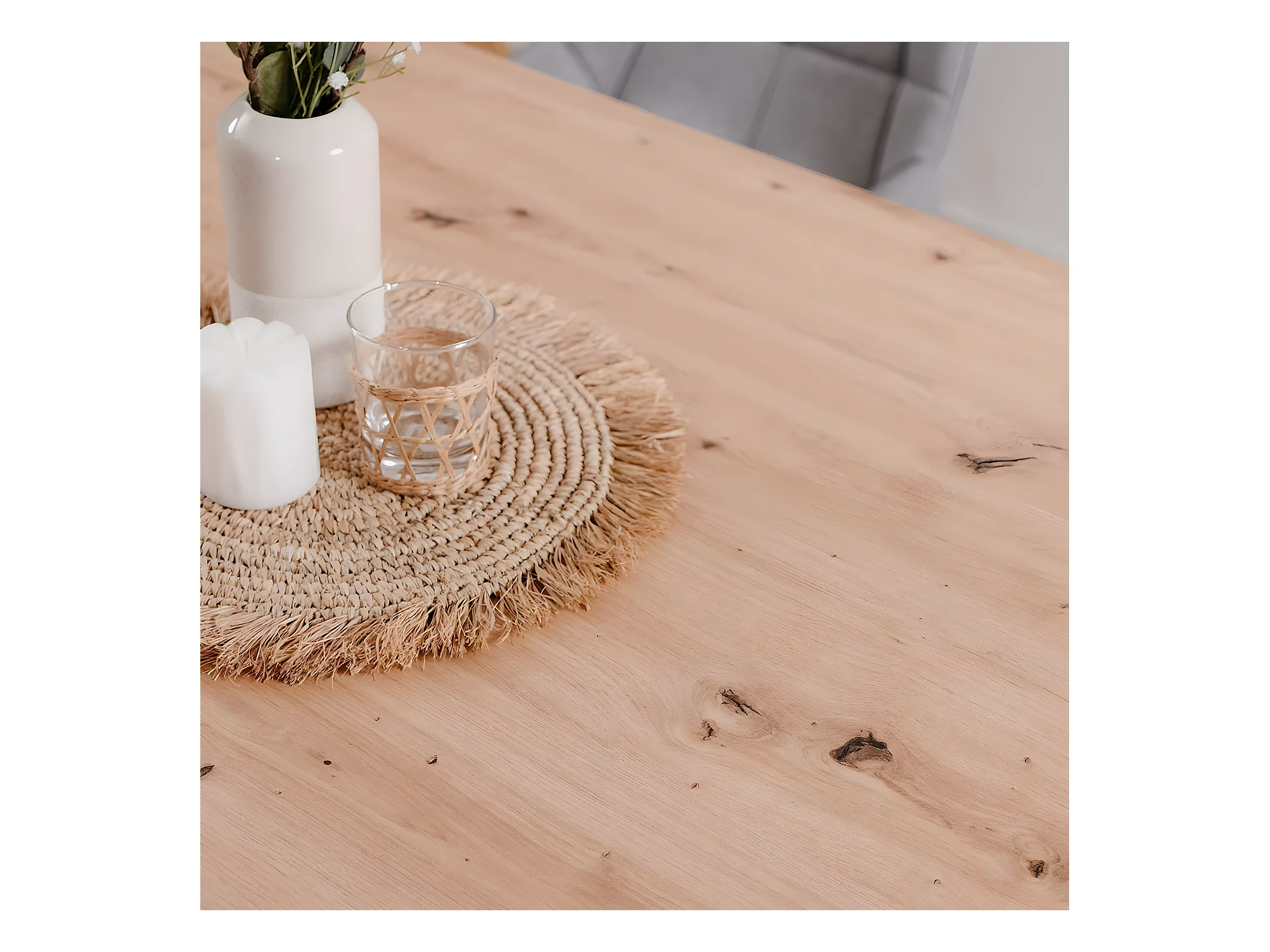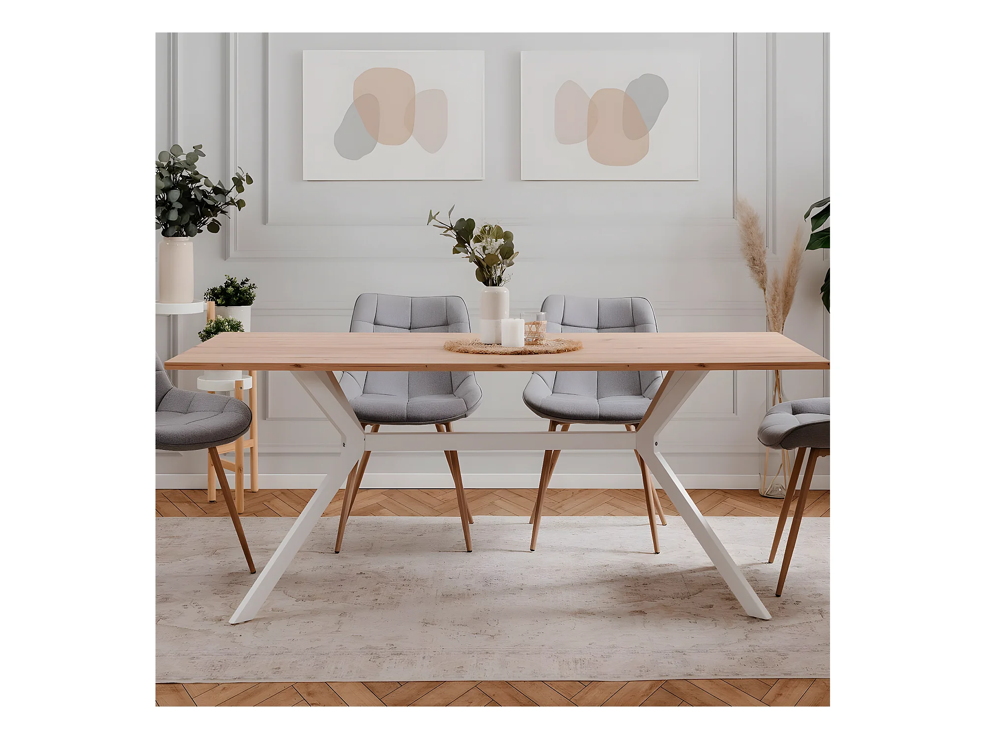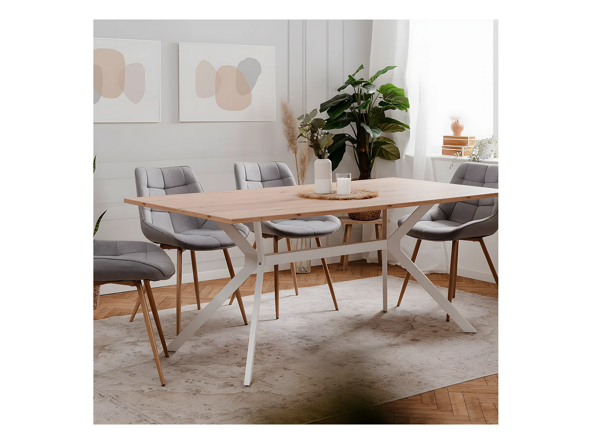 Table à manger effet chêne clair, piètement blanc 180 cm - Velia