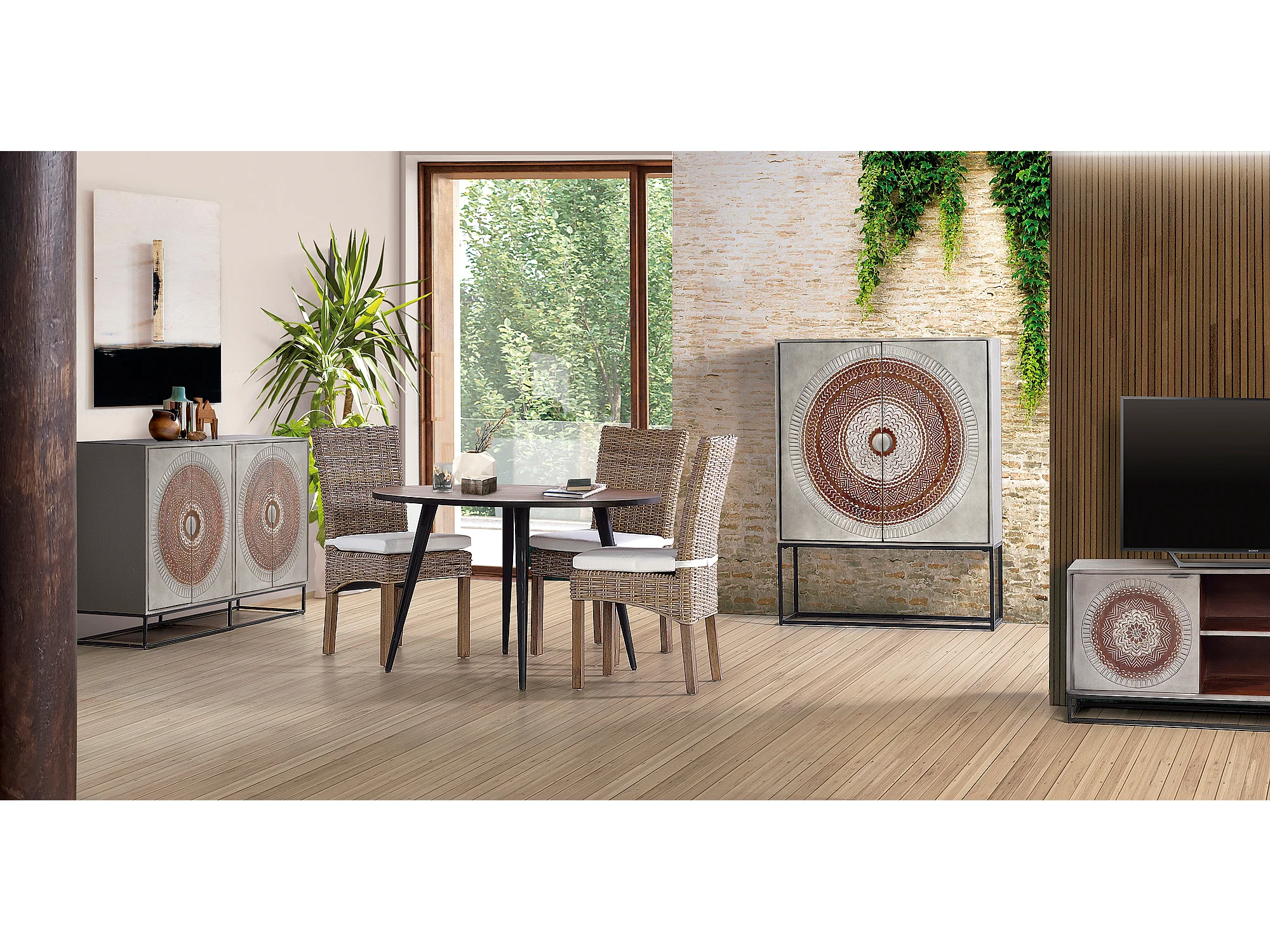 Table à manger en bois d'acacia et pieds en métal
