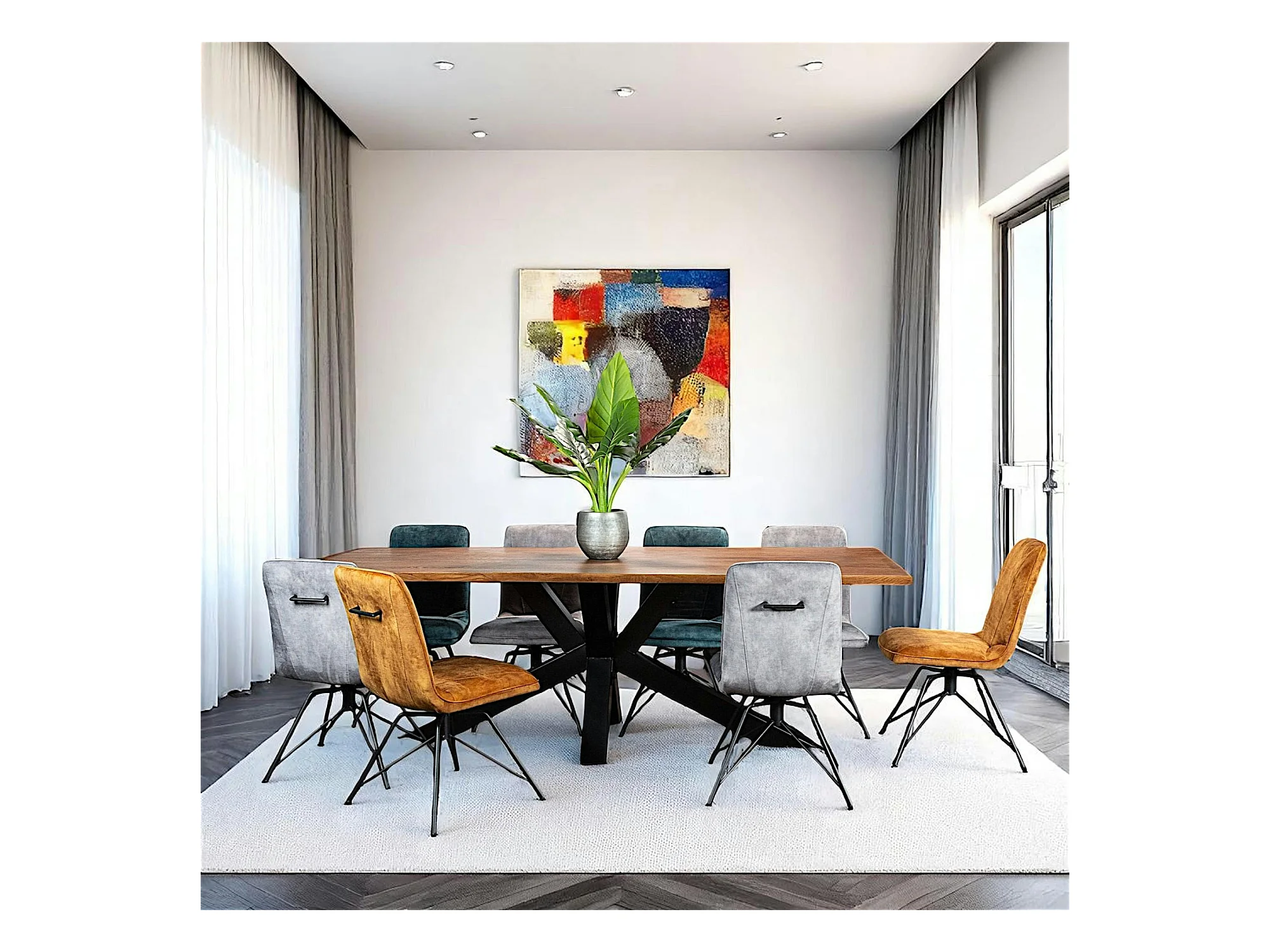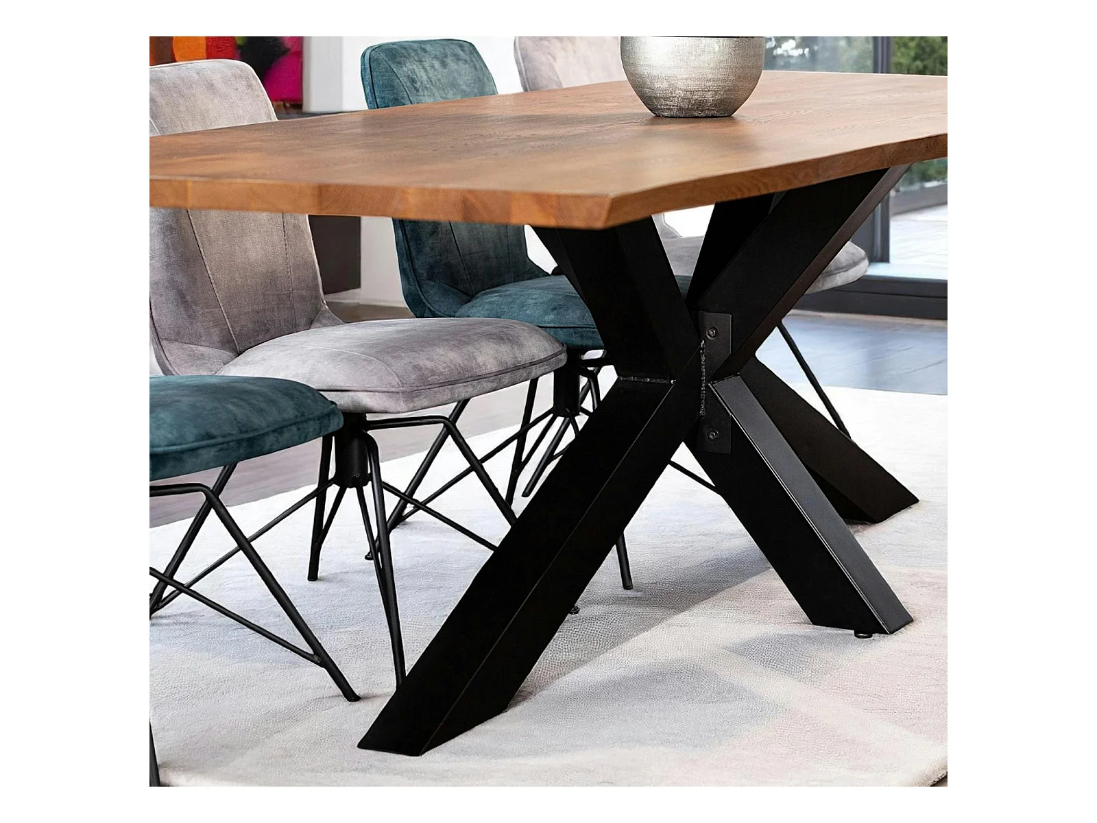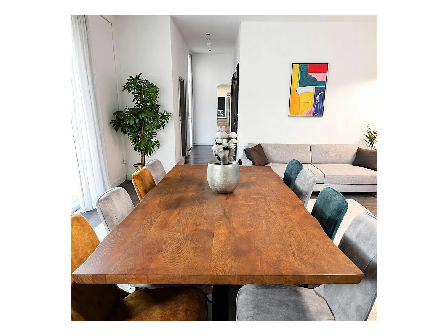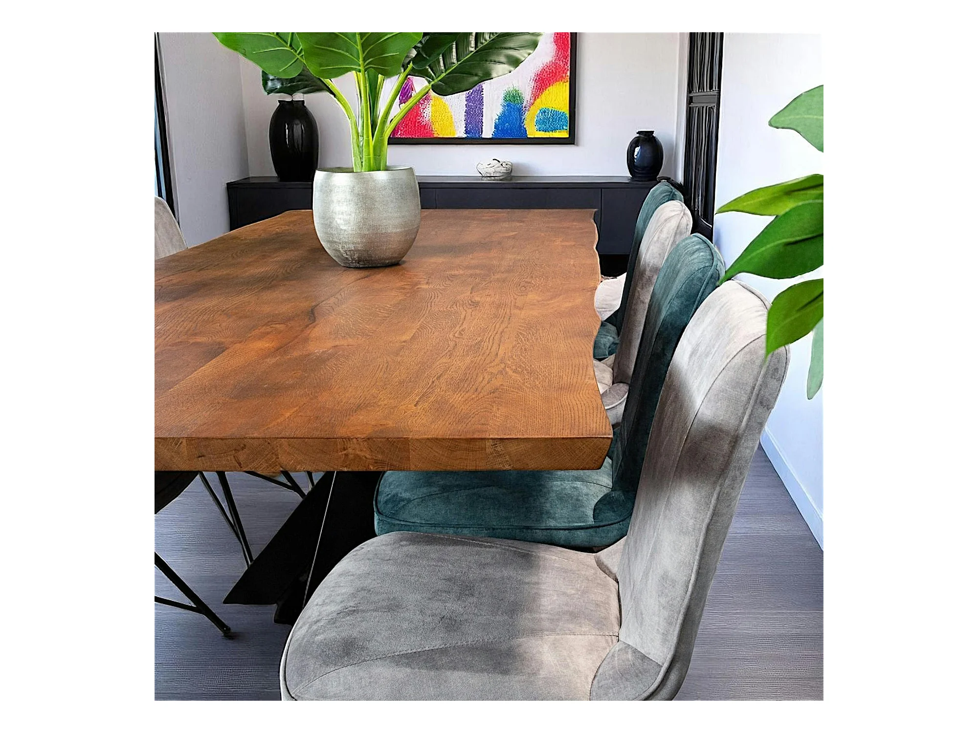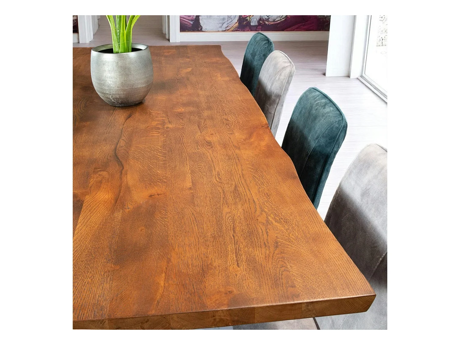 Table à manger en bois de chêne bordures naturelles 240 cm OKA