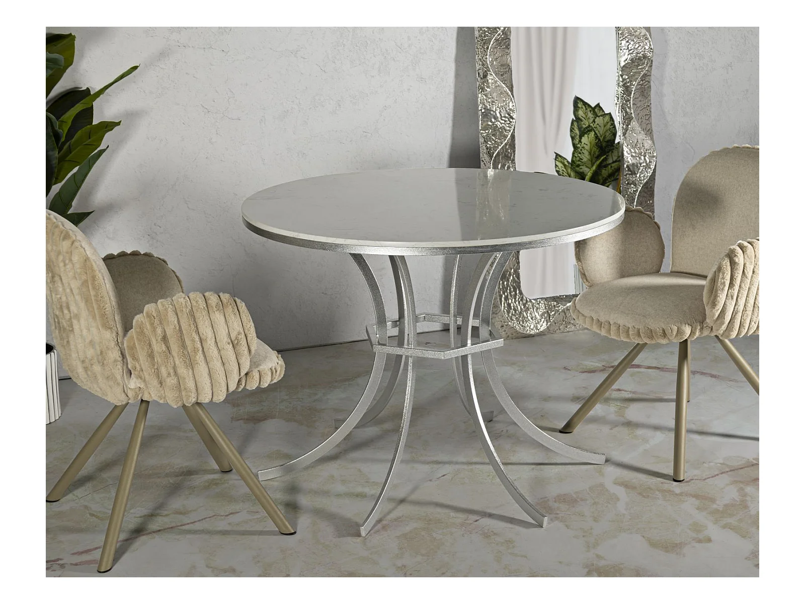 Table à manger en métal argenté et marbre, ø 100x76,5 cm