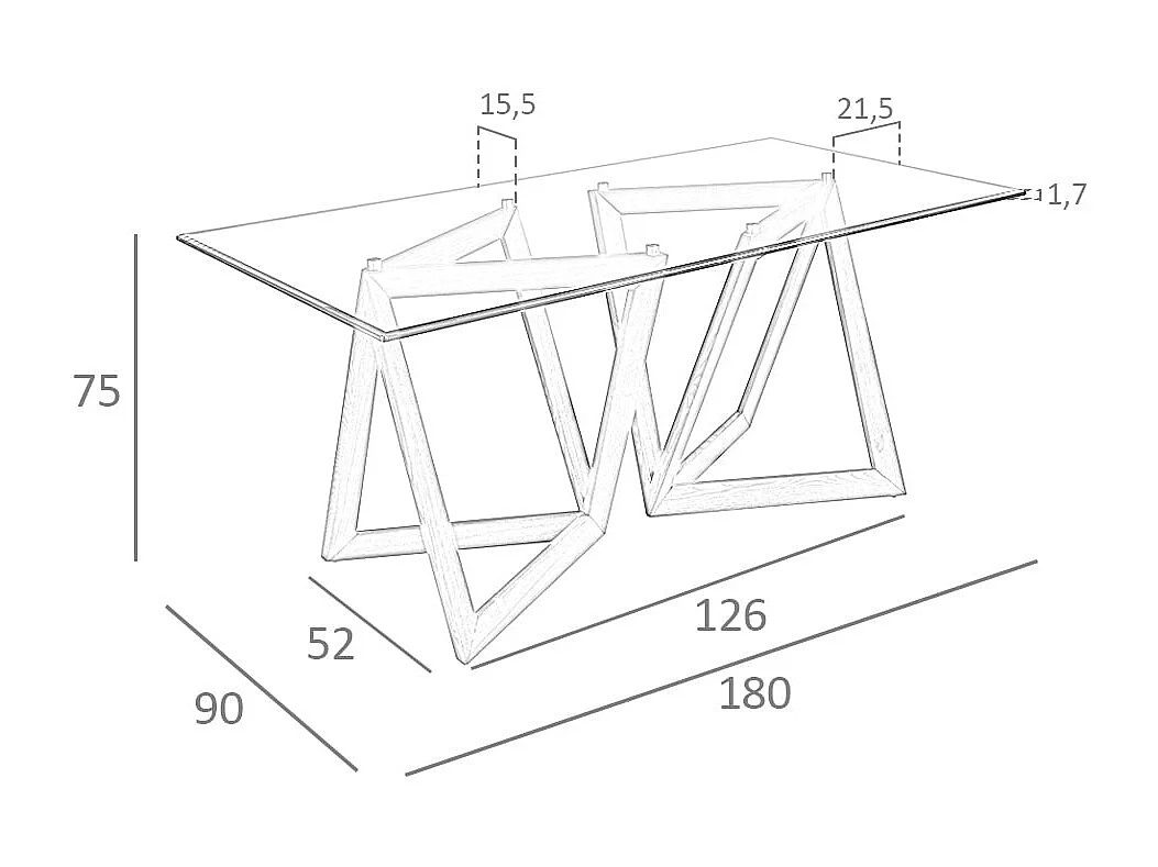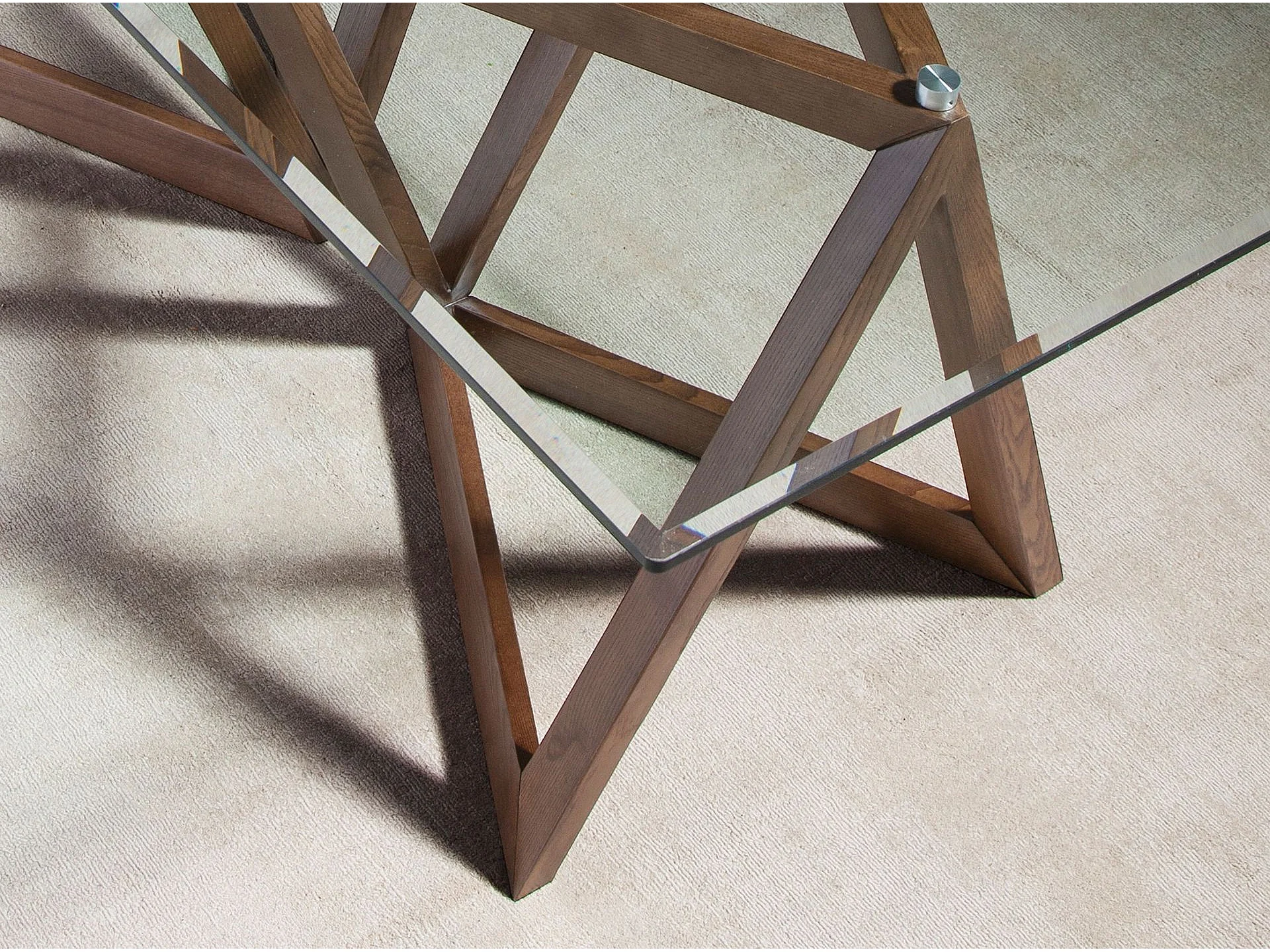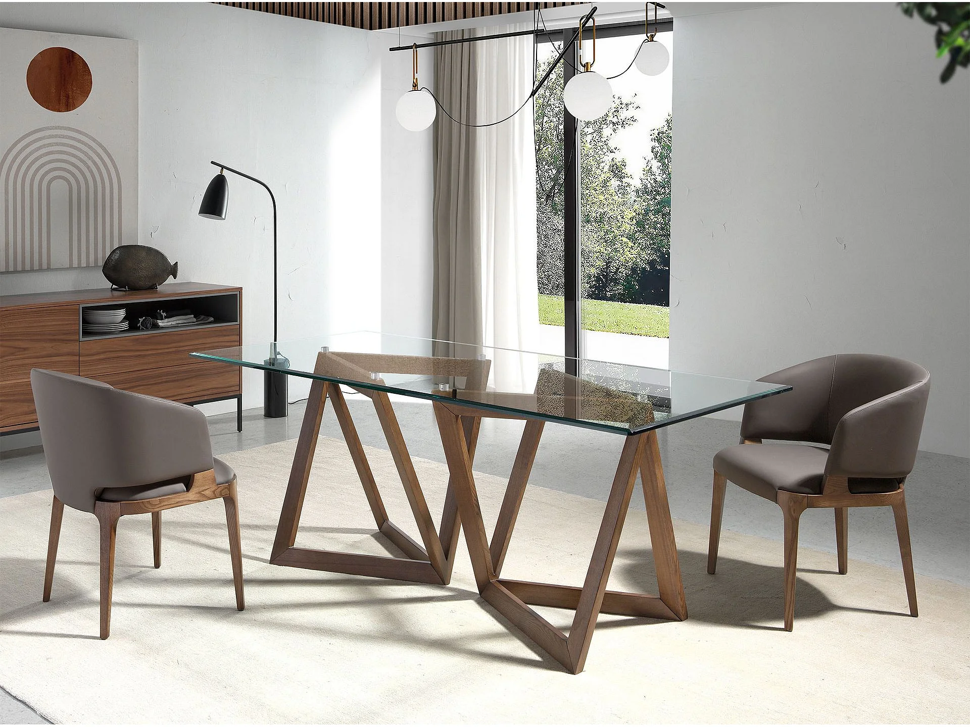 Table à manger rectangulaire verre trempé et noyer 1102 ANGEL CERDA