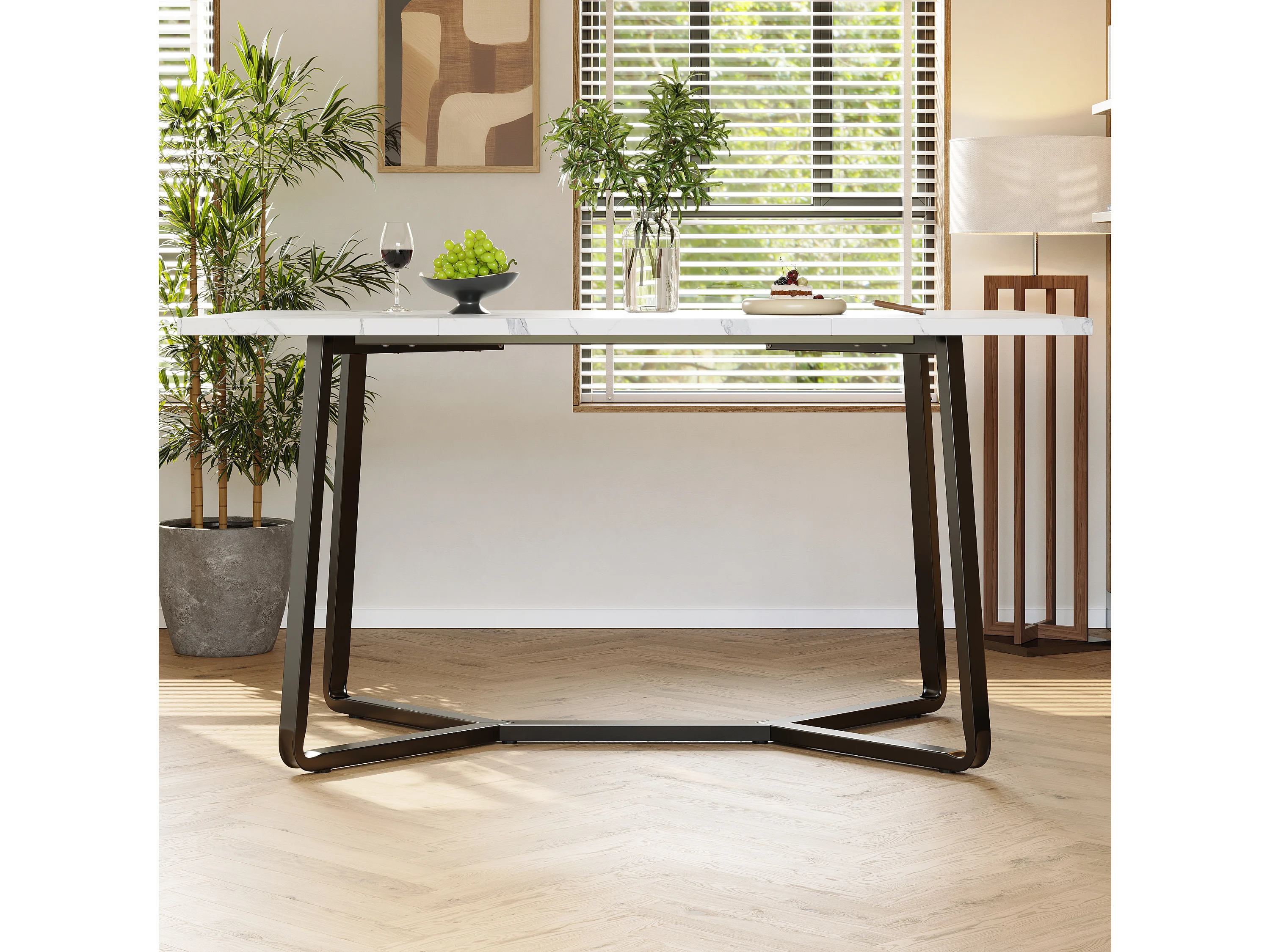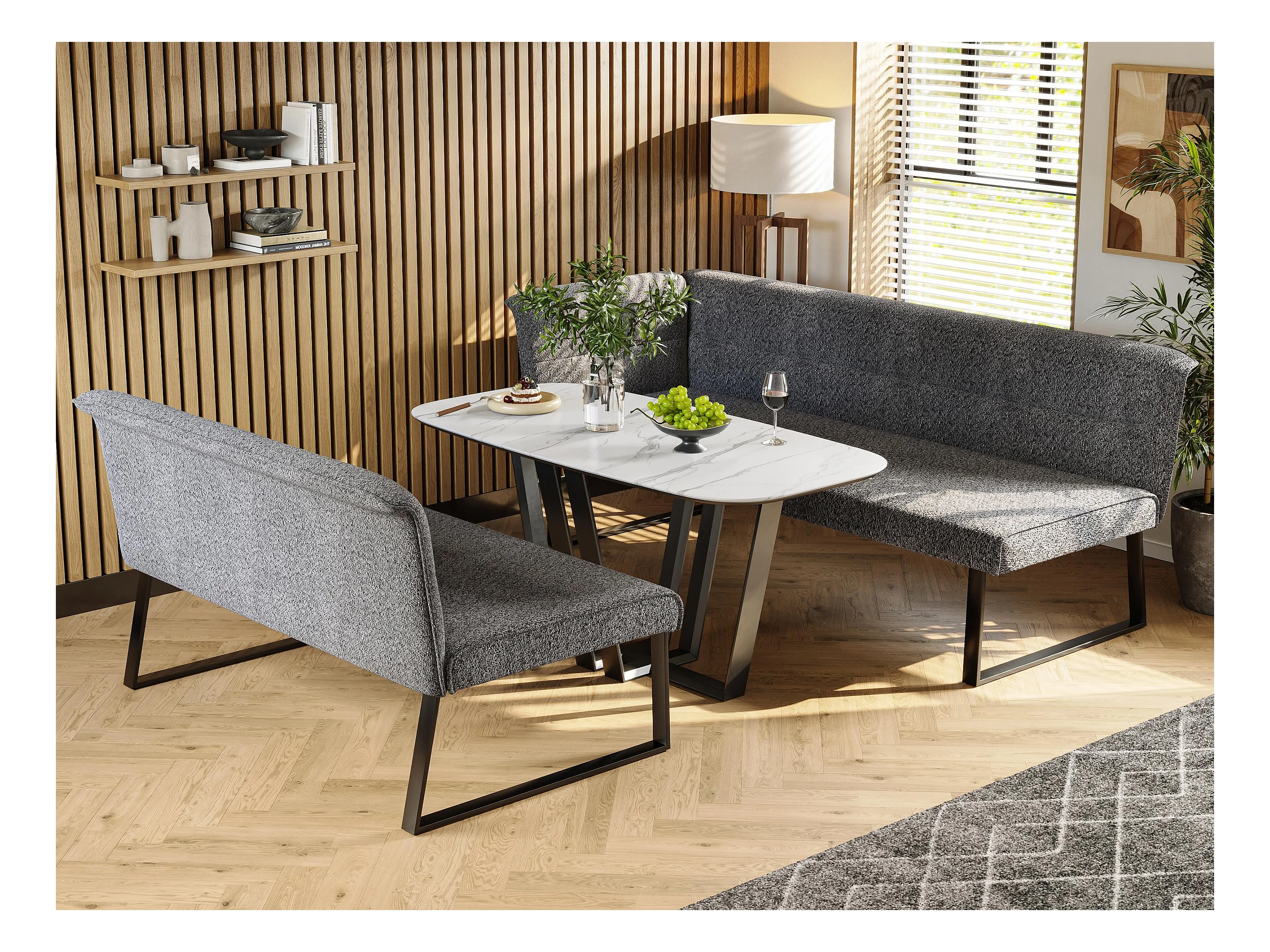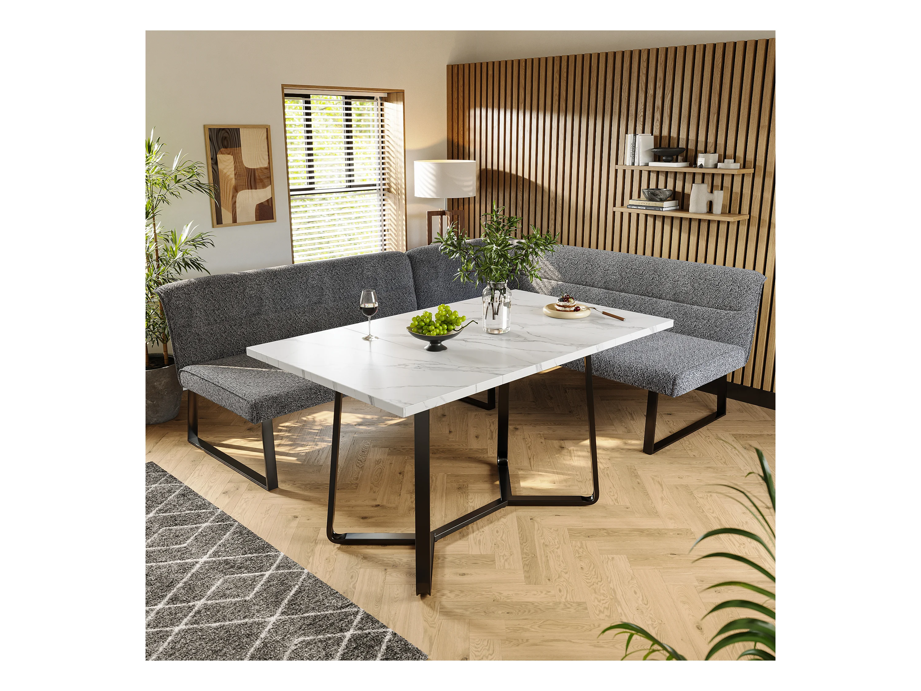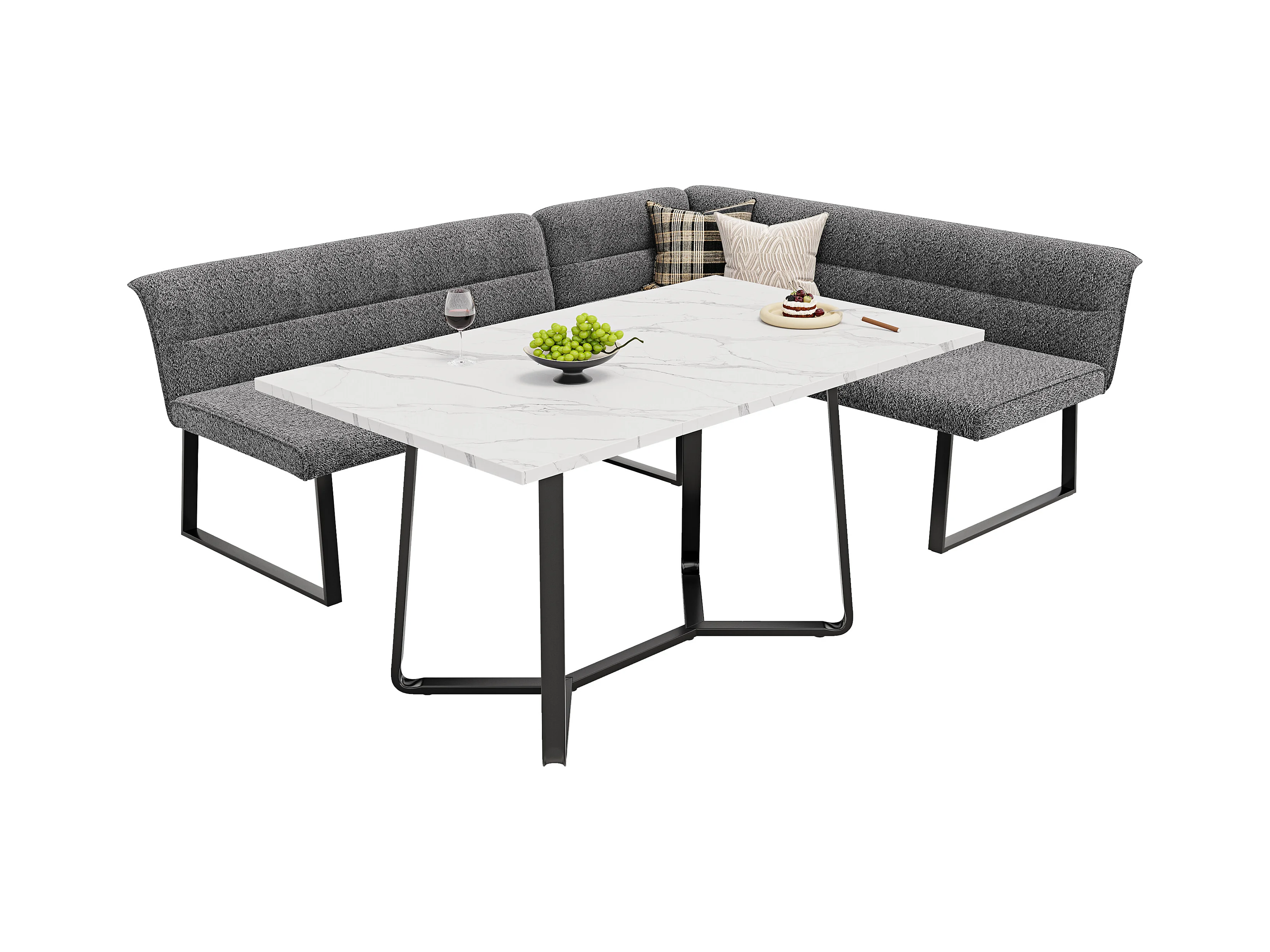 Table à manger et canapé en velours - Plateau de table en marbre artificiel - MDF - 4 à 6 personnes - Blanc + Gris