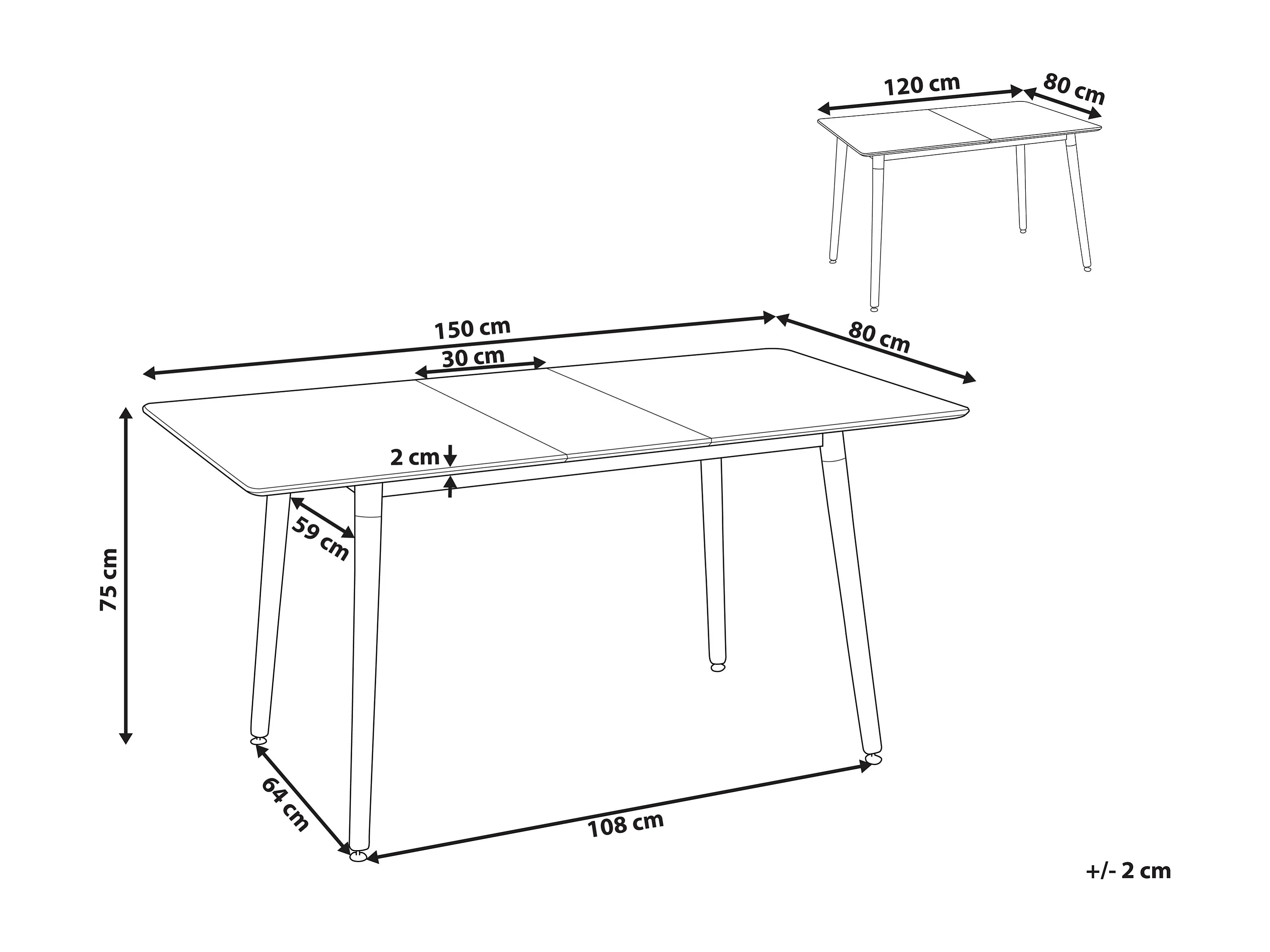 Table de salle à manger extensible MIRABEL Blanc 120/150 cm 80 cm