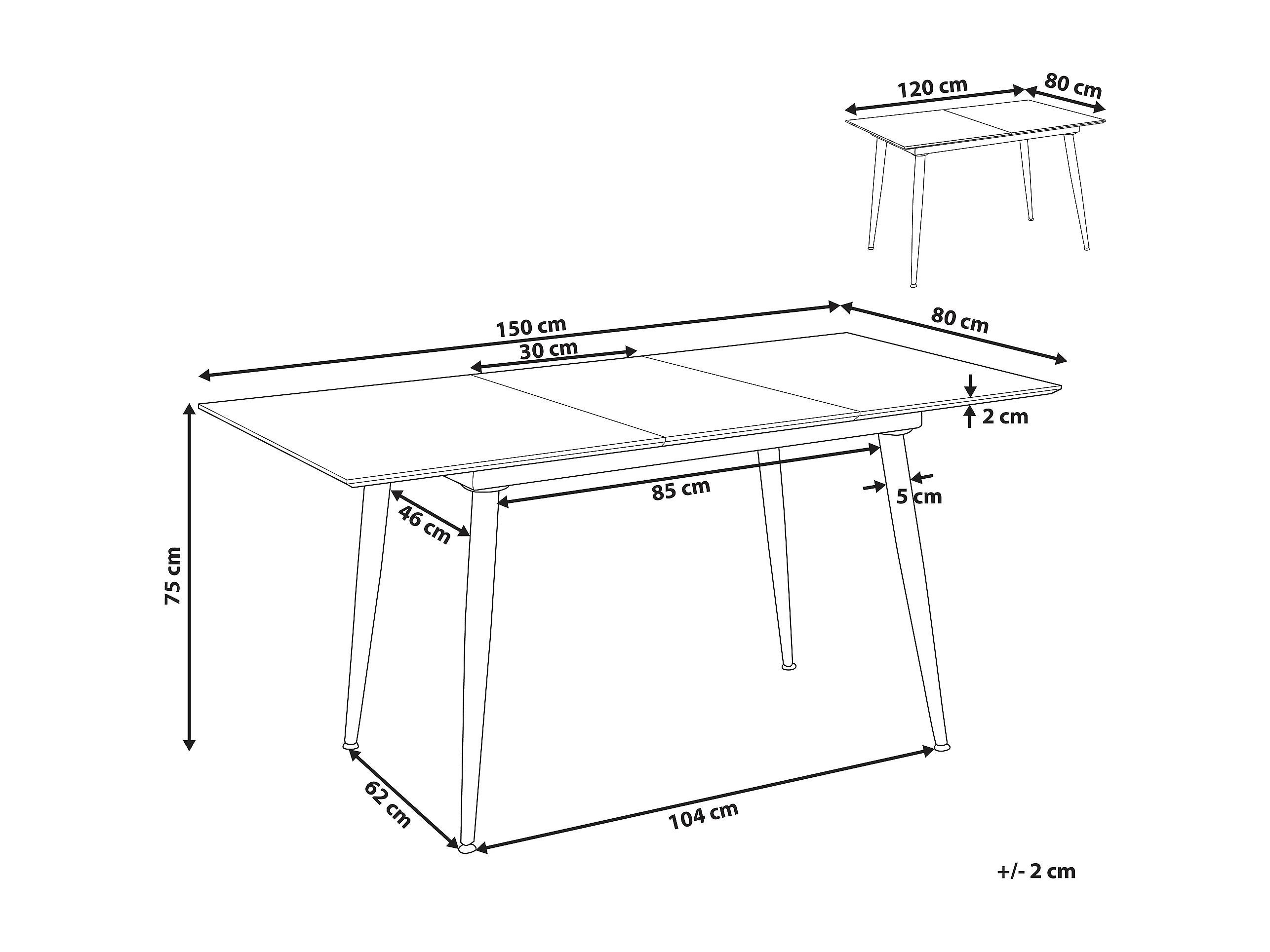Table de repas EFTALIA Marbre blanc 120/150 cm 80 cm