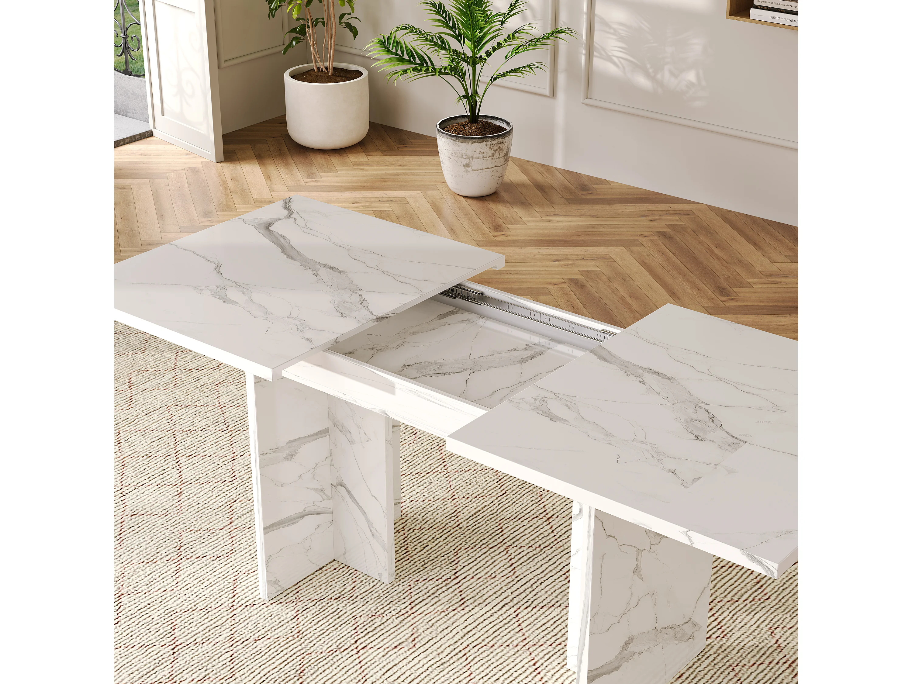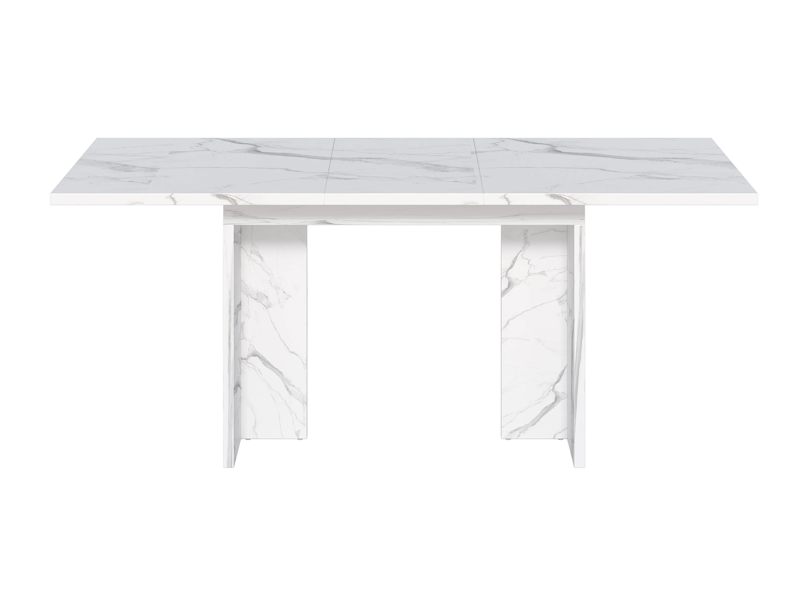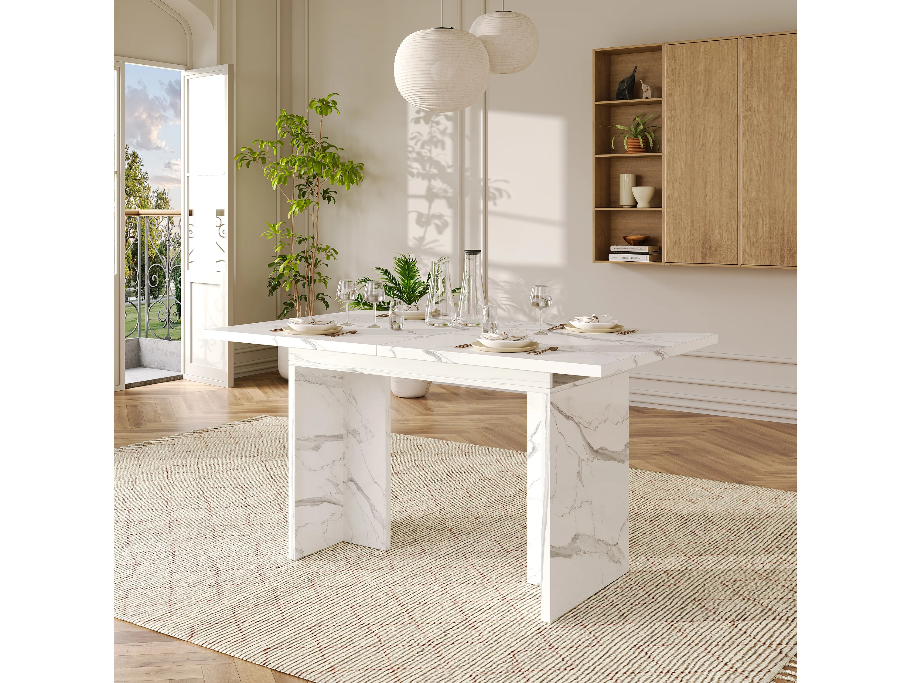Table à manger extensible 140/180 x 80 cm pour 6 à 8 personnes - Effet marbre blanc
