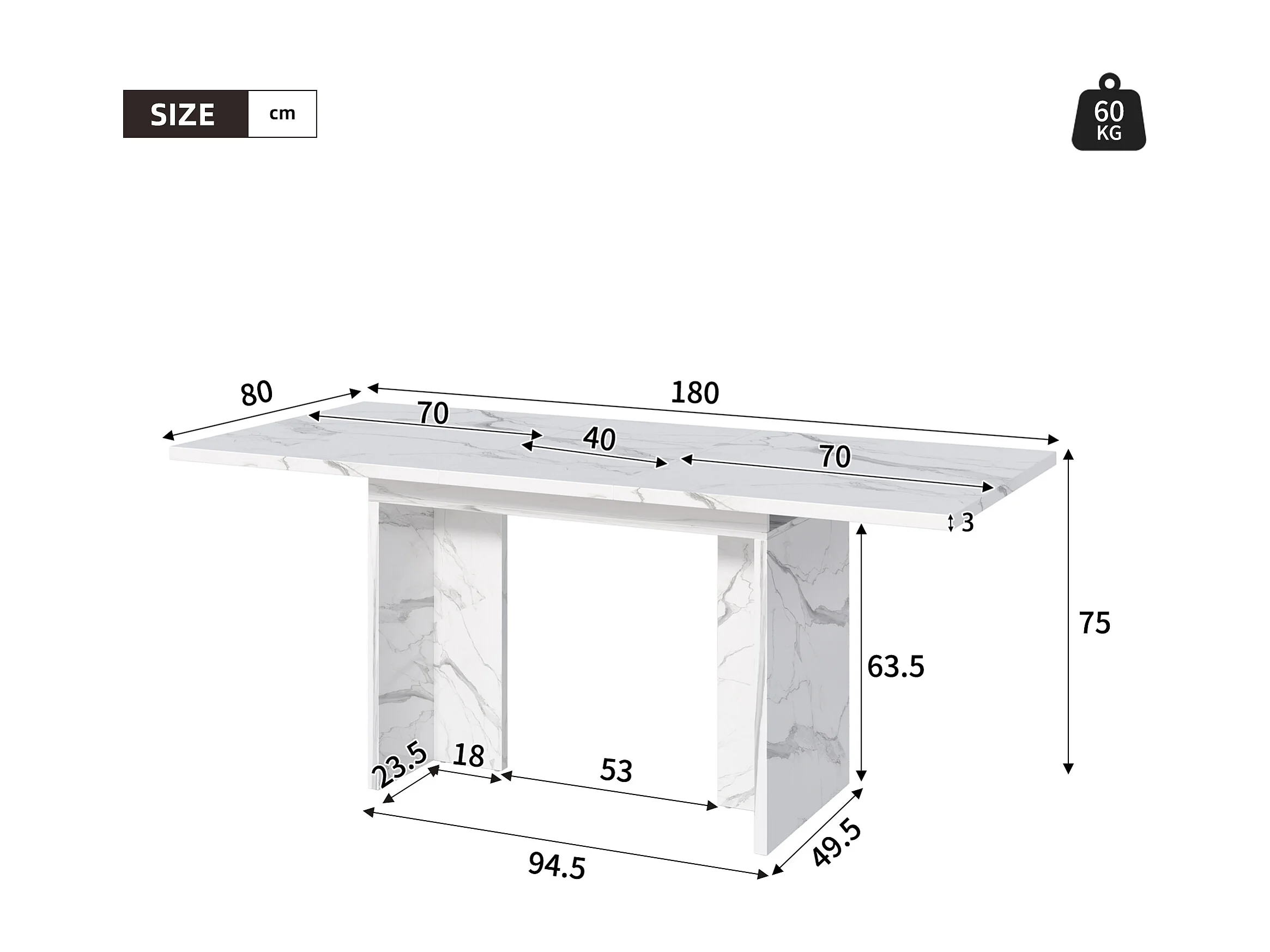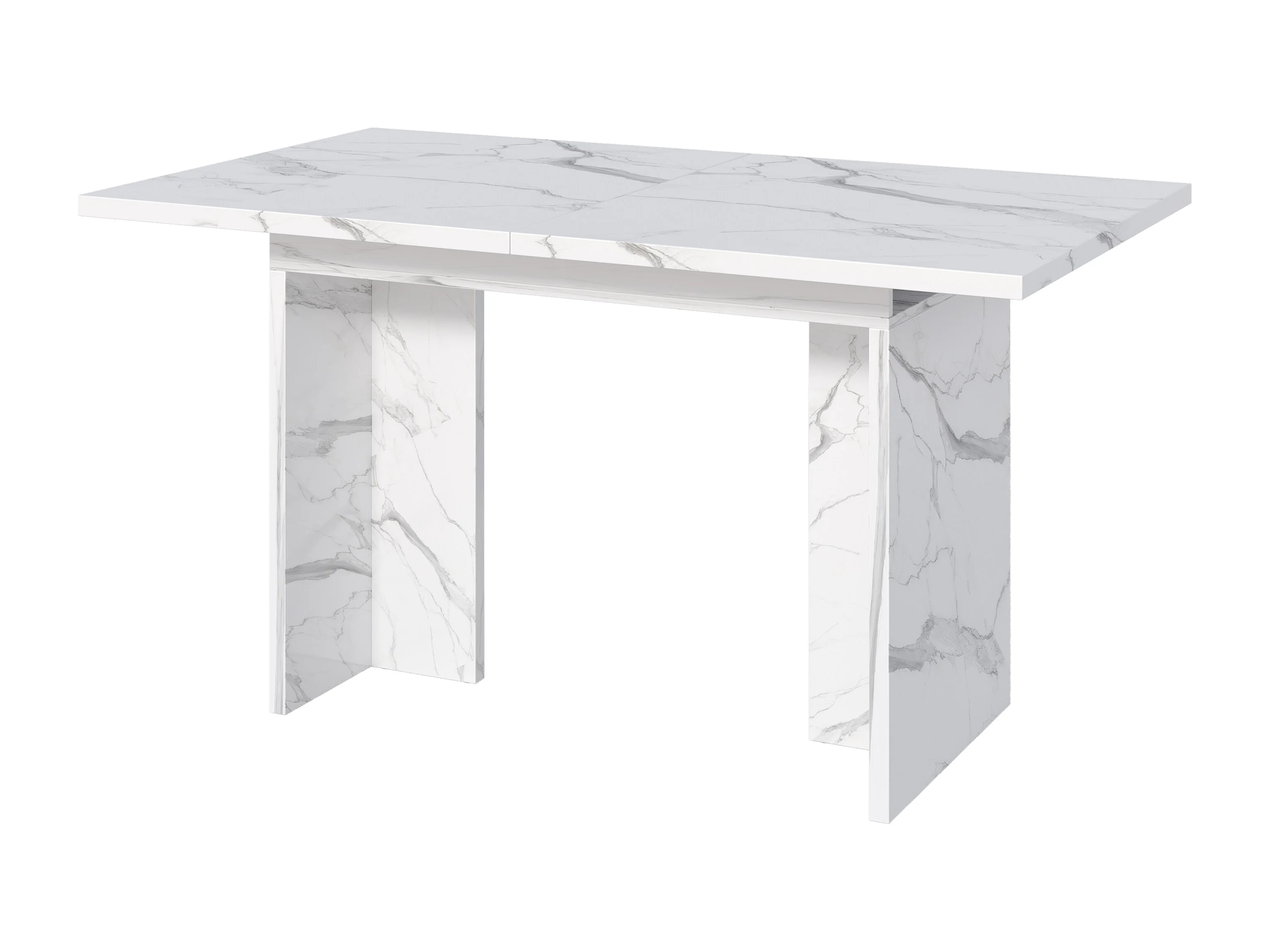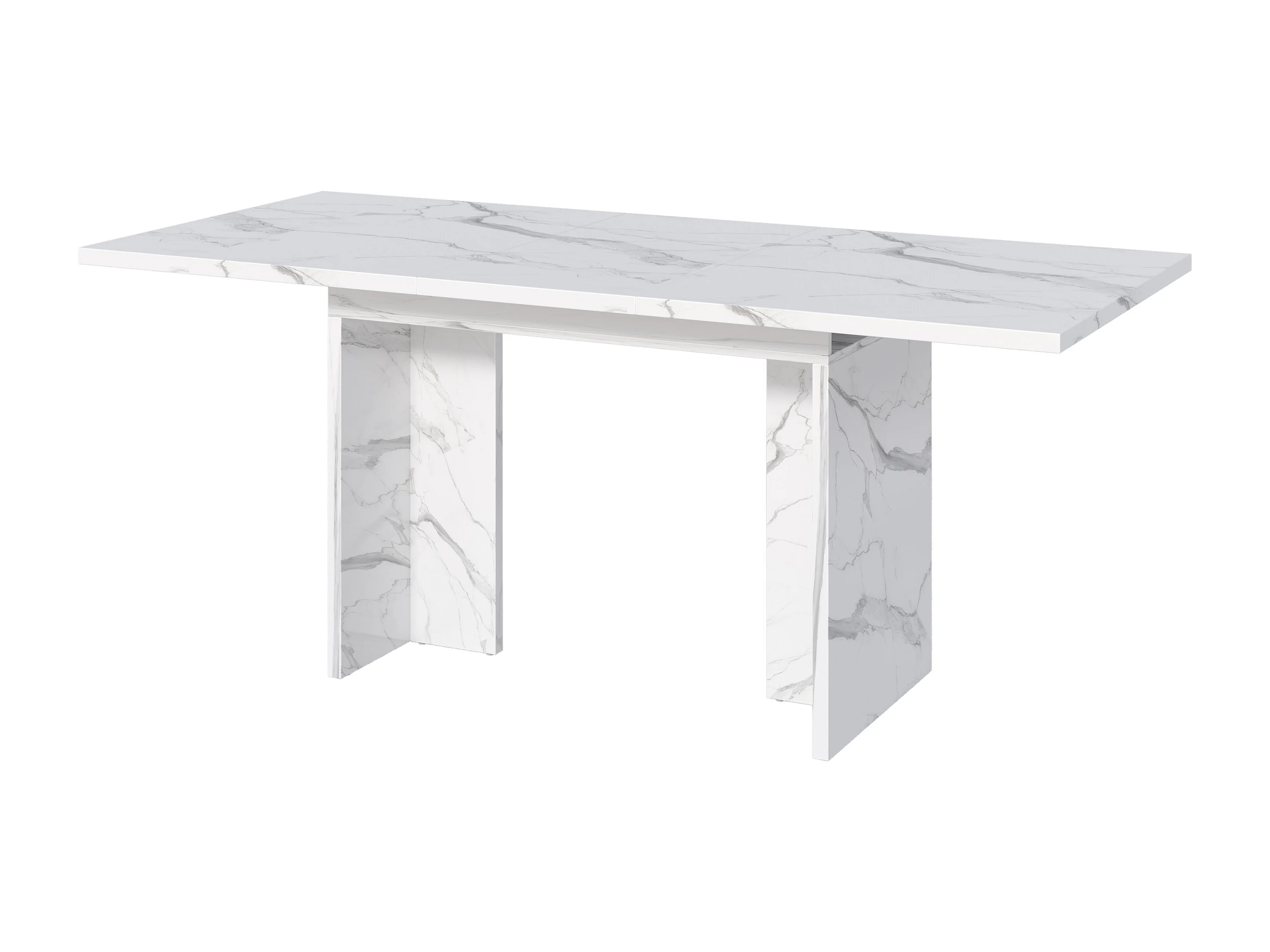 Table à manger extensible 140/180 x 80 cm pour 6 à 8 personnes - Effet marbre blanc