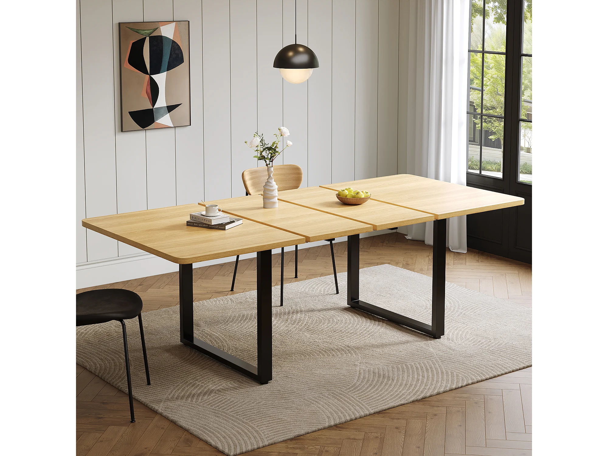 Table à manger extensible 140/180x220x90 cm - idéale pour 6 à 10 personnes - pieds en métal - Style moderne - Naturel