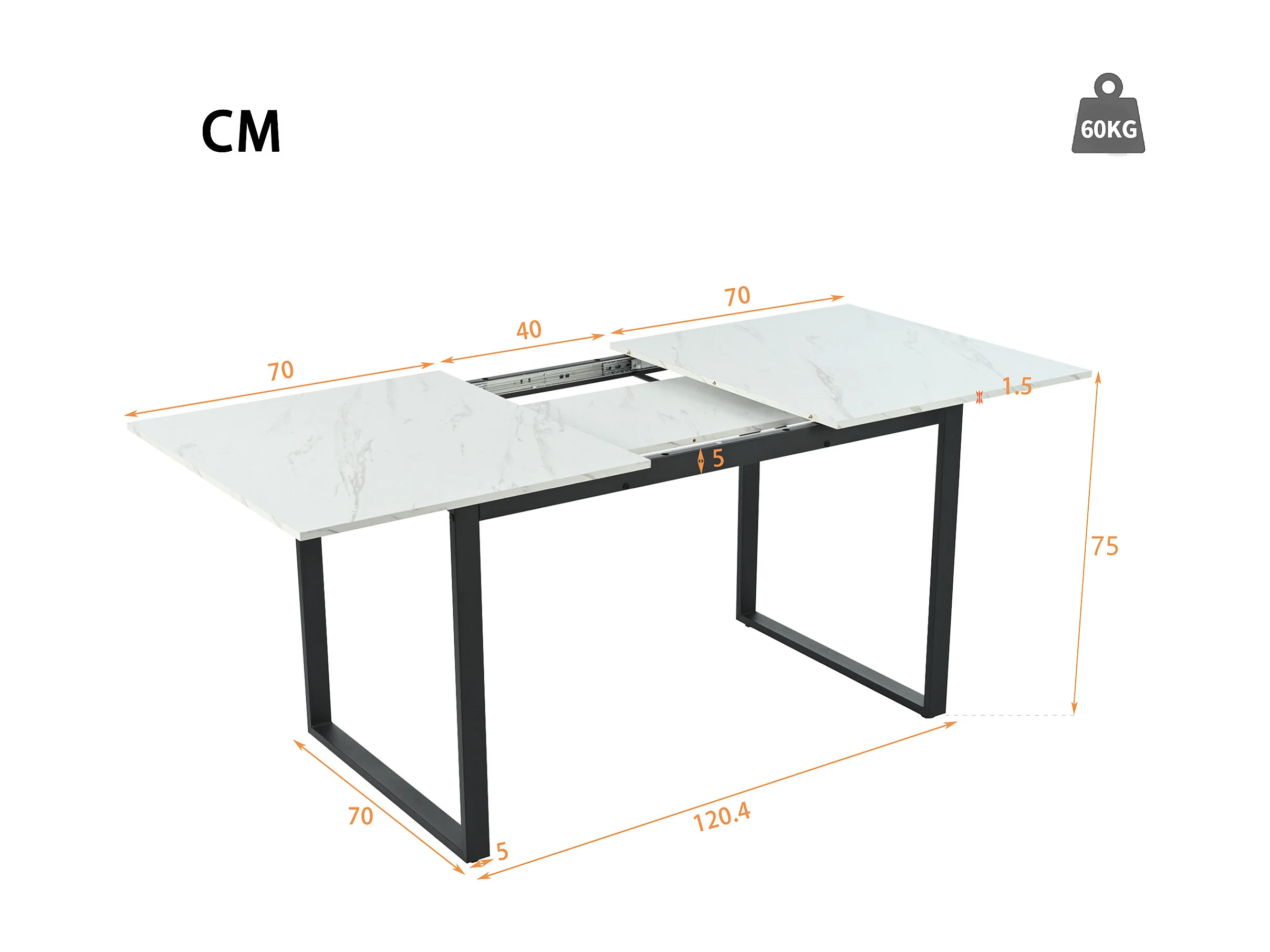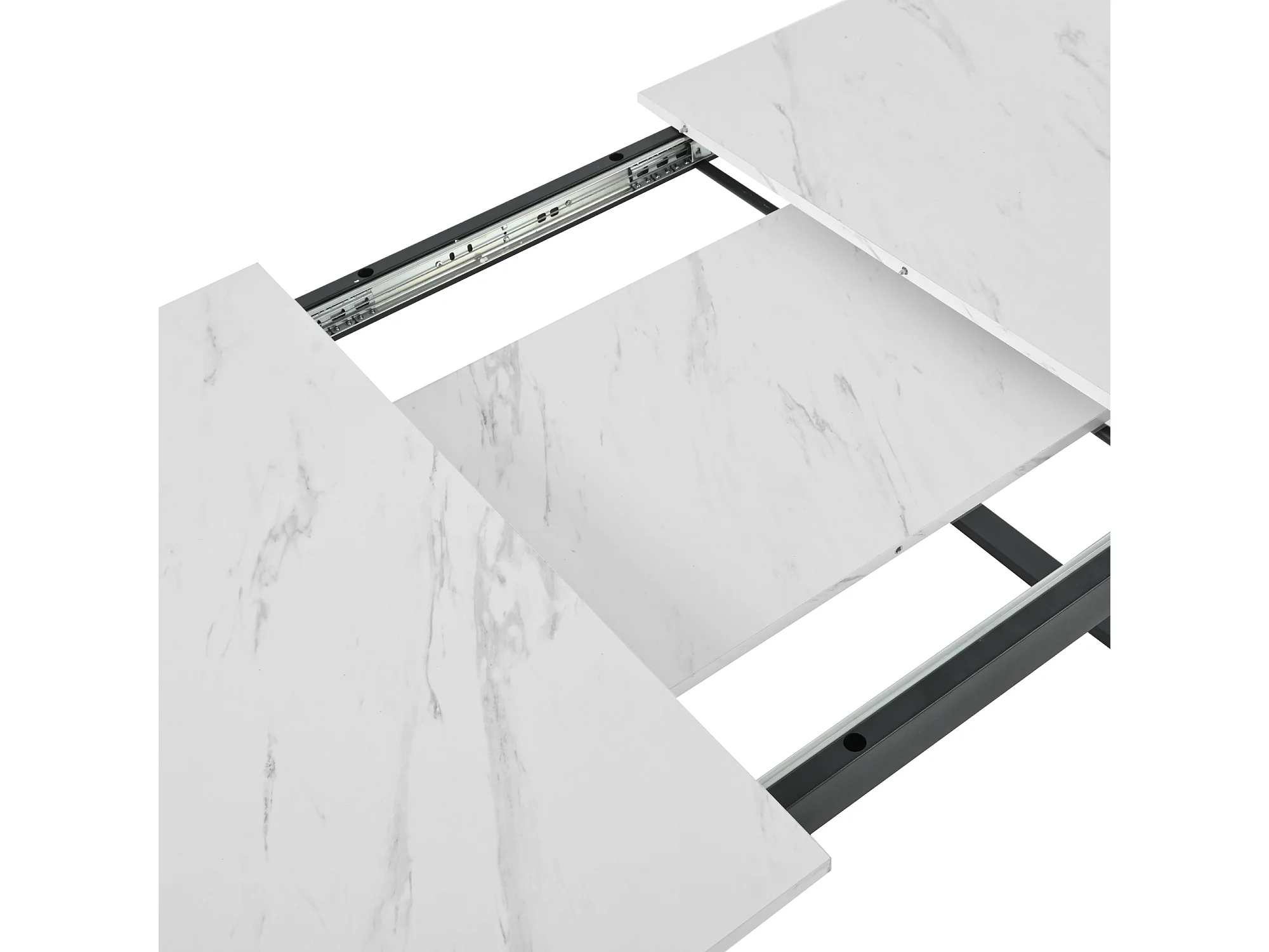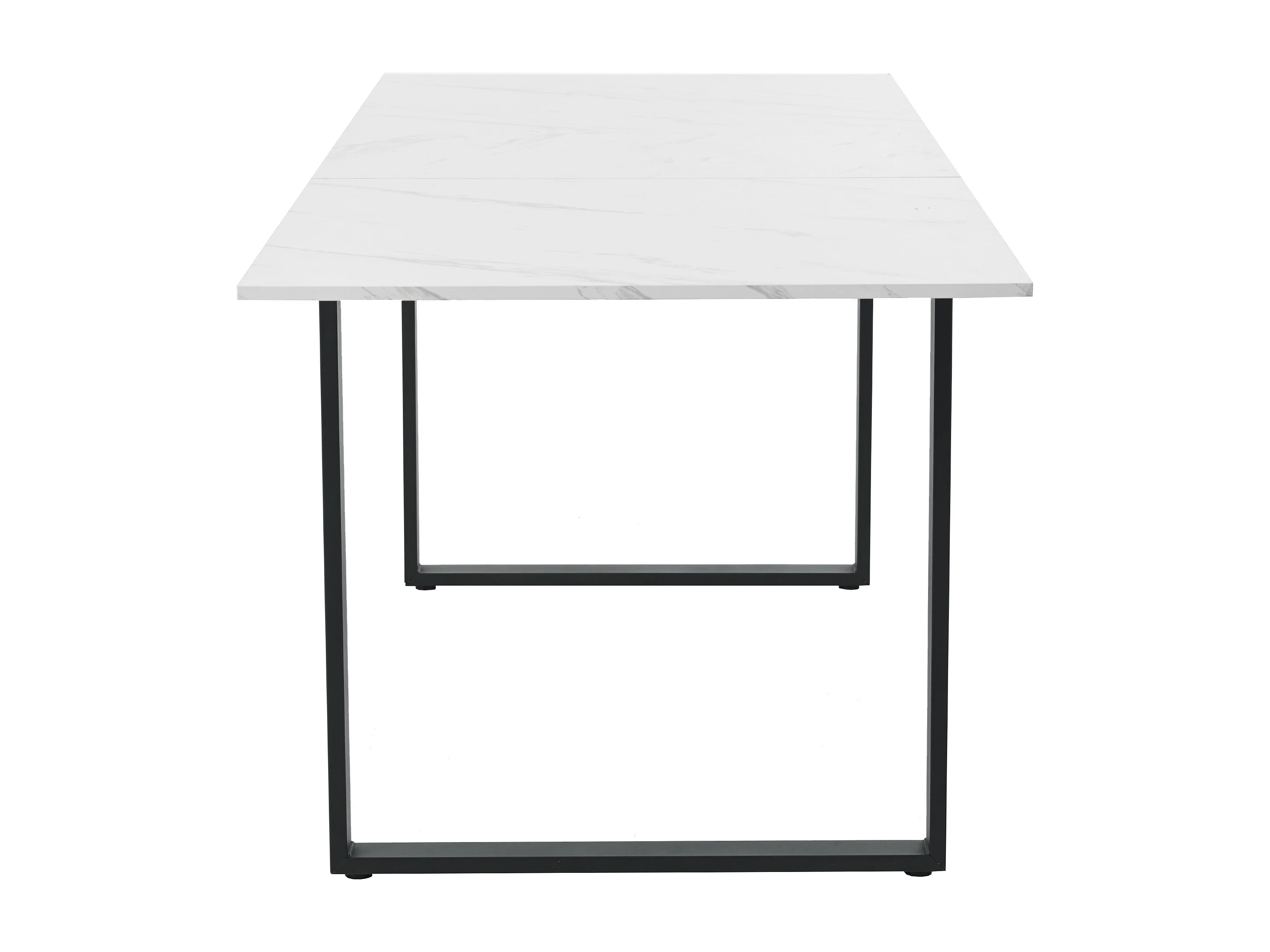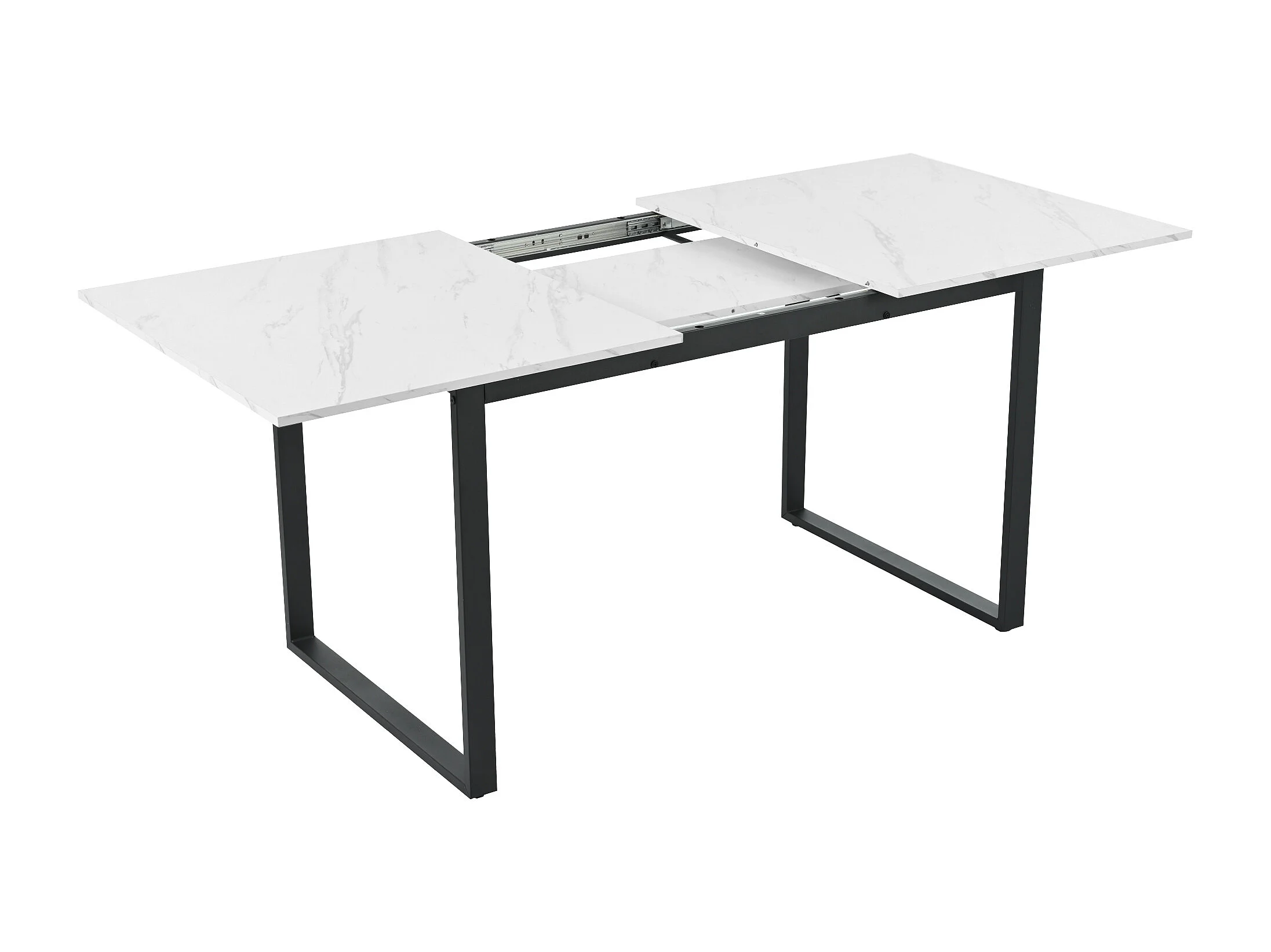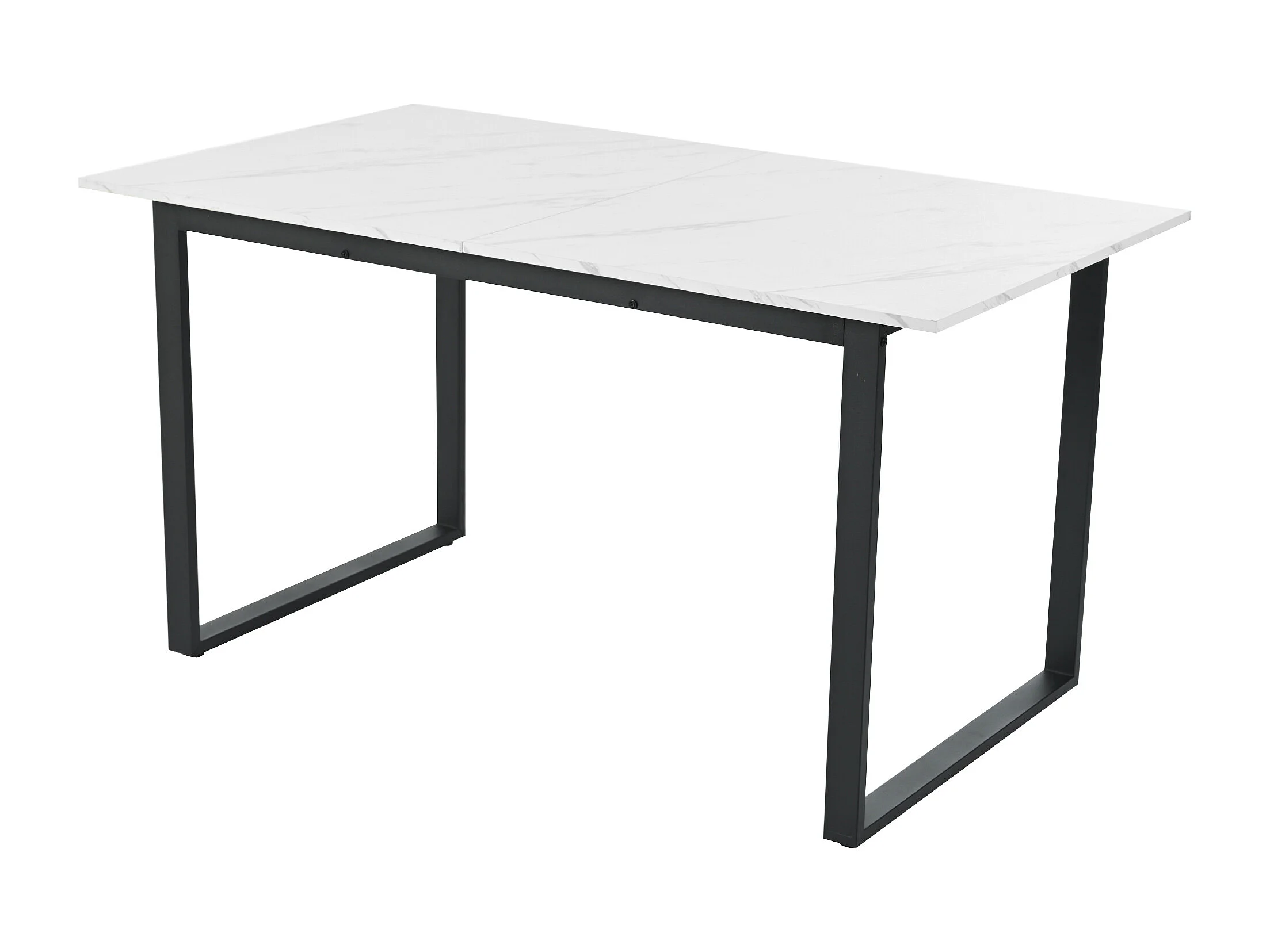 Table à manger extensible 140/180x80 - Pieds en métal et tubes carrés - Effet marbre blanche