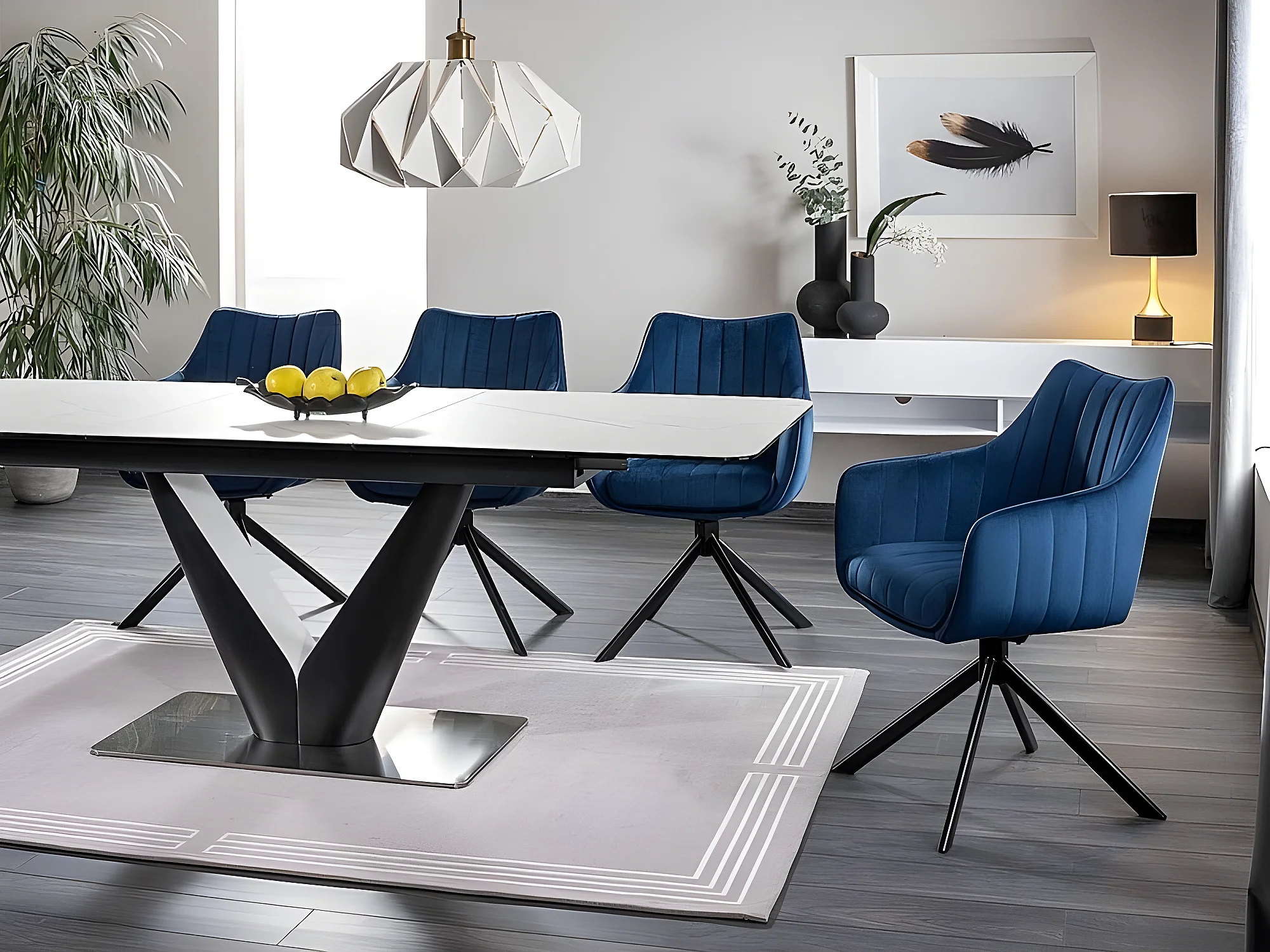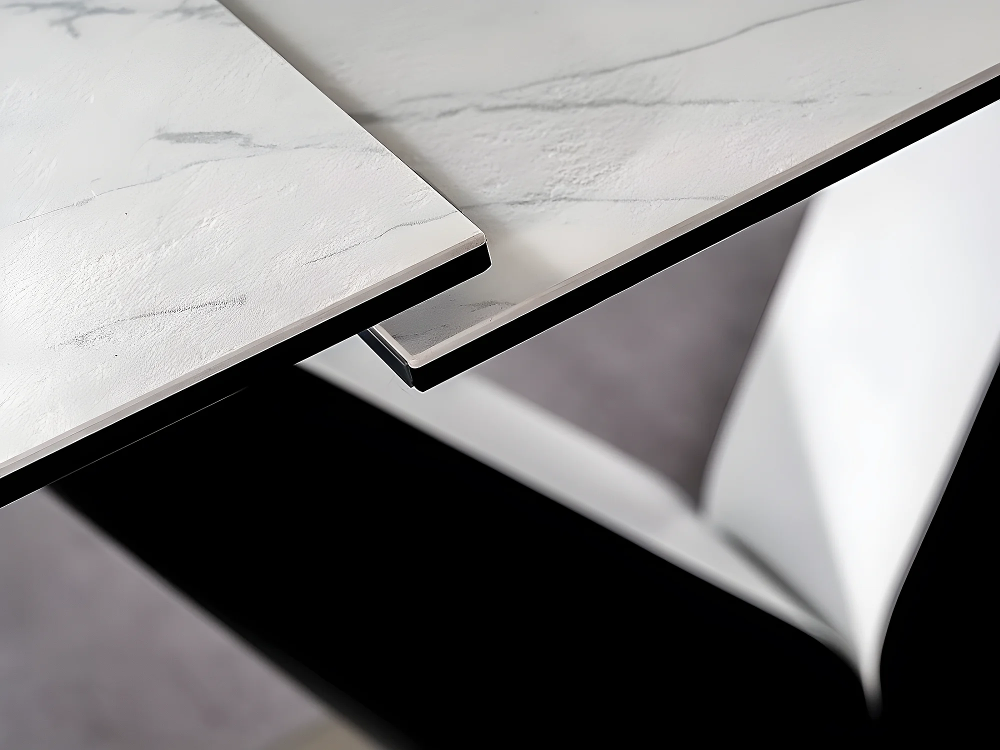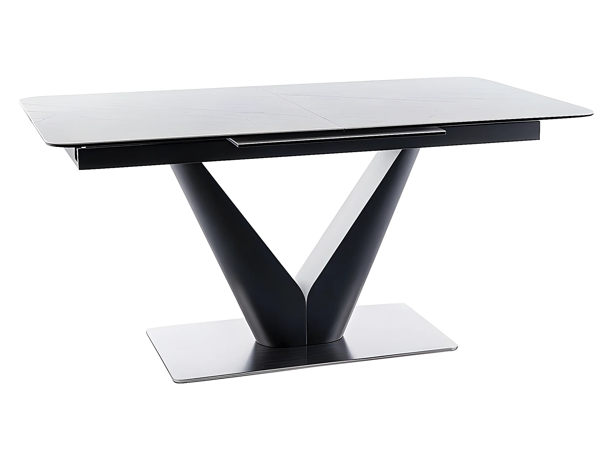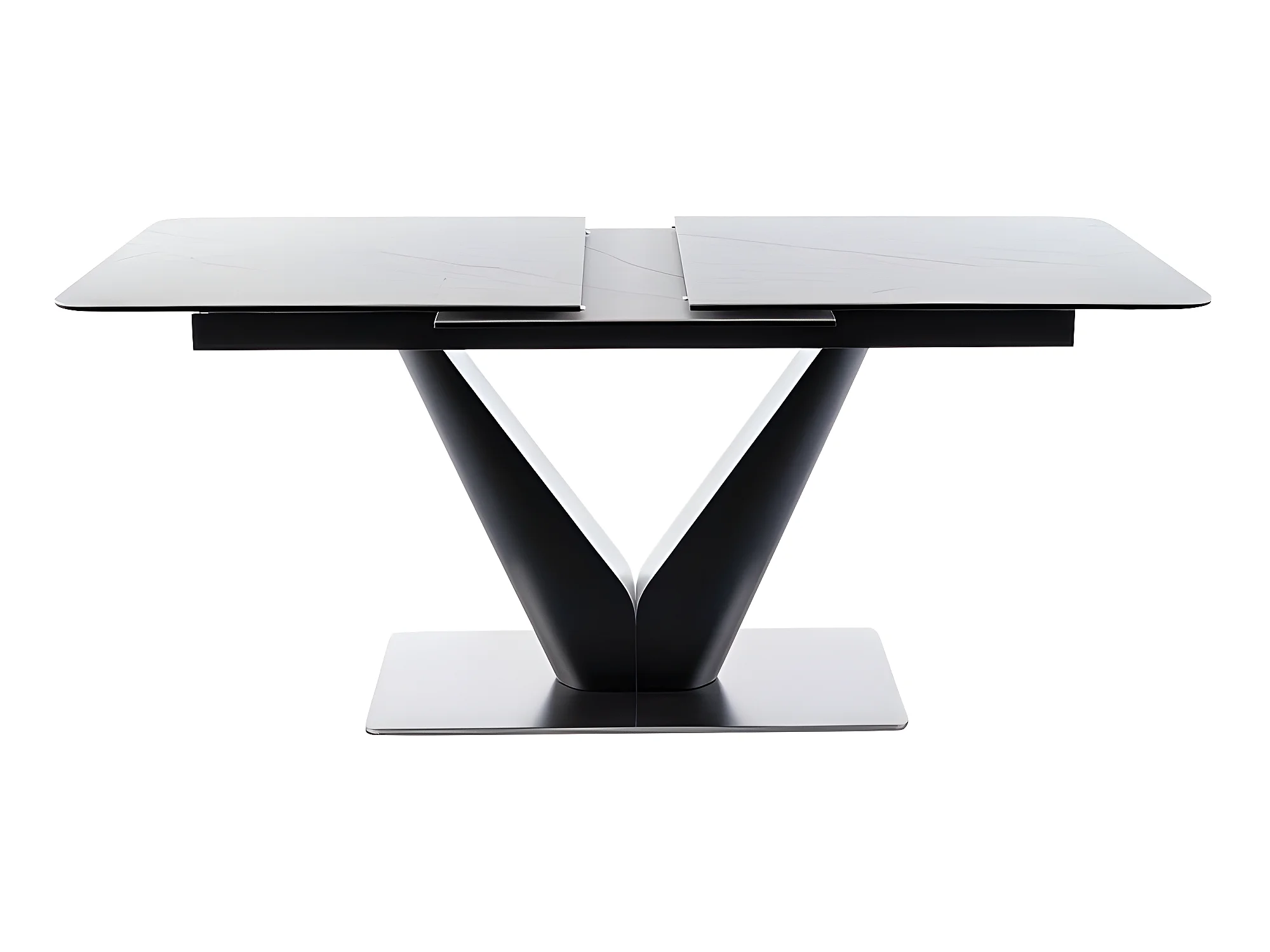Table à manger extensible 160-220 x 90 x 76 cm - Blanc effet marbre/Noir mat
